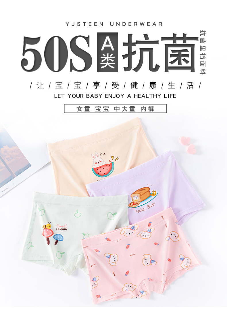 50수 면 여아 속옷, 순면, A형 아동 사각팬티, 큰아동, 어린여아용, 엉덩이가 꼬이지 않는 베이비반바지