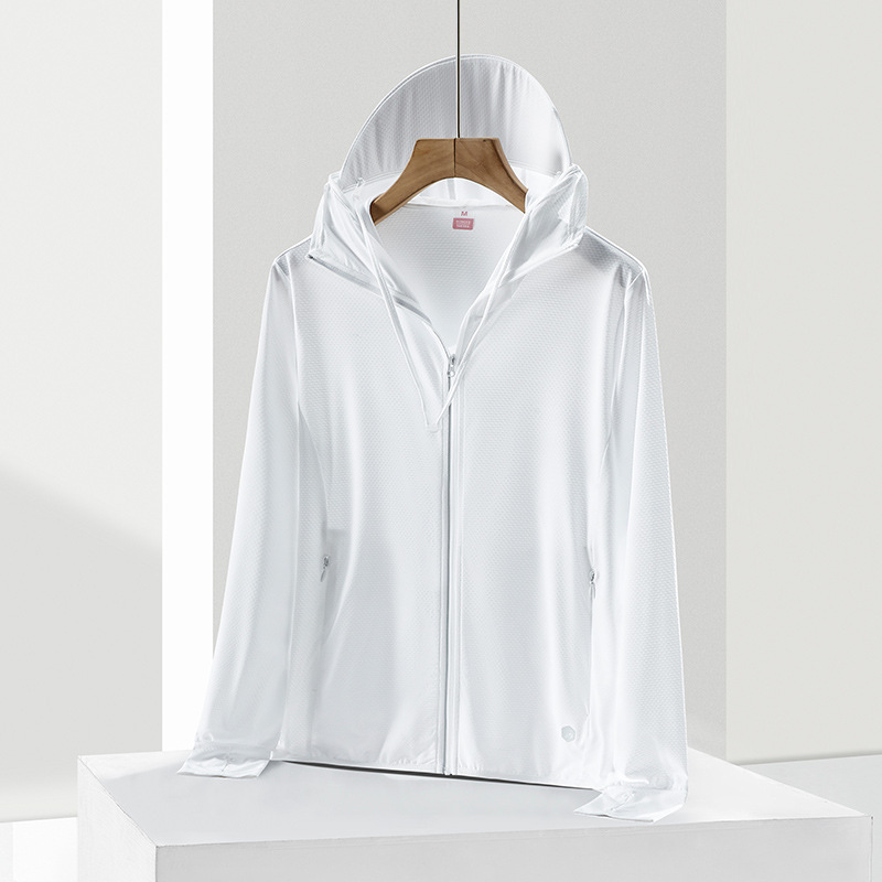 여성을위한 새로운 여름 자외선 차단 의류 UPF50 + 남성용 자외선 방지 얼음 실크 얇은 재킷 탈착식 챙 피부 의류스토어 가기