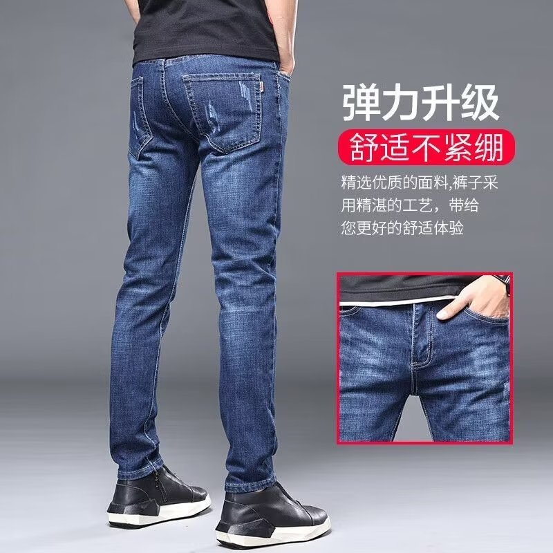 봄과 가을 2024 새로운 유행 브랜드 느슨한 봄 긴 바지 남성용 청바지 남성용 스트레이트 다리 작은 다리 슬림 핏 캐주얼스토어 가기