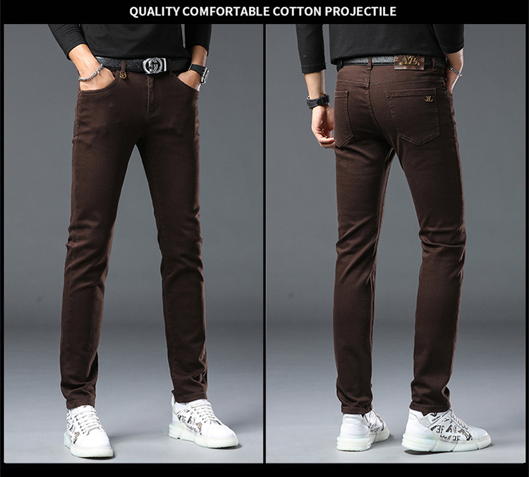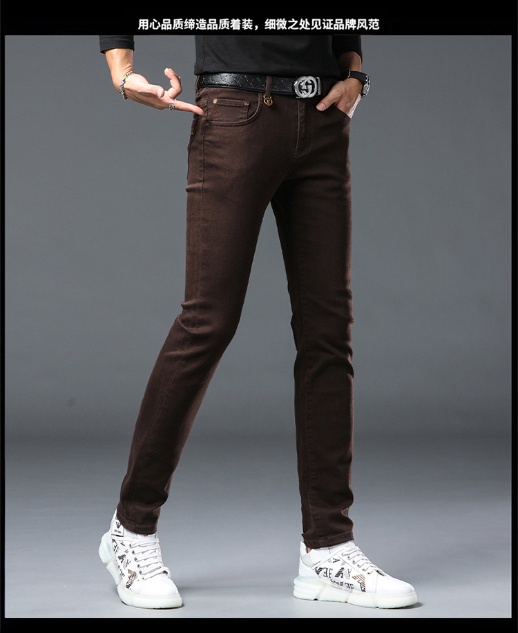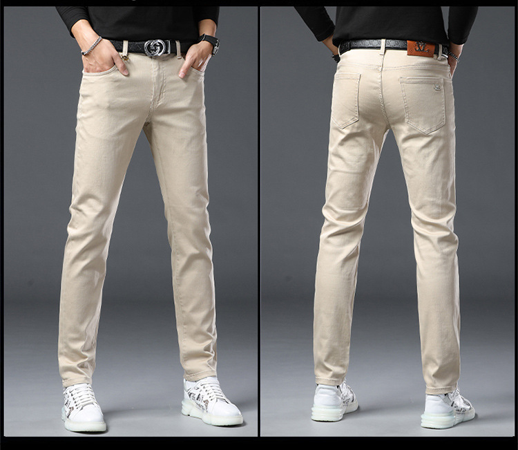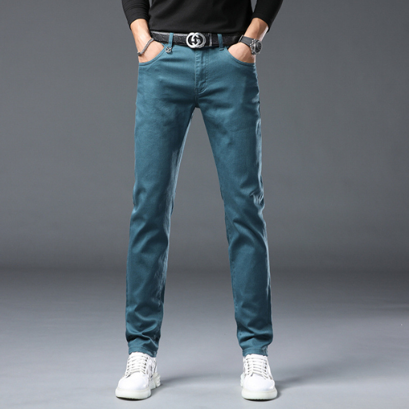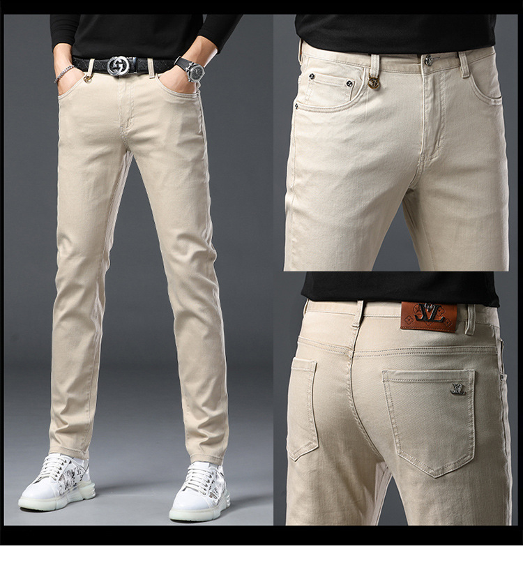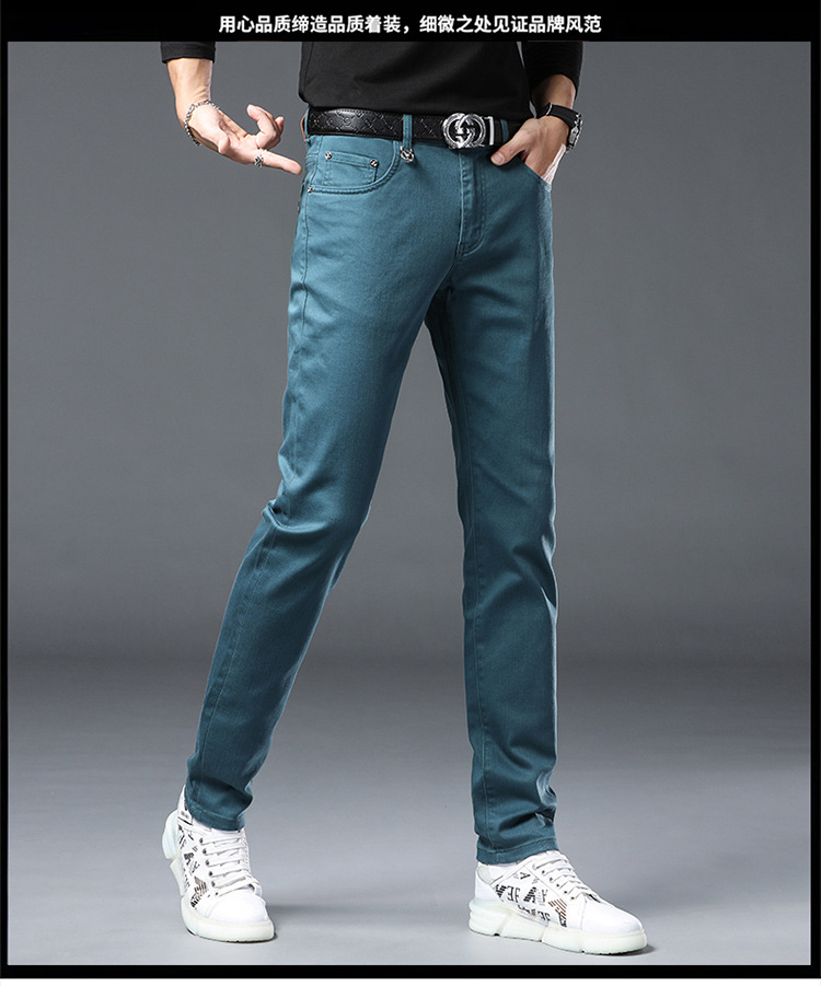 가을/겨울 2024 고급 유럽 캐주얼 데님 남성용 슬림 핏 작은 스트레이트 트렌디 브랜드 스트레치 남성용 올 매치 바지