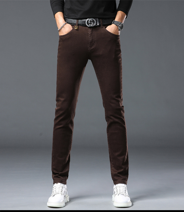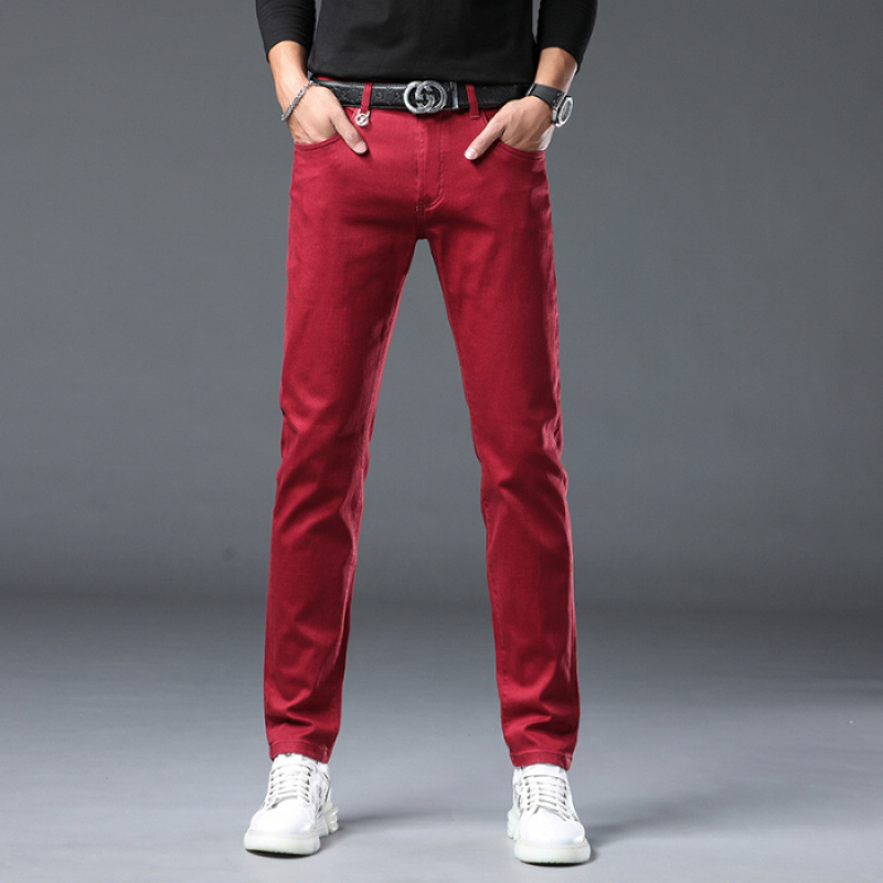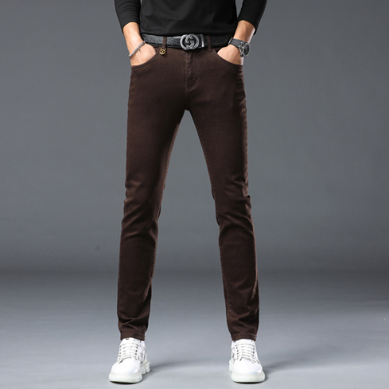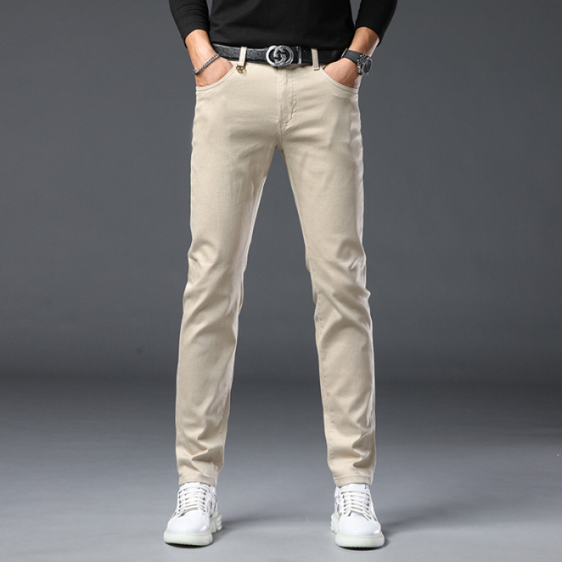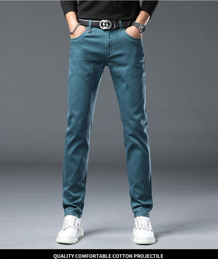 가을/겨울 2024 고급 유럽 캐주얼 데님 남성용 슬림 핏 작은 스트레이트 트렌디 브랜드 스트레치 남성용 올 매치 바지