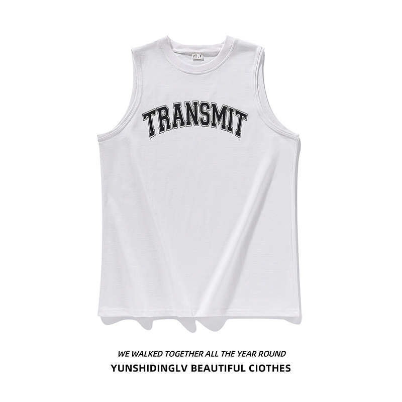조끼 남자 여름 인터넷 연예인 허리 코트 허들 코튼 민소매 화이트 미국 농구 스포츠 와이드 숄더 찹 슬리브 레저 피트니스스토어 가기