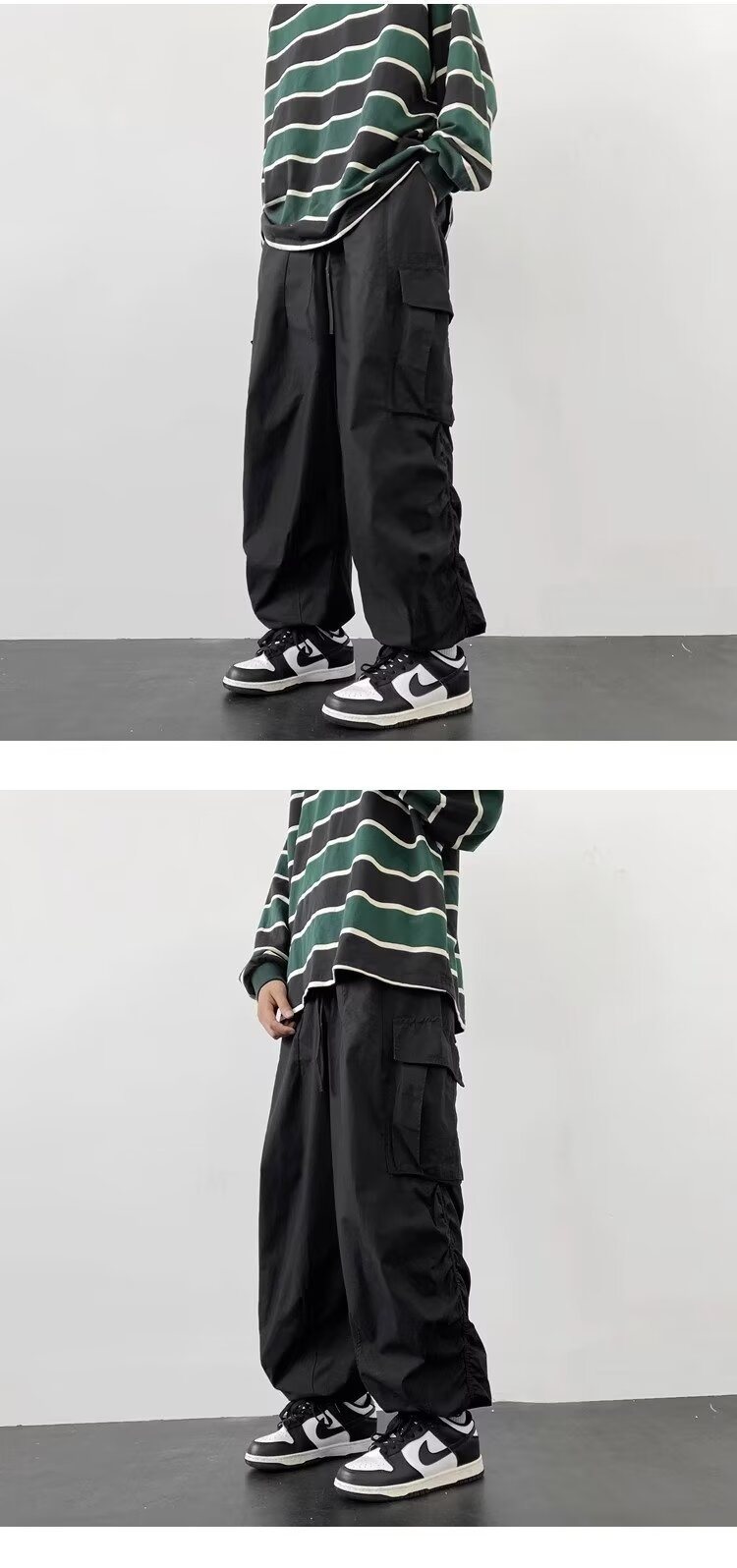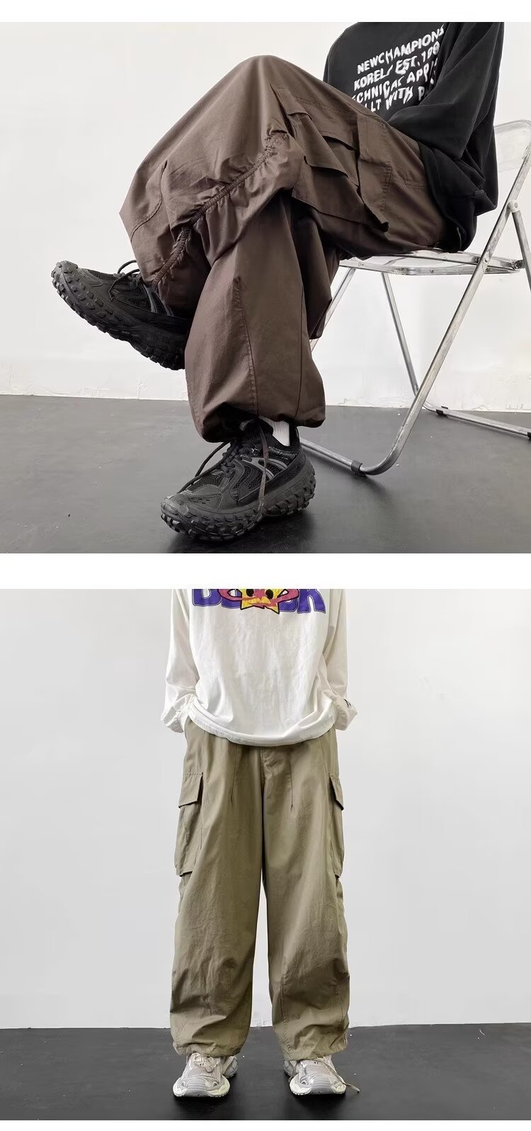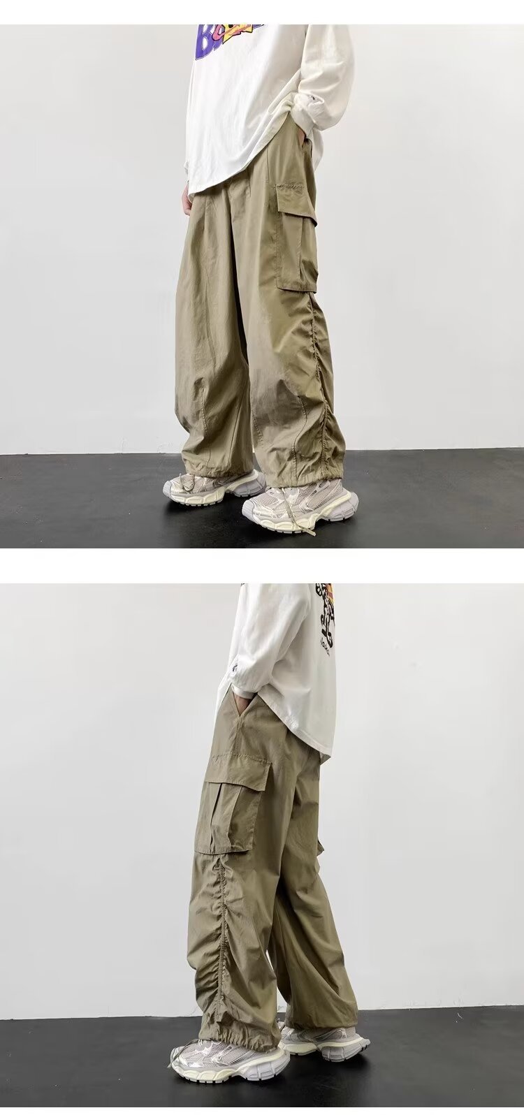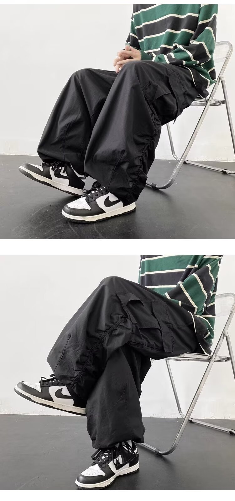 2024 새로운 도착 느슨한 캐주얼 바지 남자 한국 스타일 유행 올 매치 바지 여름 얇은 펜던트 넓은 다리 바지스토어 가기
