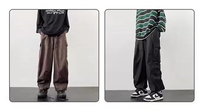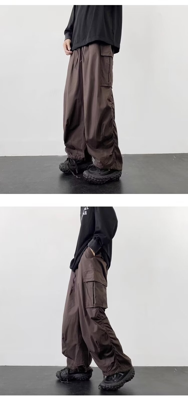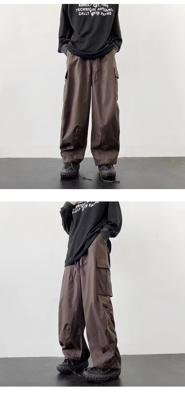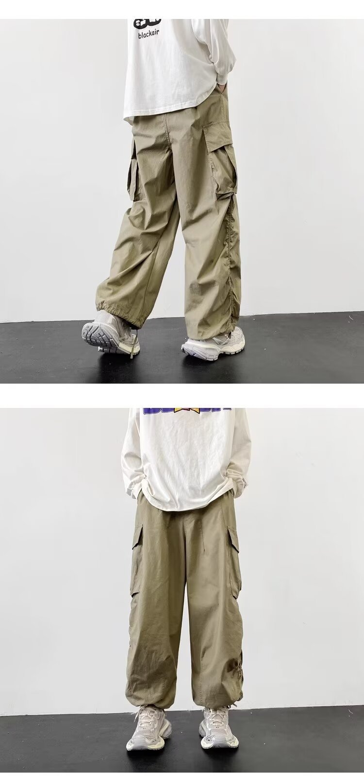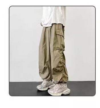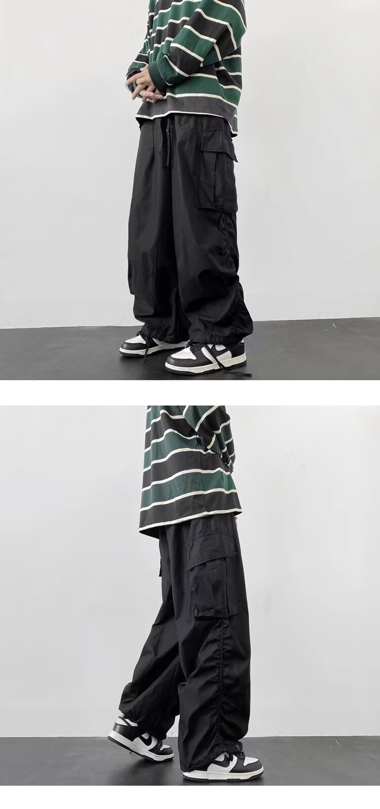 2024 새로운 도착 느슨한 캐주얼 바지 남자 한국 스타일 유행 올 매치 바지 여름 얇은 펜던트 넓은 다리 바지스토어 가기