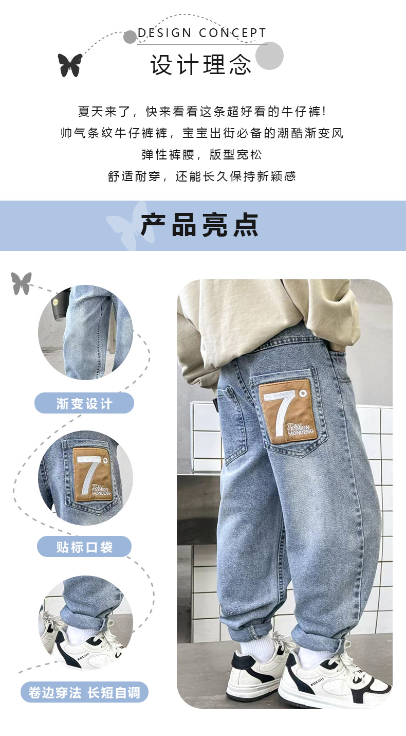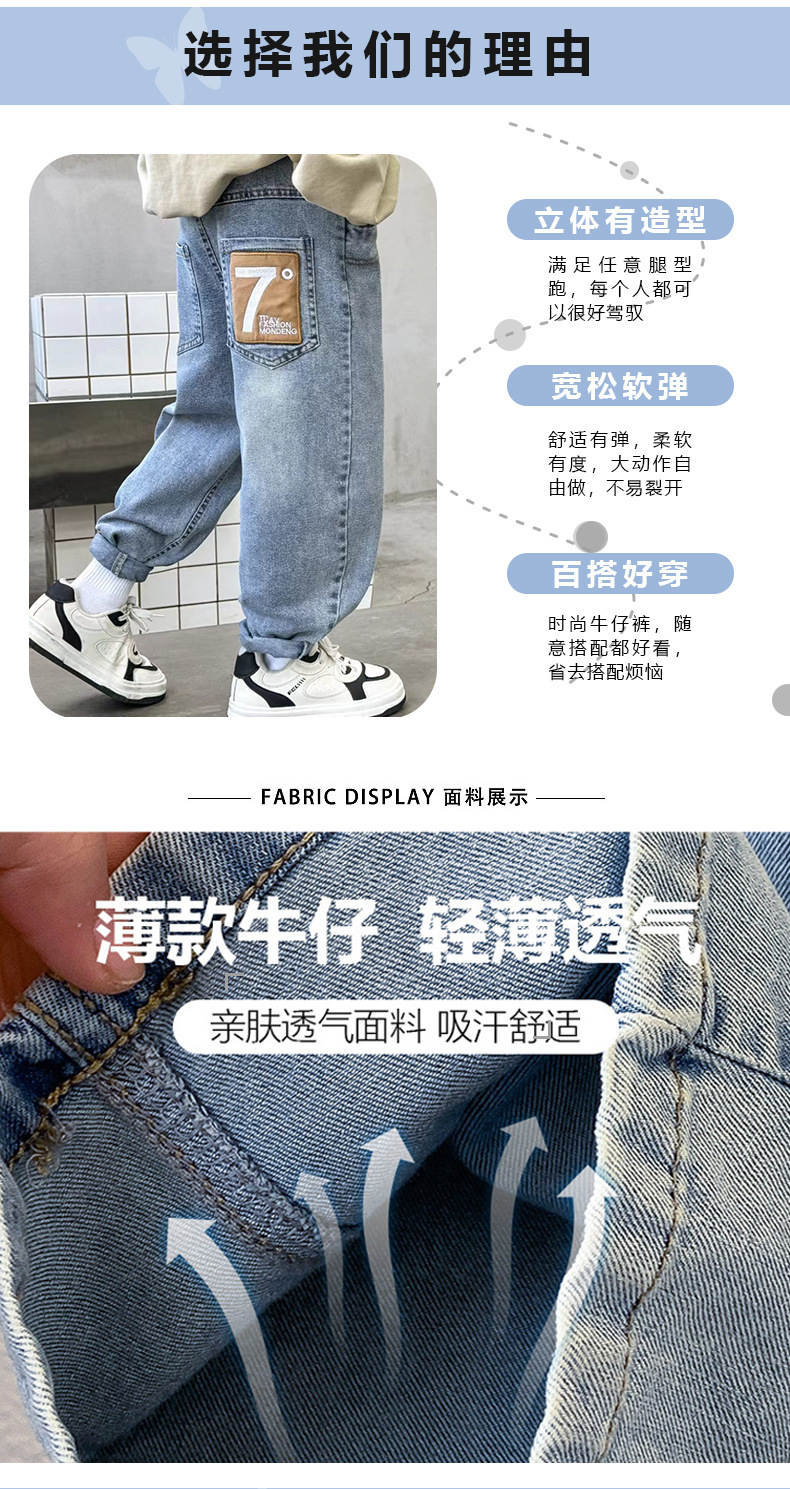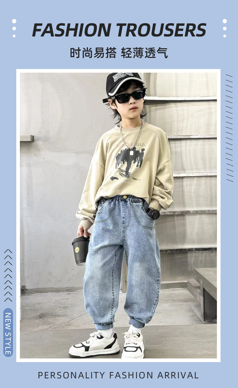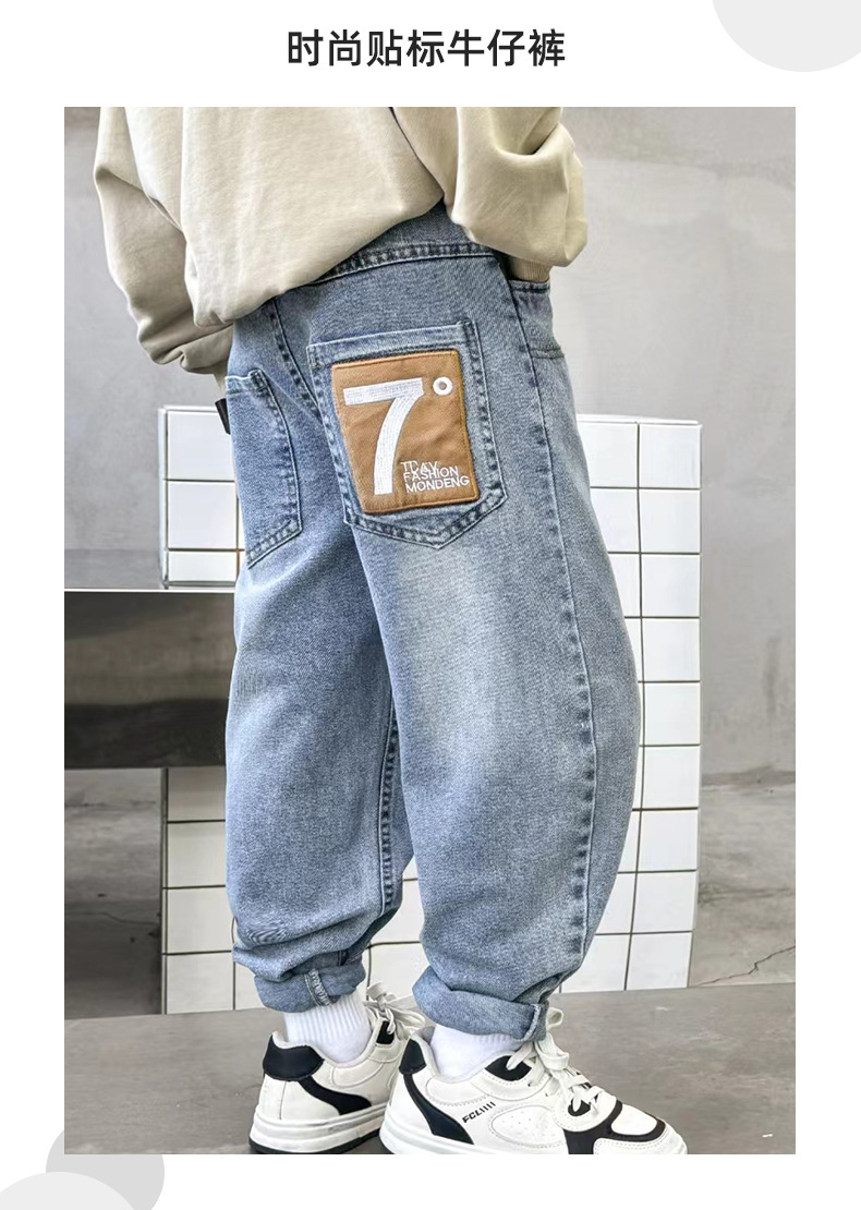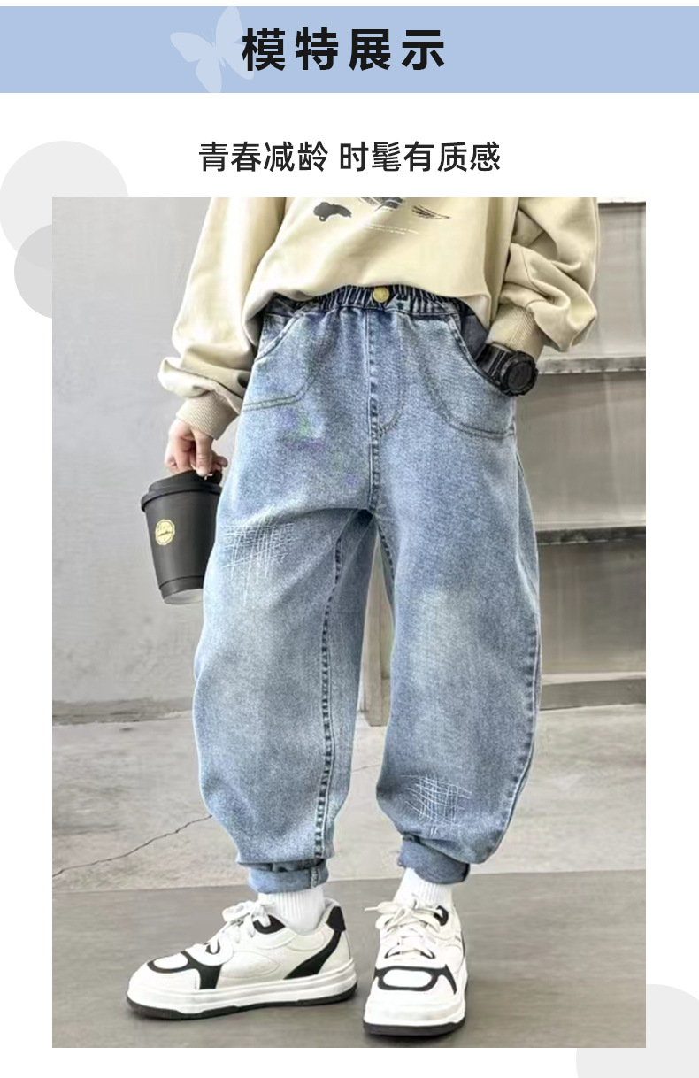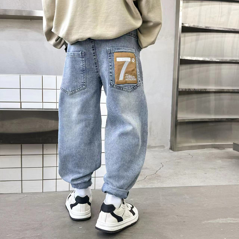 소년 청바지 봄 착용 어린이 바지 2025 년 봄과 가을 새로운 도착 큰 어린이 소년 소년의 큰 아이들 느슨한 유행