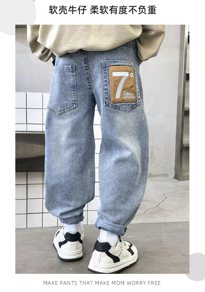 소년 청바지 봄 착용 어린이 바지 2025 년 봄과 가을 새로운 도착 큰 어린이 소년 소년의 큰 아이들 느슨한 유행스토어 가기