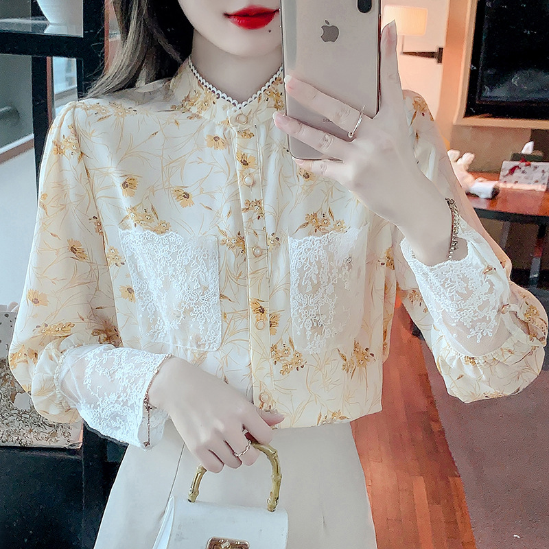 귀 가장자리 스탠드 칼라 작은 신선한 마이크로 기질 셔츠 가을 유행 투표 셔츠 여성