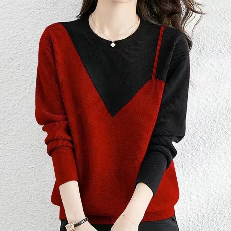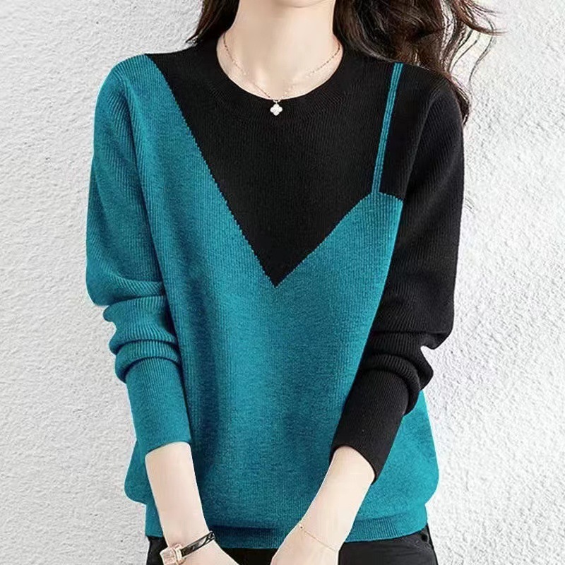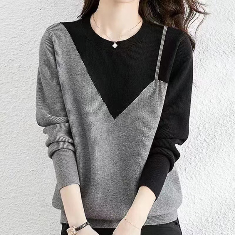 2023 느슨한 슬림 핏 풀오버 스웨터 여성의 가을과 겨울 패션 니트 베이스 셔츠 대비 서양식 외부 착용 탑