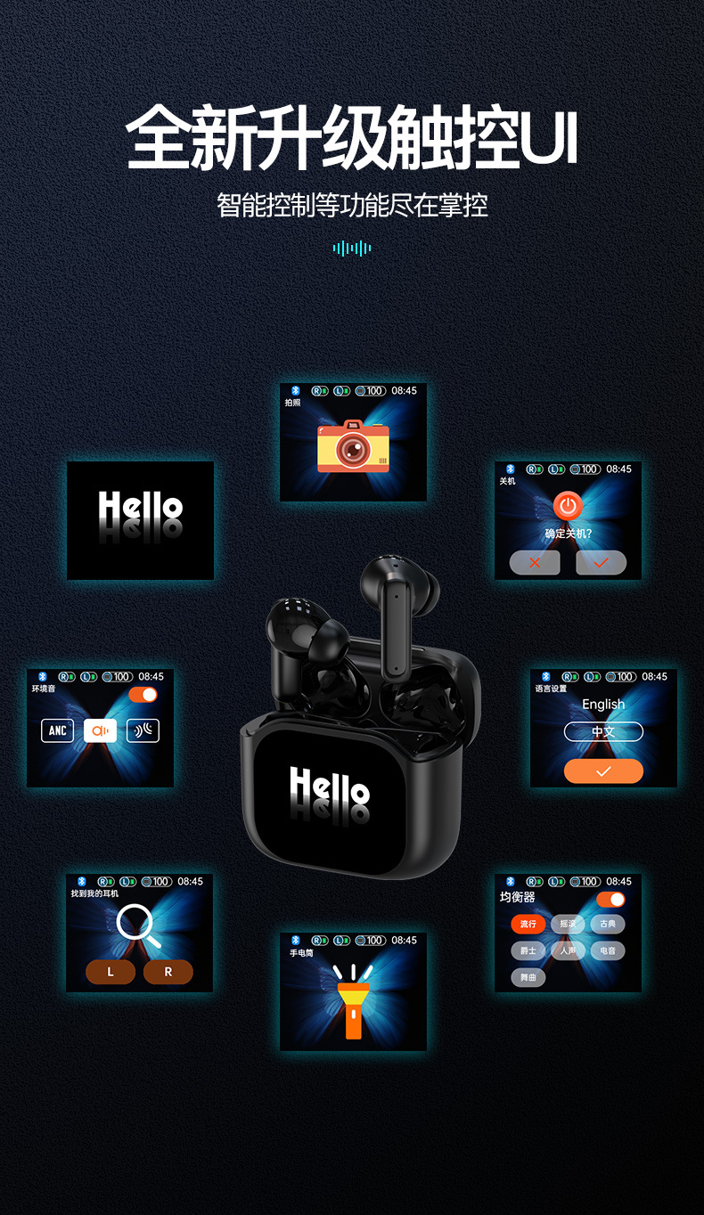 스마트 대형 화면 컬러 화면 BY16 블루투스 헤드셋 LCD 터치 스크린 소음 감소 5.3 낮은 전력 소비 귀 스포츠 헤드셋