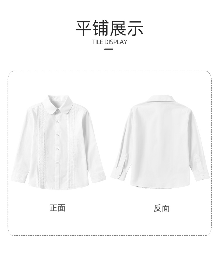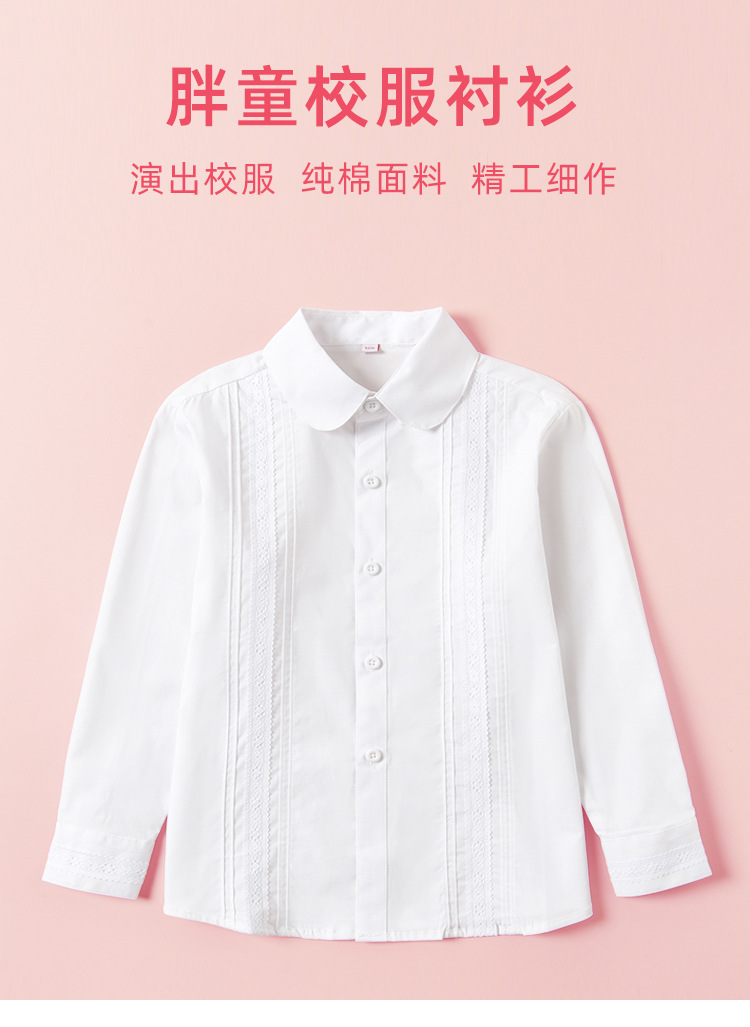 여자 학교 유니폼 흰 셔츠 순면 긴 소매 중 및 대형 어린이 및 초등학생 뚱뚱한 흰색 성능 의류 뚱뚱한 아이들 흰 셔츠스토어 가기