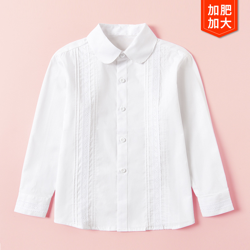 여자 학교 유니폼 흰 셔츠 순면 긴 소매 중 및 대형 어린이 및 초등학생 뚱뚱한 흰색 성능 의류 뚱뚱한 아이들 흰 셔츠