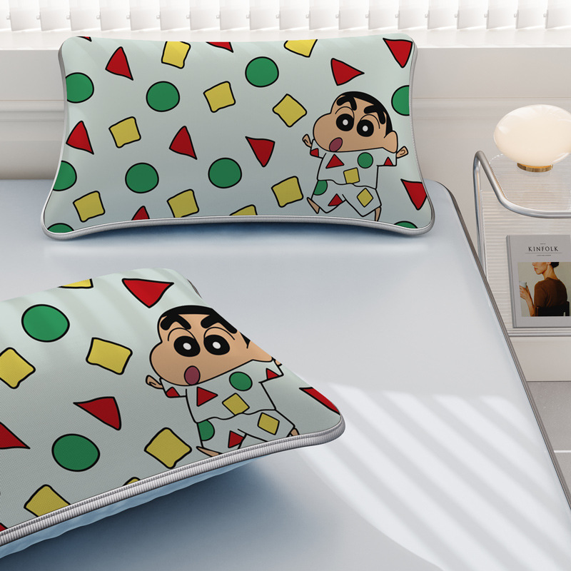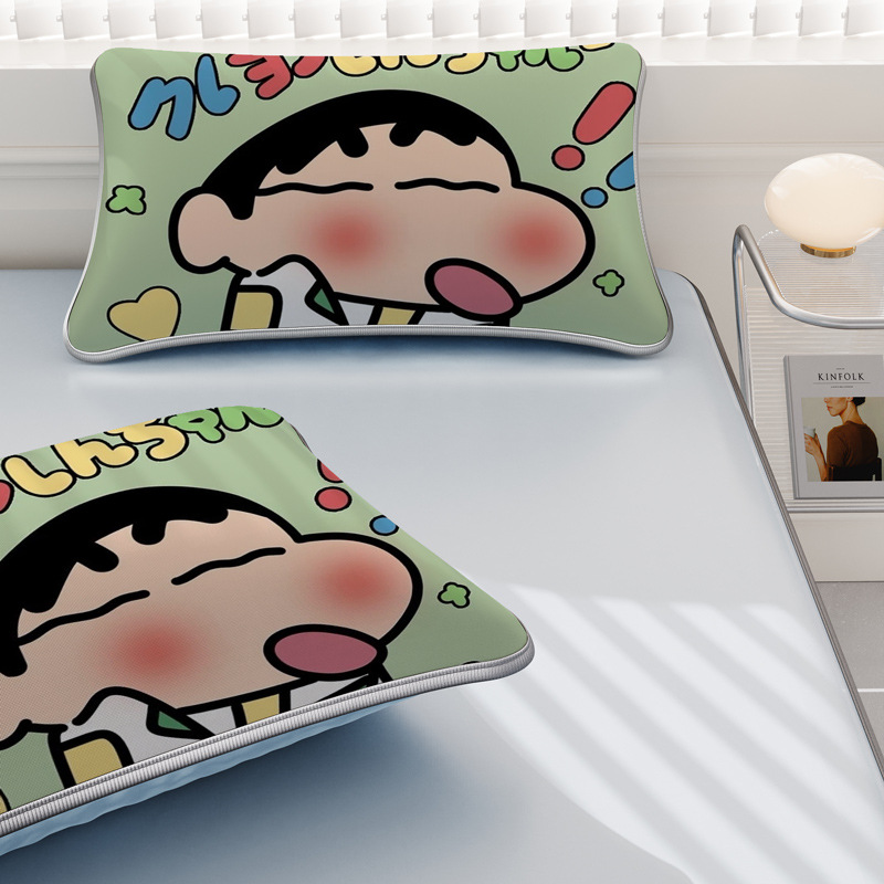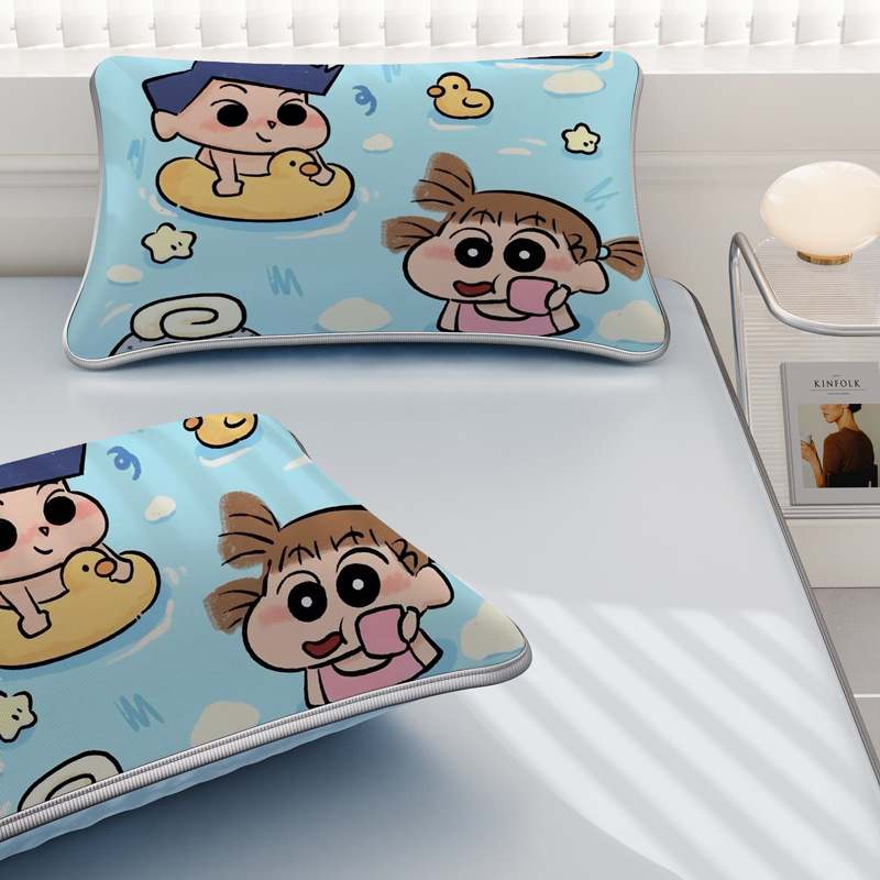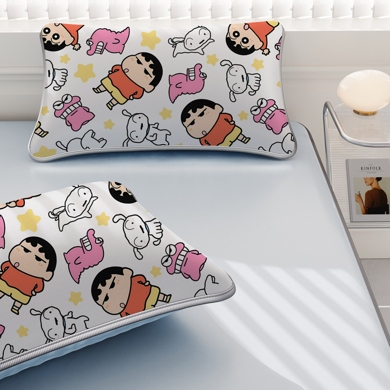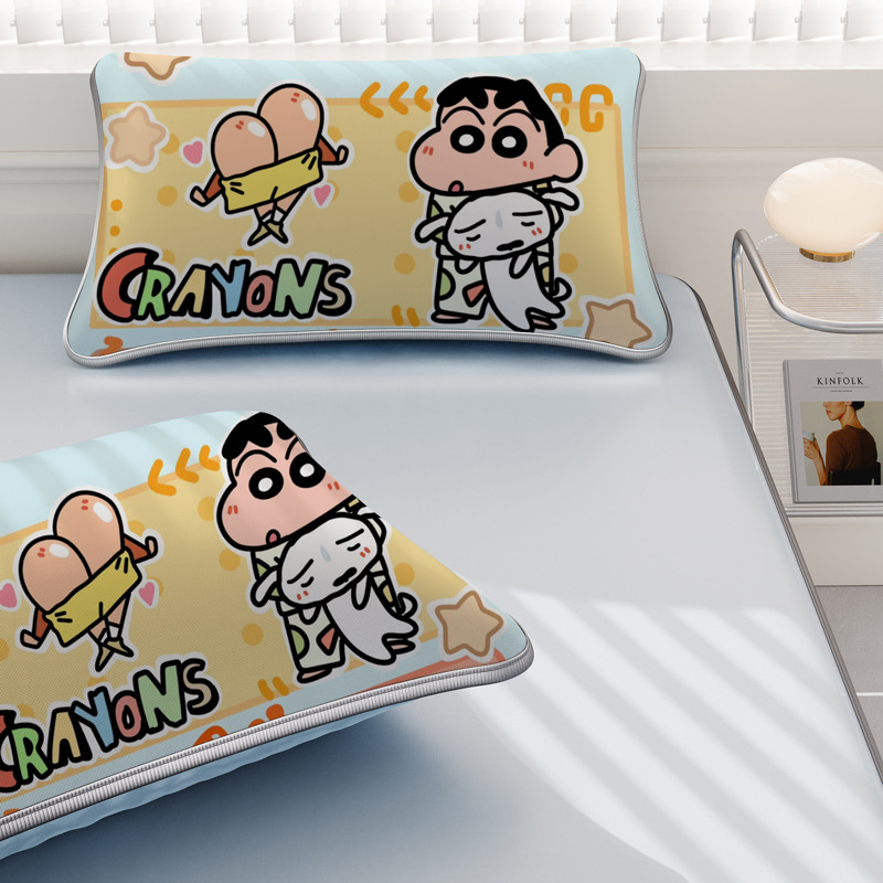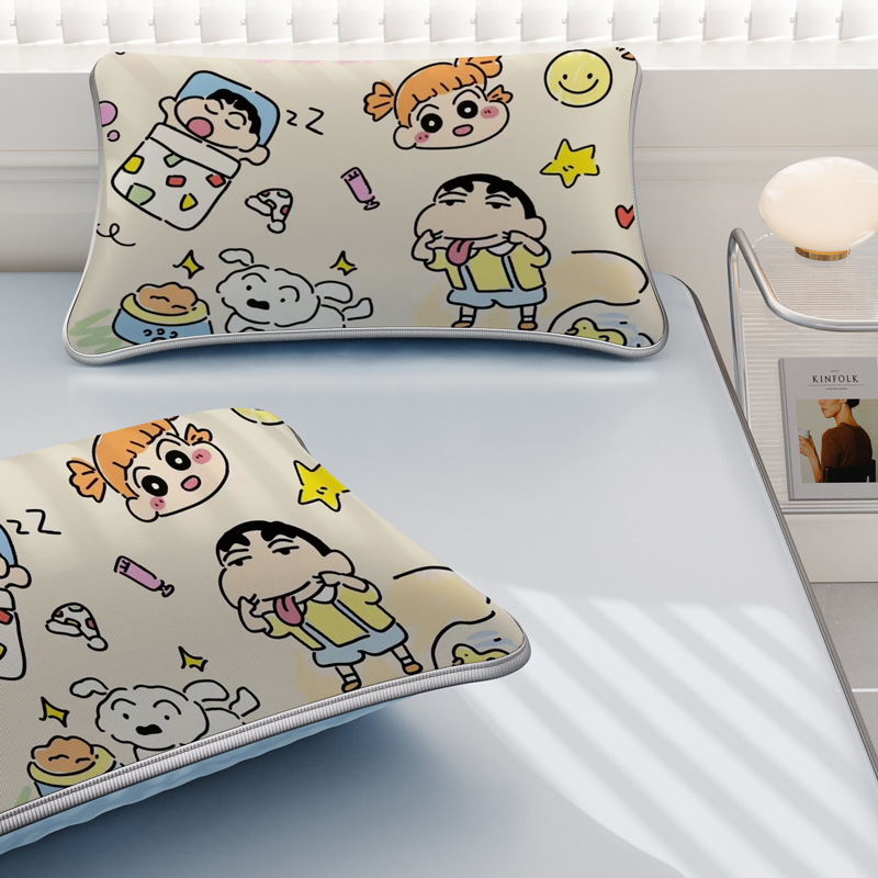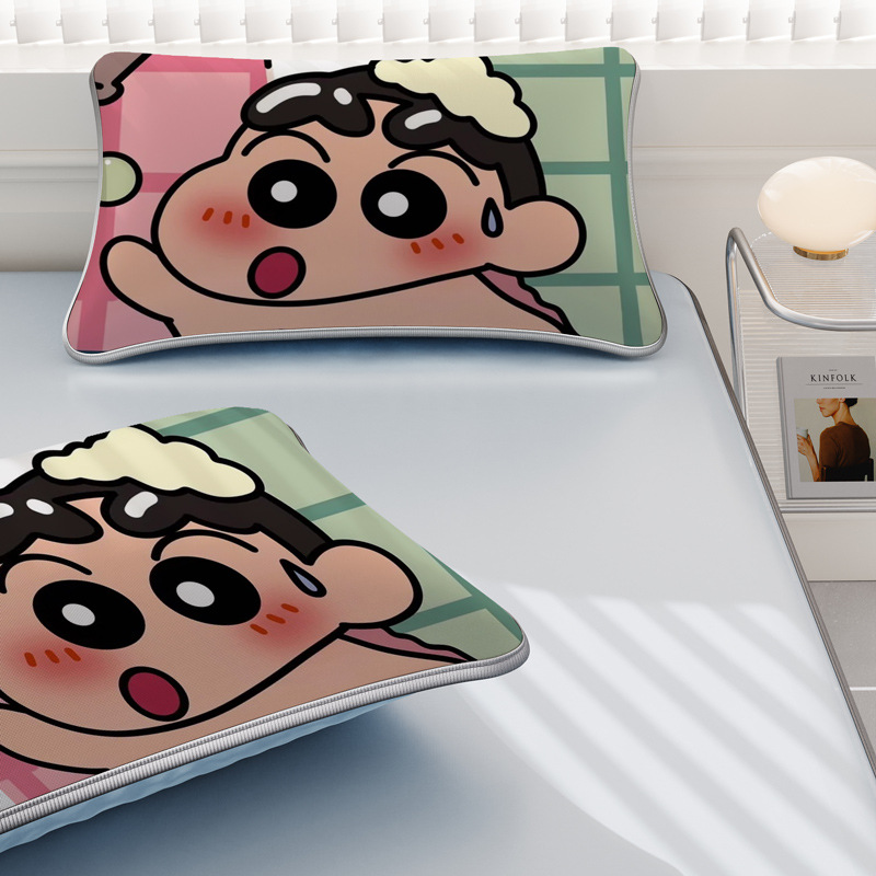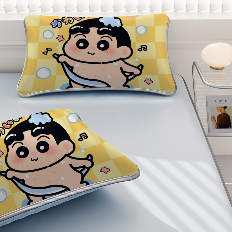 일본 크레용 신짱 만화 스타일 격자 무늬 얼음 실크 베개 커버 만화 성인과 어린이 에어컨 룸 낮잠 베개 커버스토어 가기