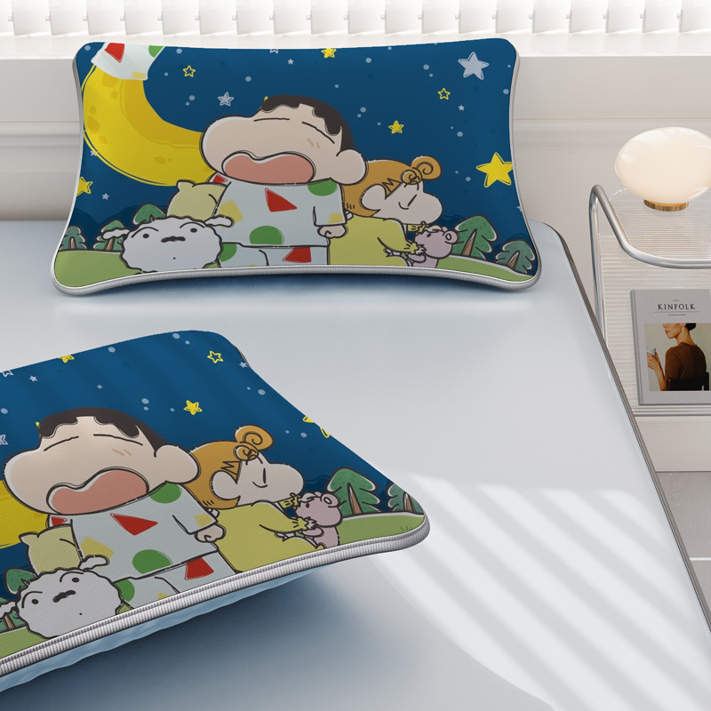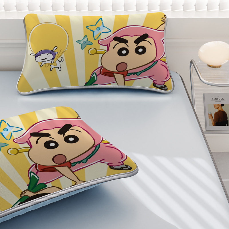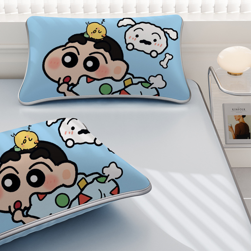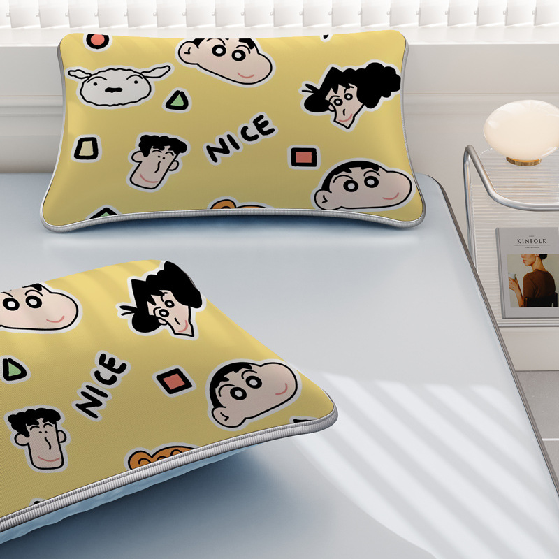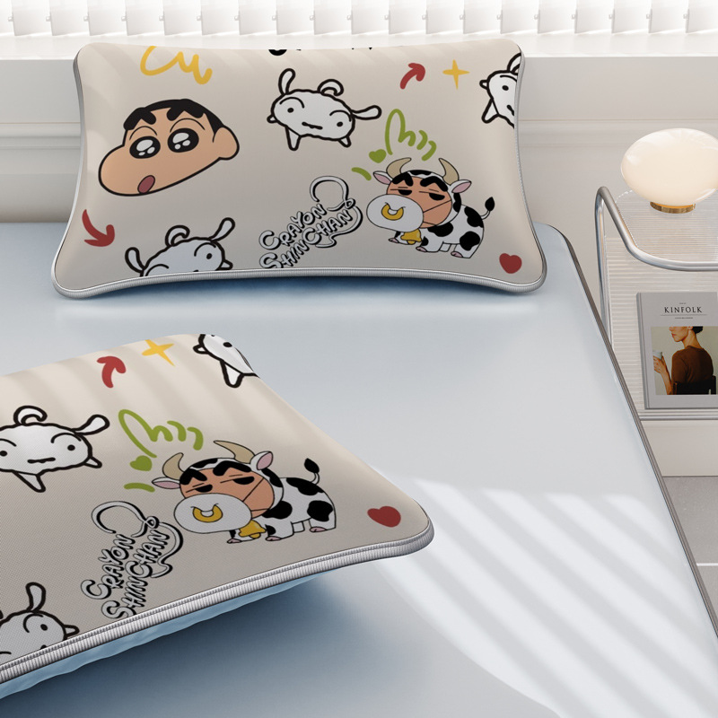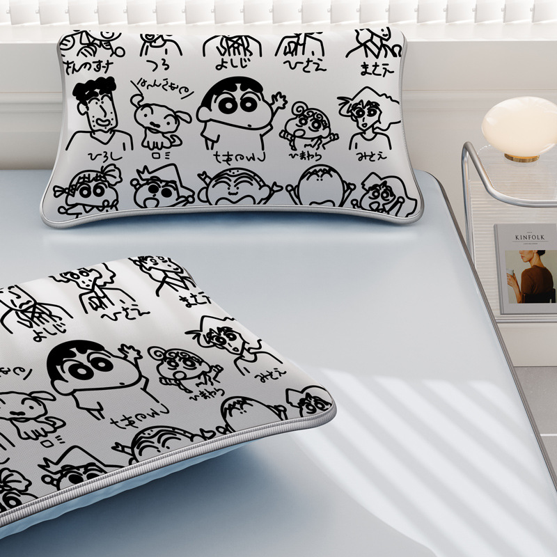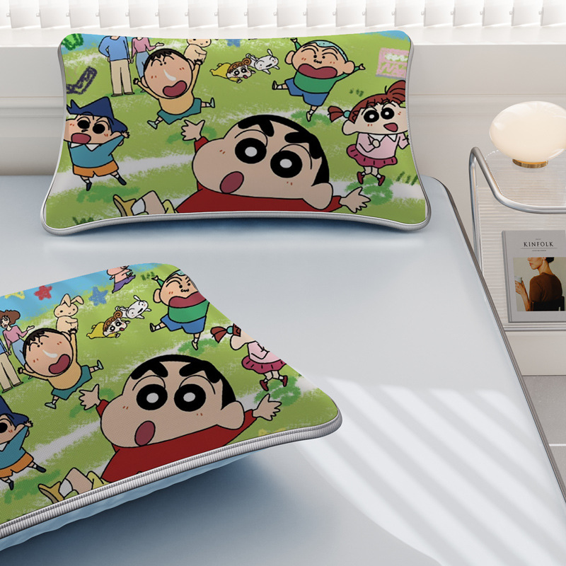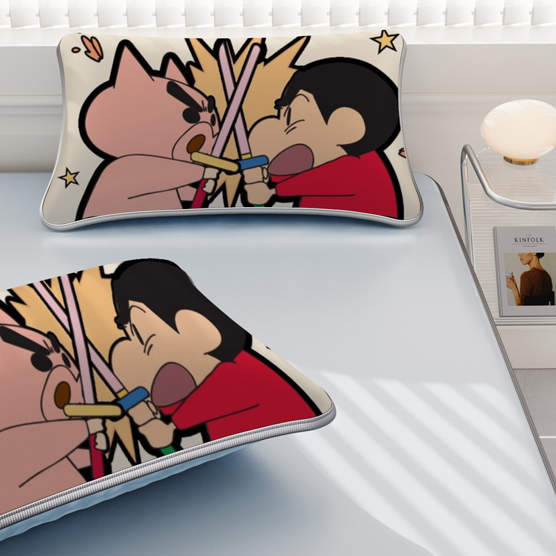 일본 크레용 신짱 만화 스타일 격자 무늬 얼음 실크 베개 커버 만화 성인과 어린이 에어컨 룸 낮잠 베개 커버스토어 가기
