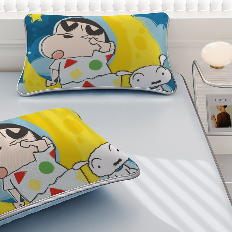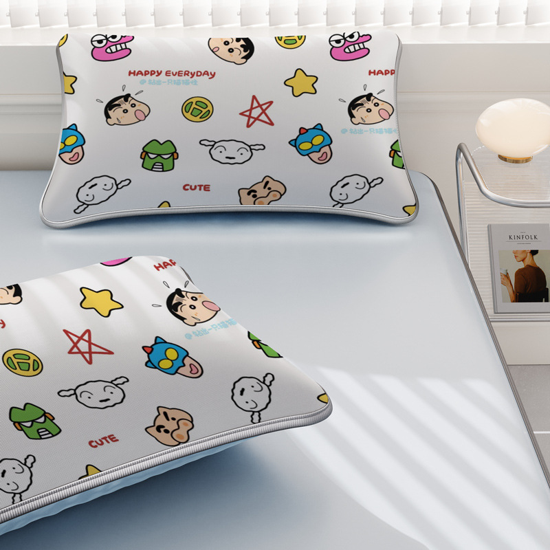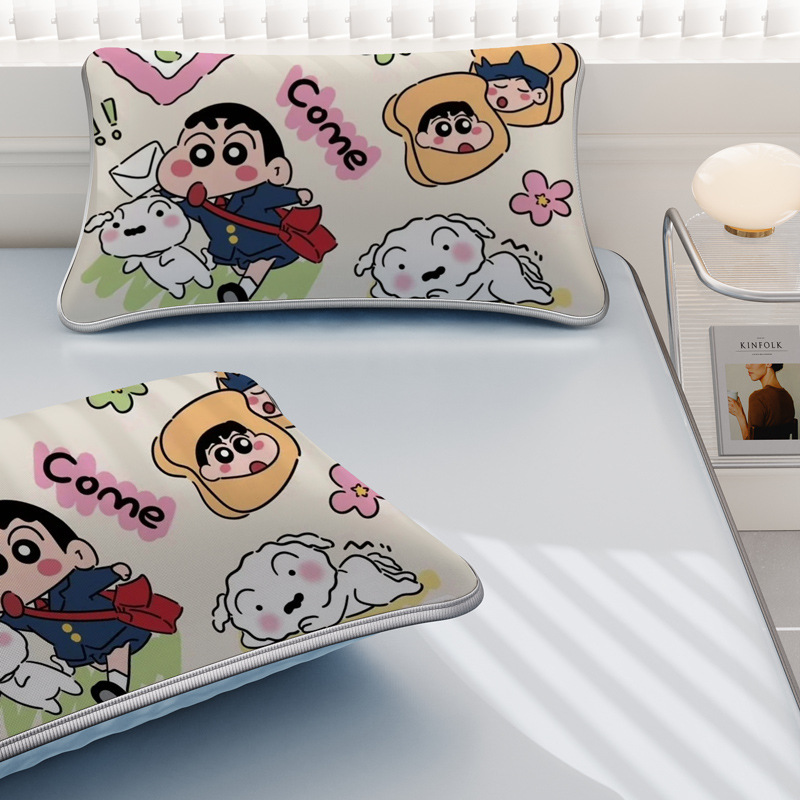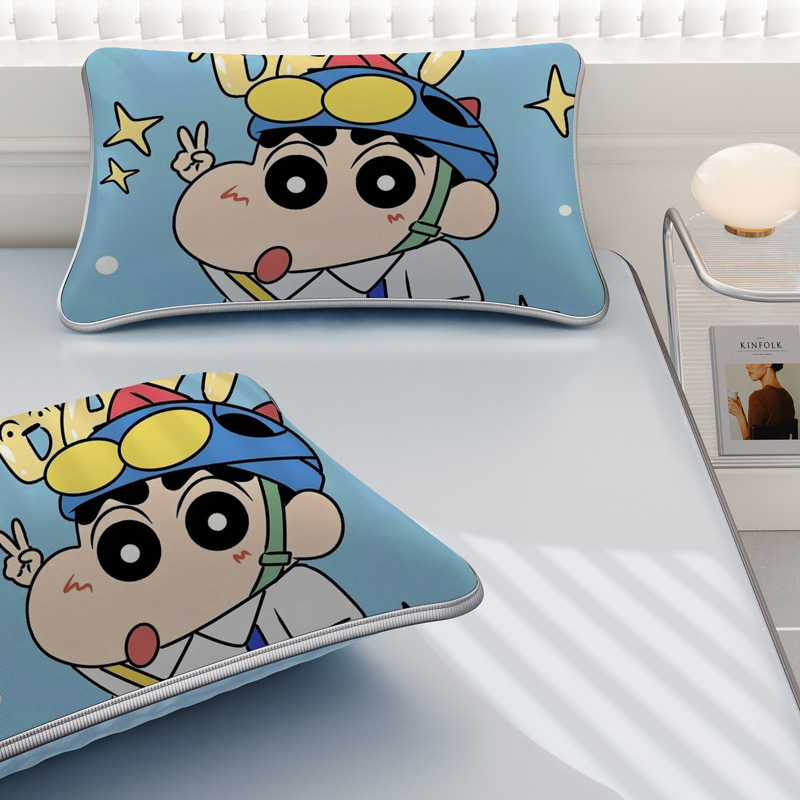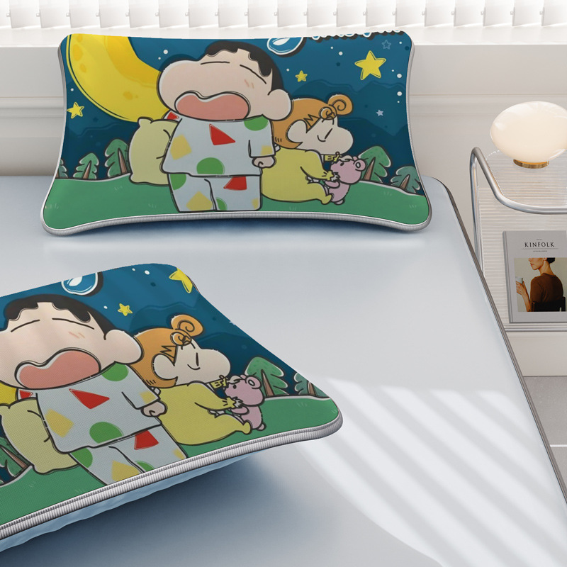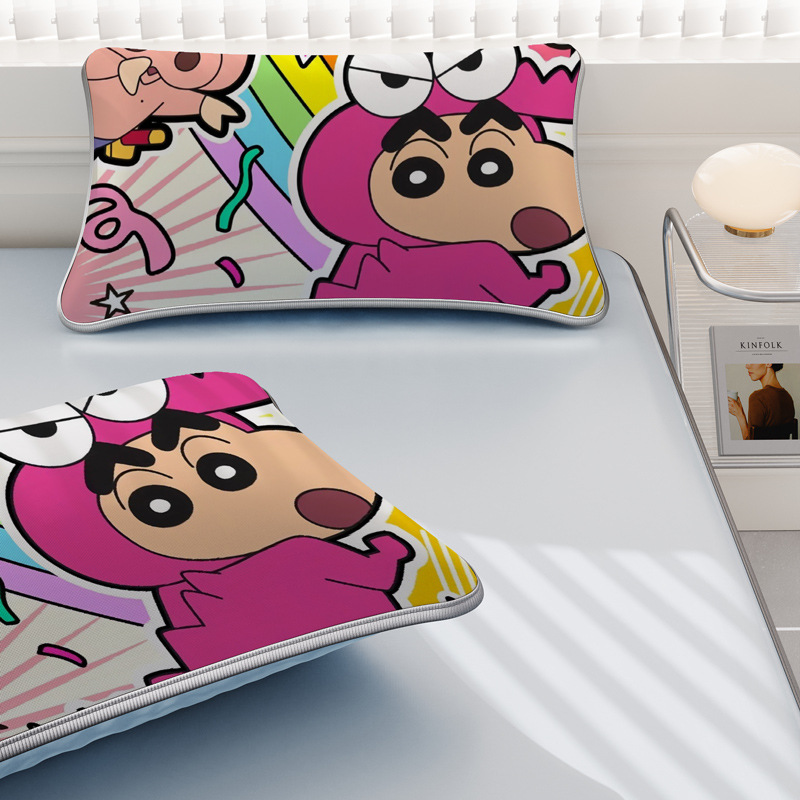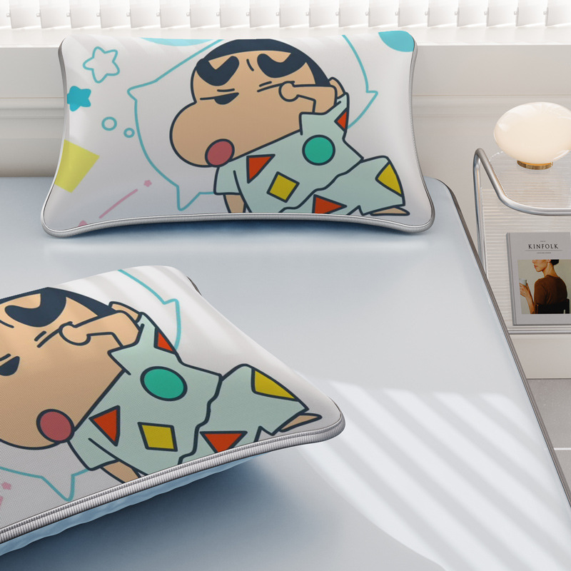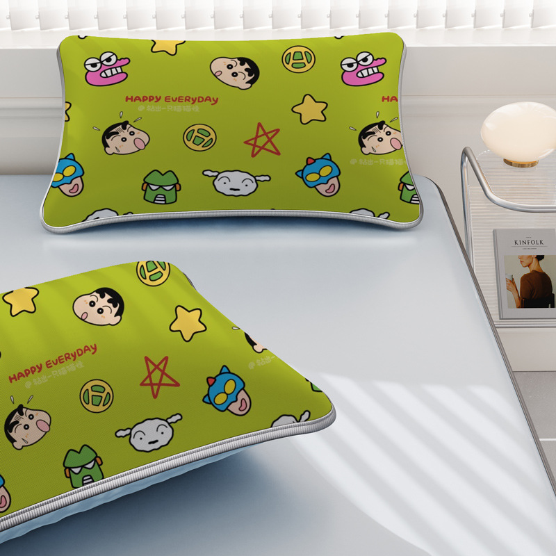 일본 크레용 신짱 만화 스타일 격자 무늬 얼음 실크 베개 커버 만화 성인과 어린이 에어컨 룸 낮잠 베개 커버스토어 가기