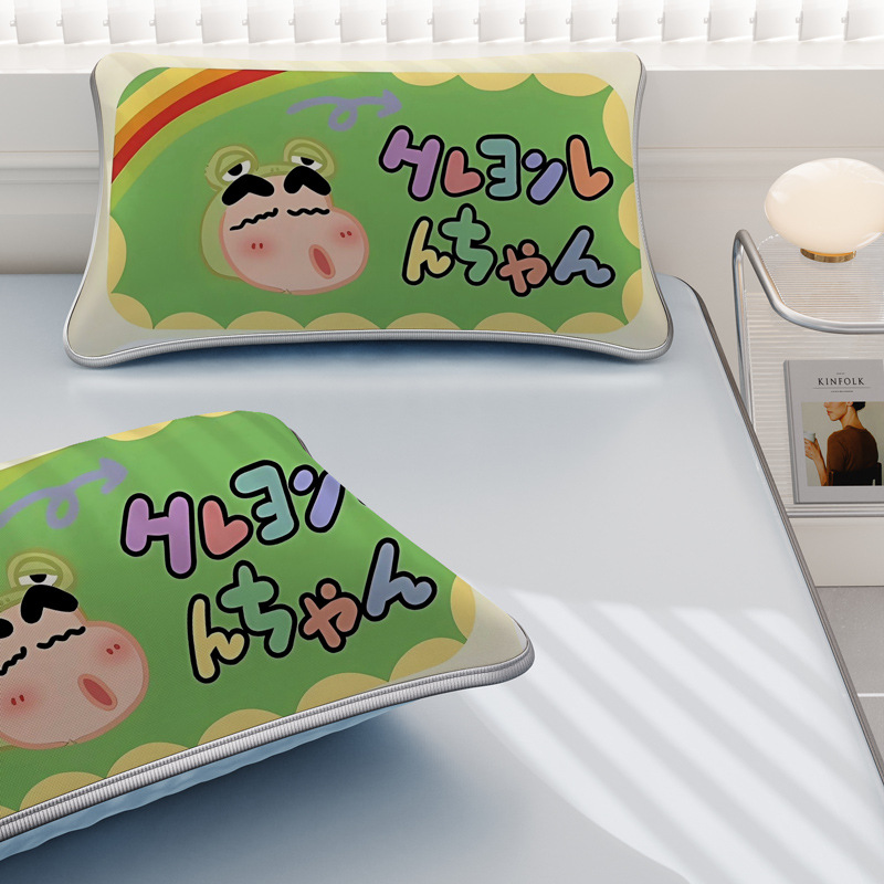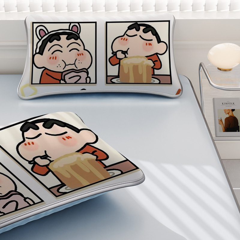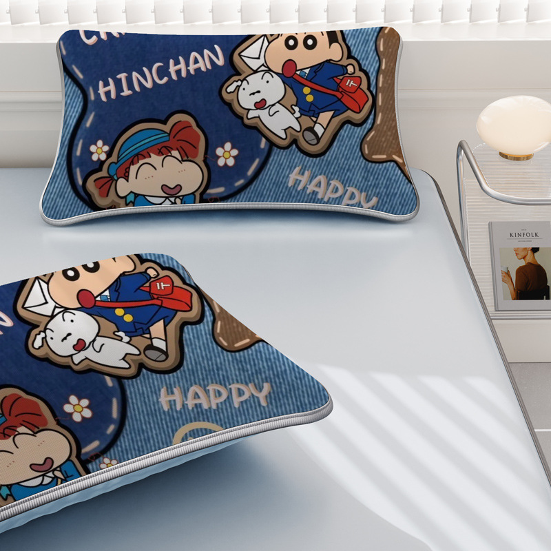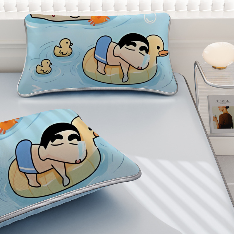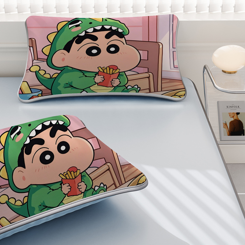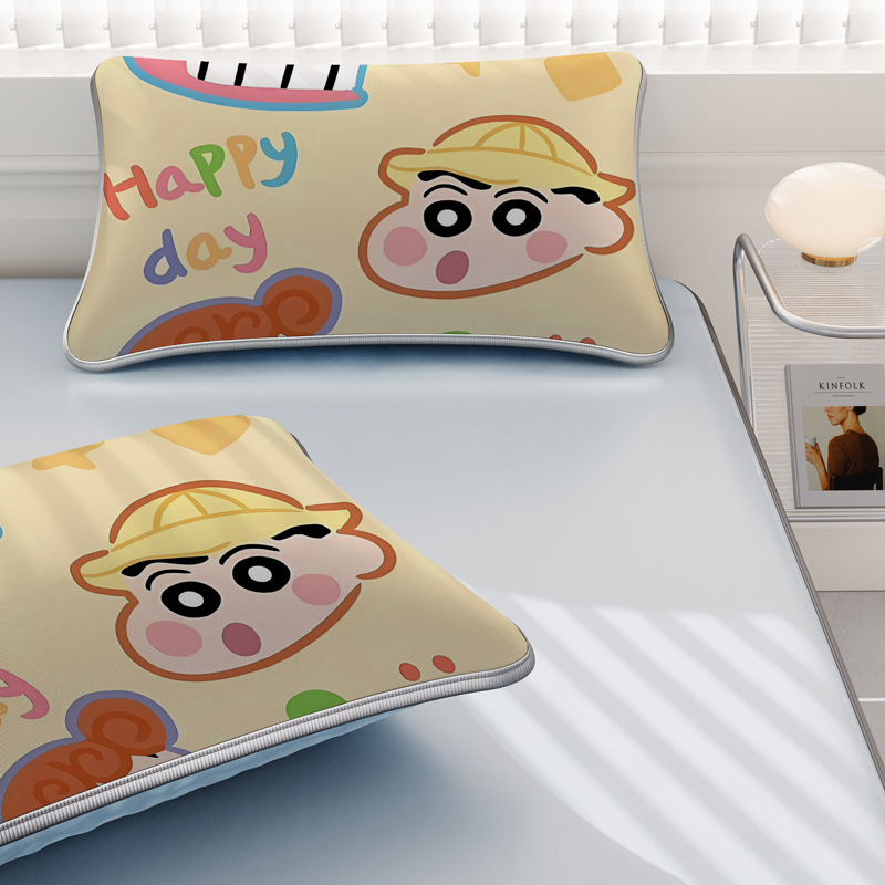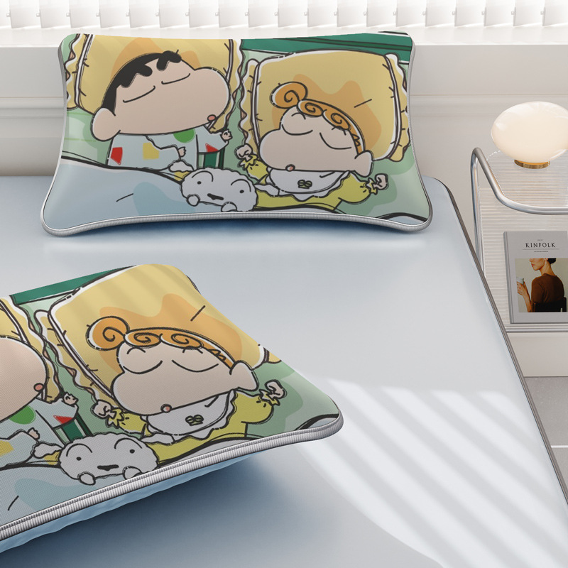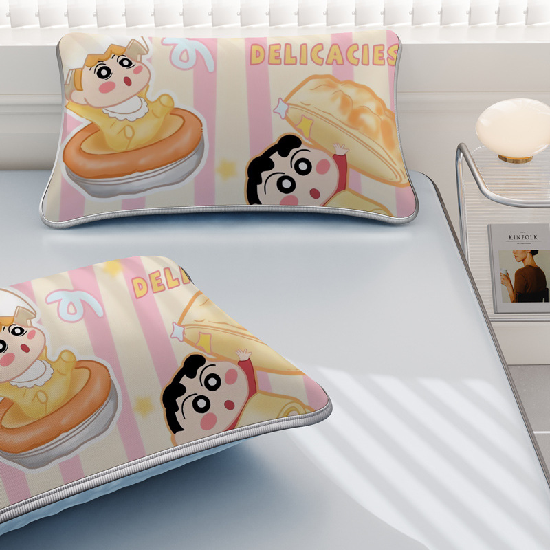 일본 크레용 신짱 만화 스타일 격자 무늬 얼음 실크 베개 커버 만화 성인과 어린이 에어컨 룸 낮잠 베개 커버스토어 가기