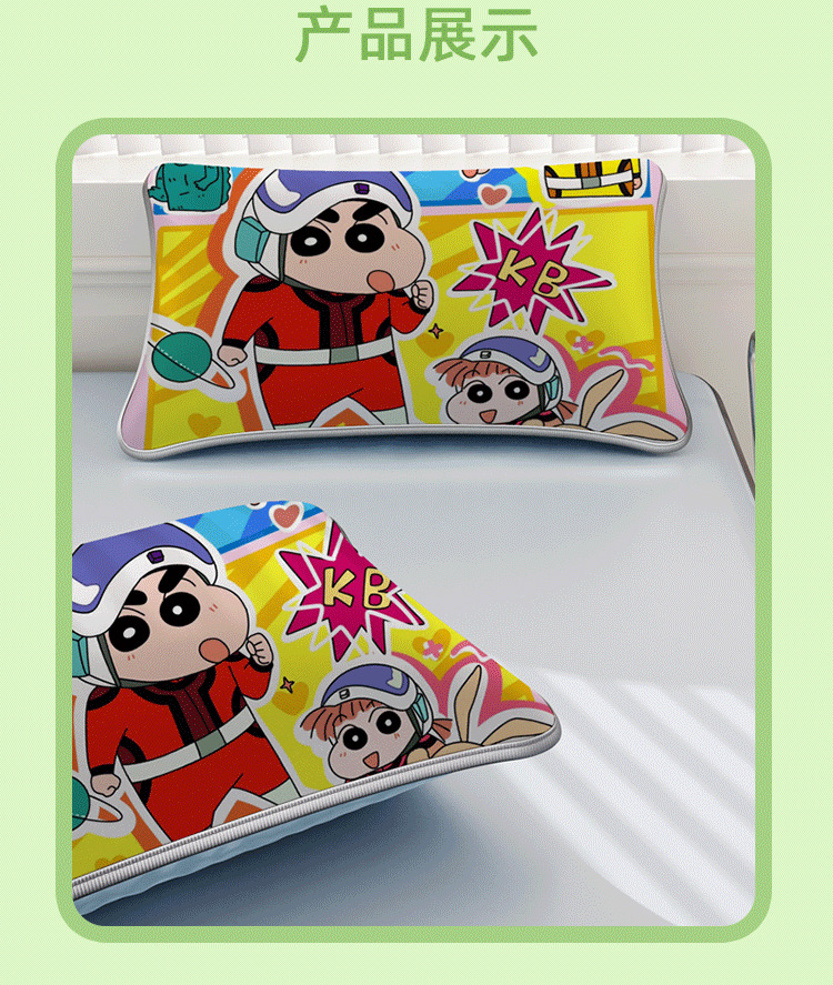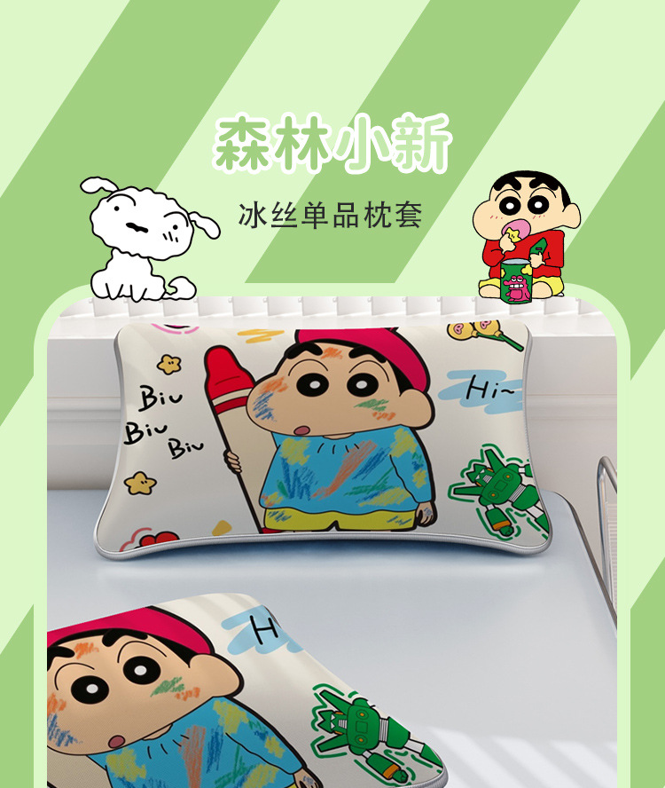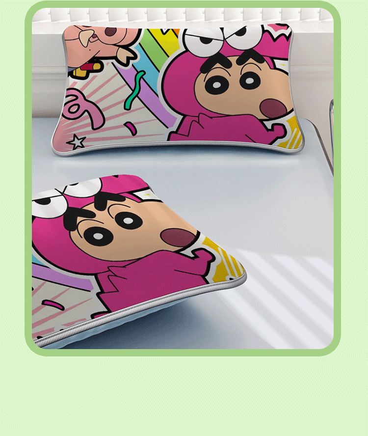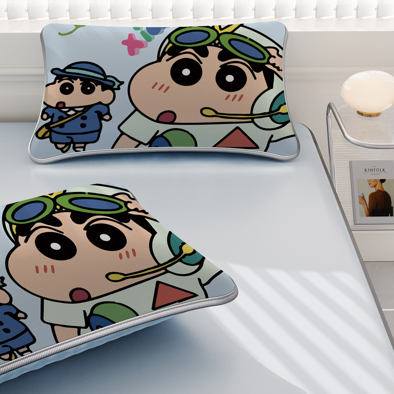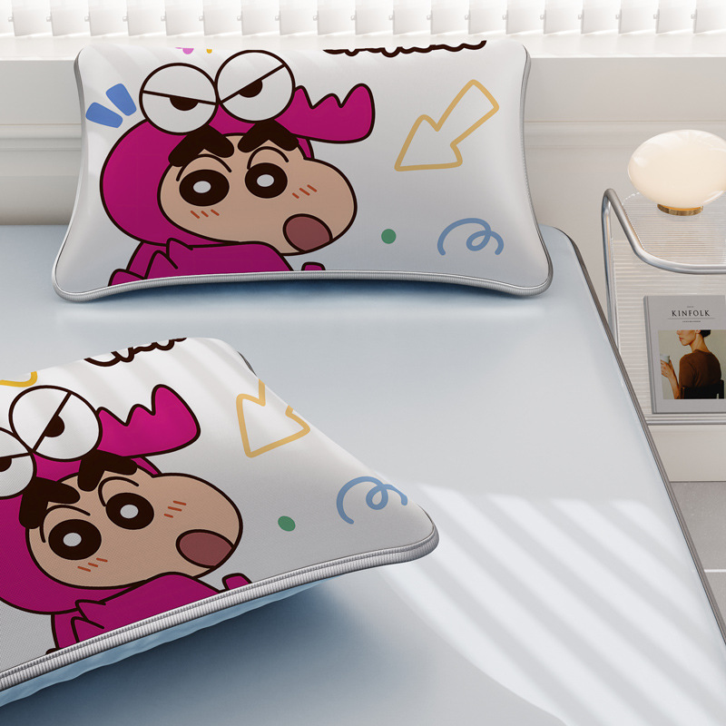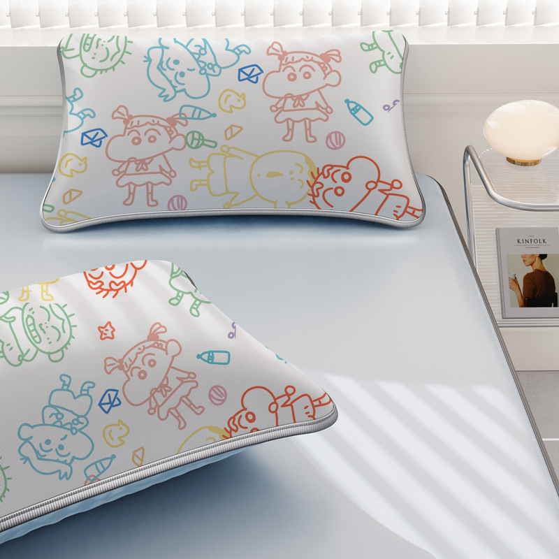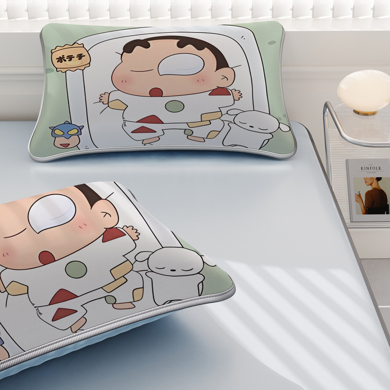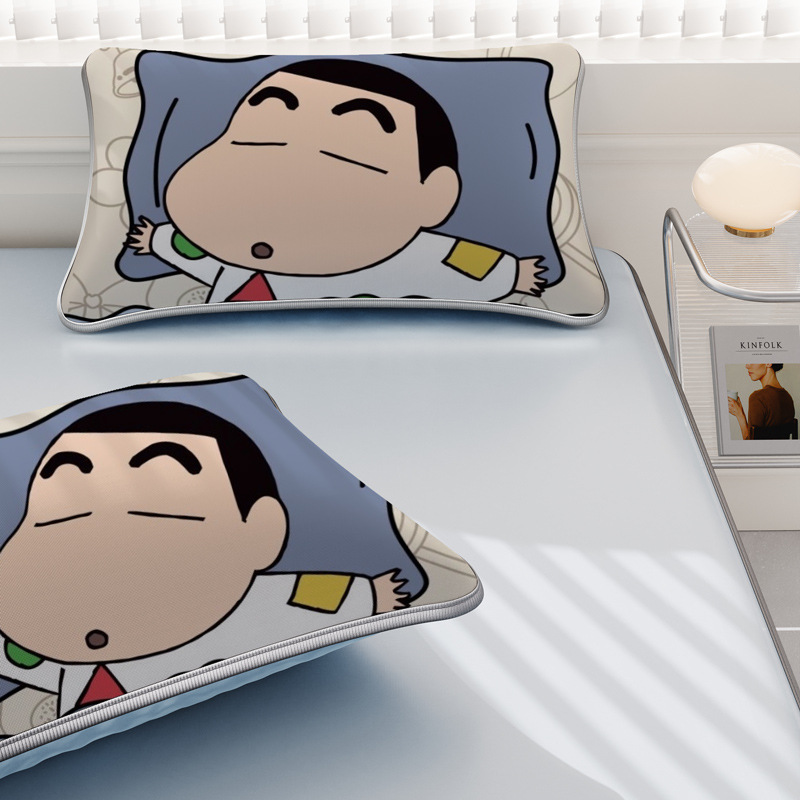 일본 크레용 신짱 만화 스타일 격자 무늬 얼음 실크 베개 커버 만화 성인과 어린이 에어컨 룸 낮잠 베개 커버스토어 가기