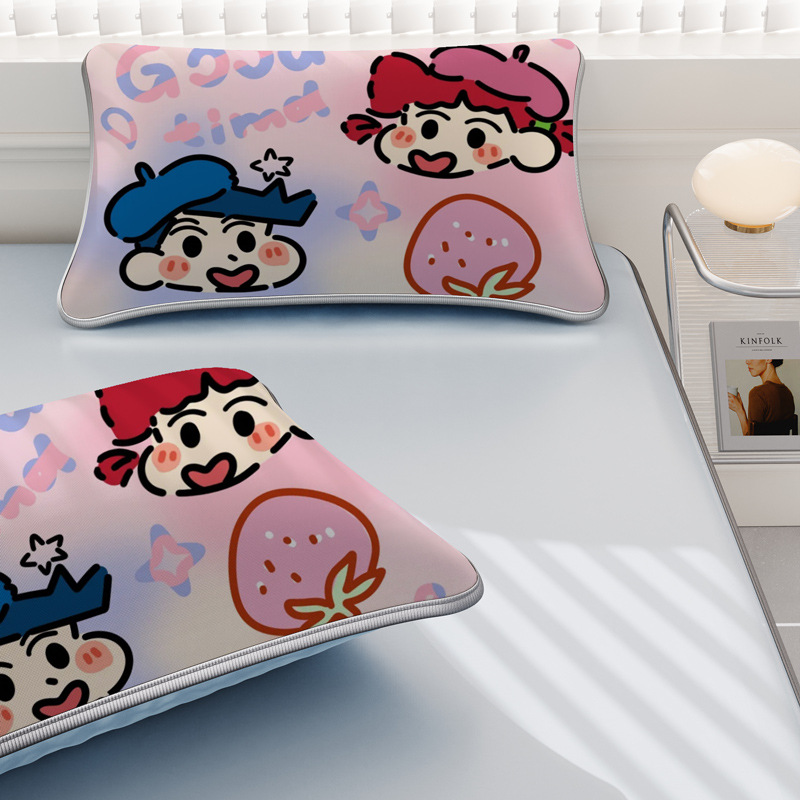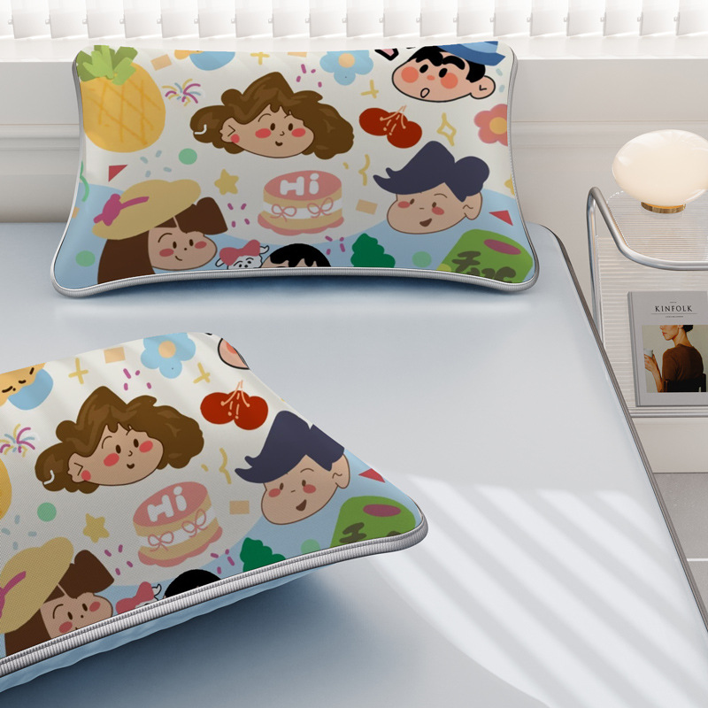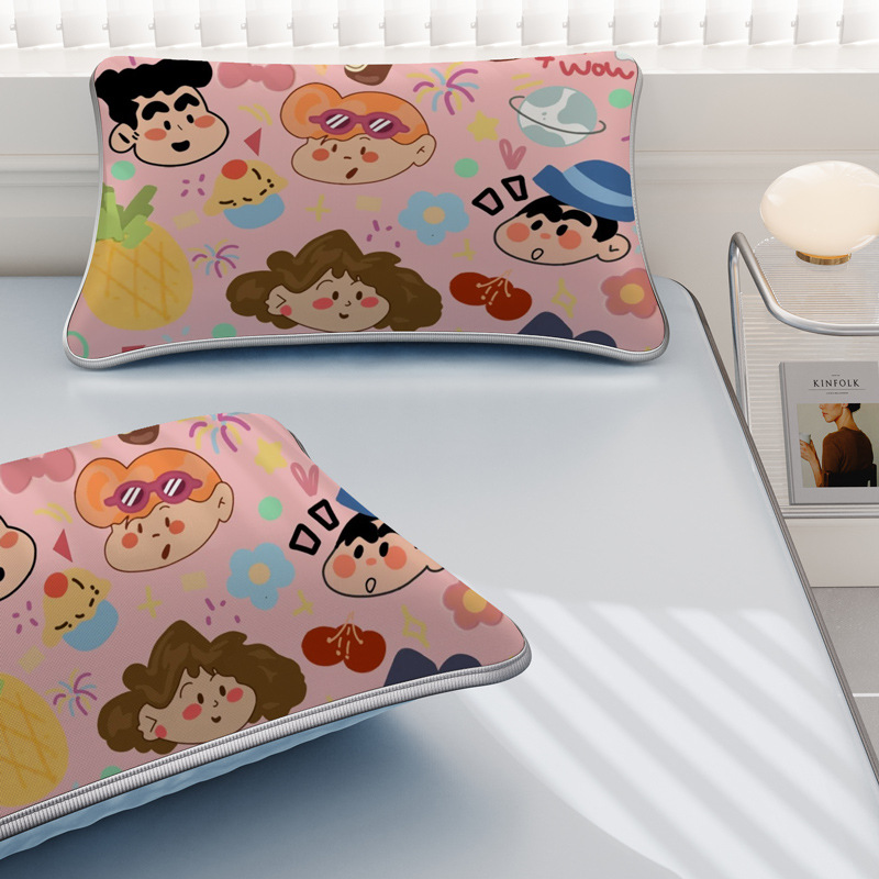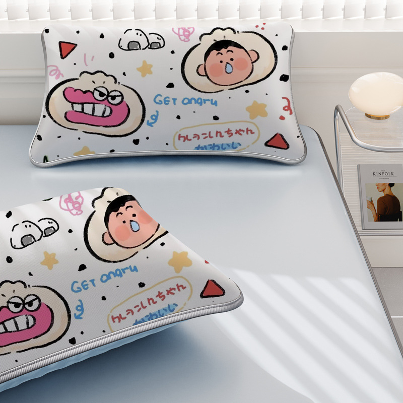 일본 크레용 신짱 만화 스타일 격자 무늬 얼음 실크 베개 커버 만화 성인과 어린이 에어컨 룸 낮잠 베개 커버