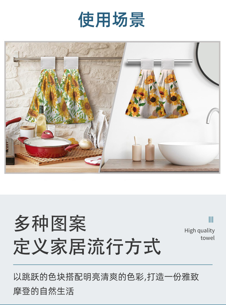 HD 디지털 인쇄 패턴 강한 흡수성 오염 제거 교수형 욕실 티 바 화장실 주방 수건 핸드 타월스토어 가기