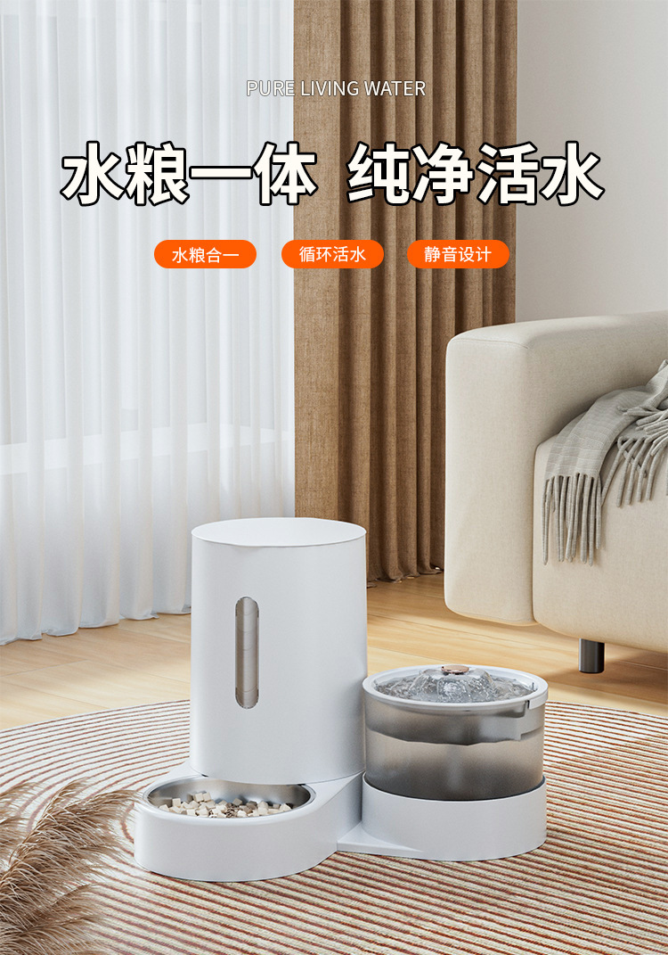 • ⊙◎●○◆◇2세대 플러그인 식수 자동급수기 [스테인리스 그릇부착] [회색] ⊙◎●○◆◇