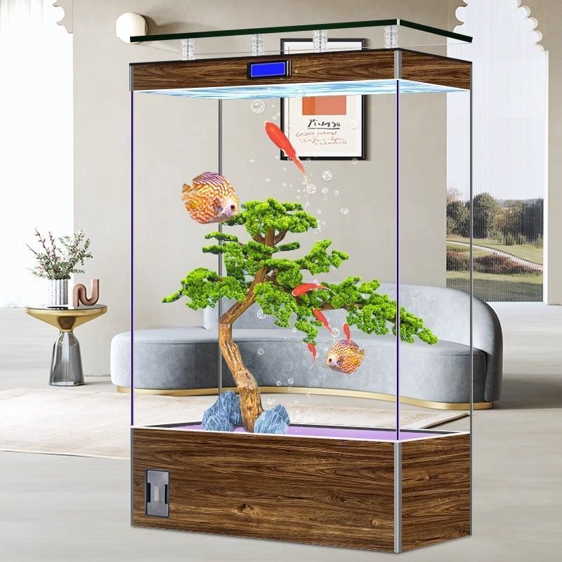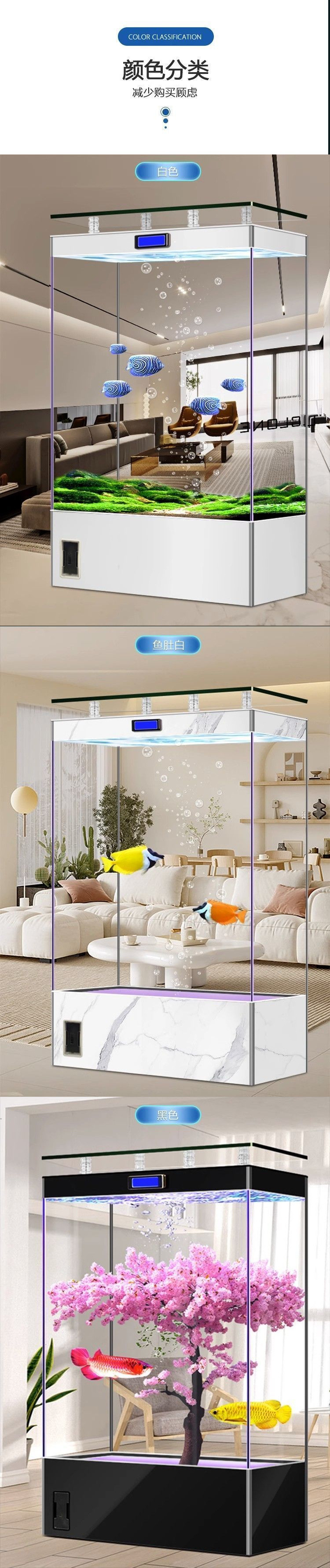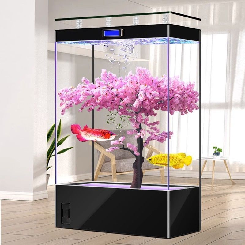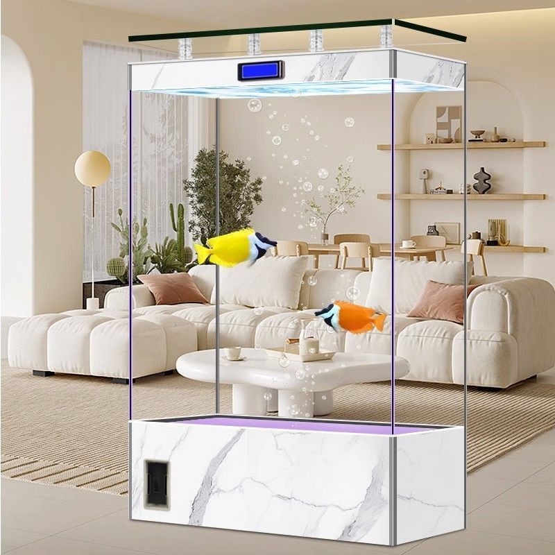 새로운 슈퍼 화이트 물고기 탱크 거실 가정용 필터 수족관 생태 무료 교체 물 대형 유리 금붕어 탱크