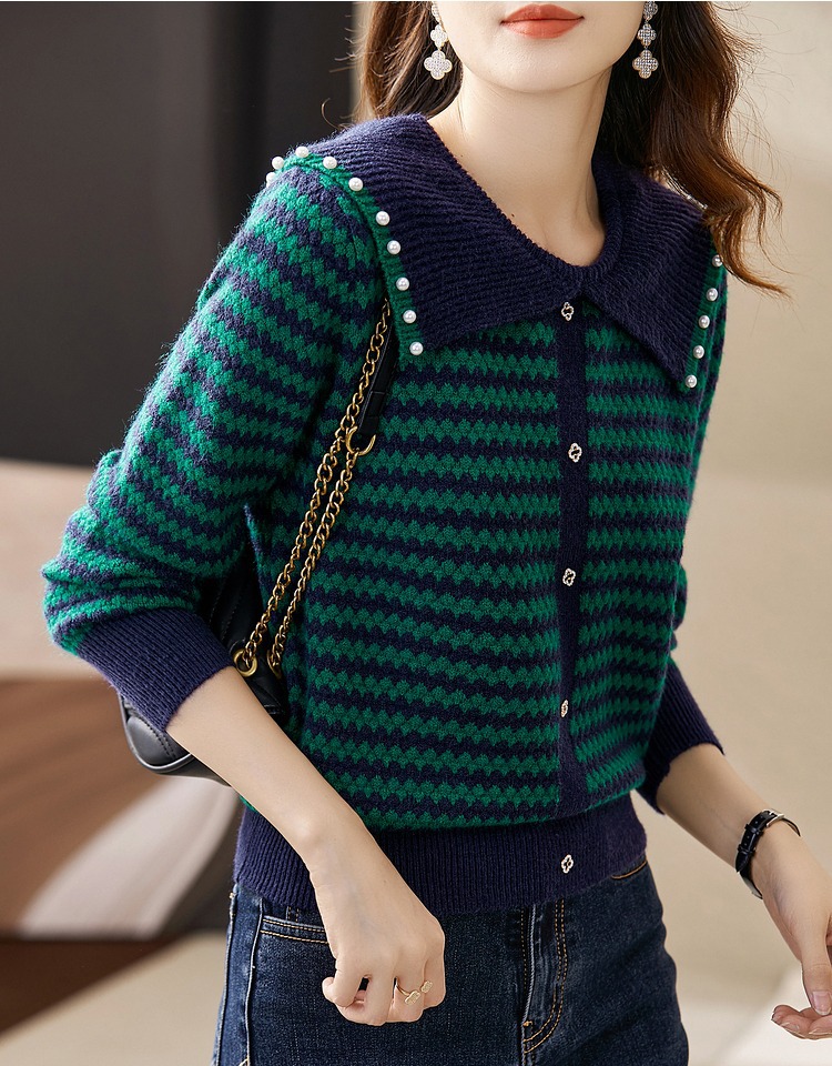 2023 가을과 겨울 새로운 옷깃 물결 모양의 따뜻한 스웨터 여성의 긴 소매 스트레이트 슬림 성격 디자인 감각스토어 가기