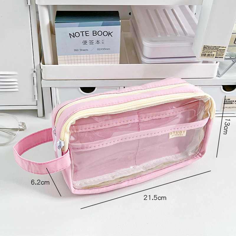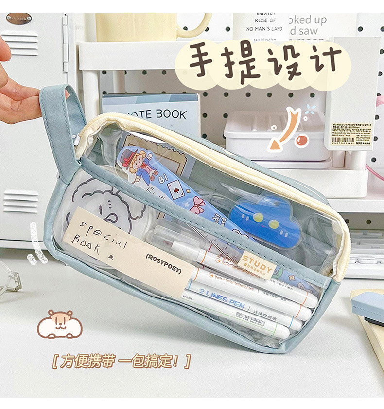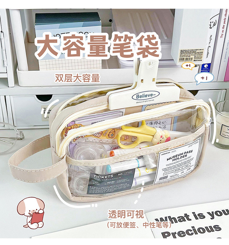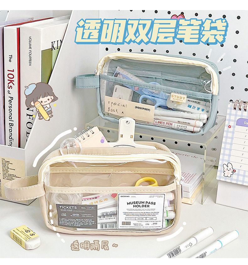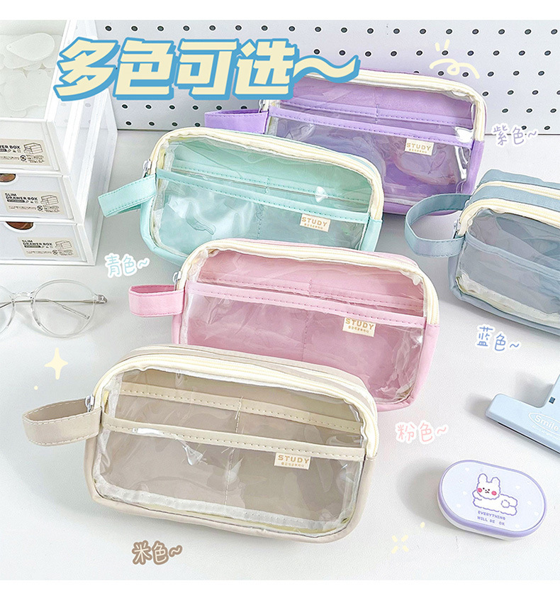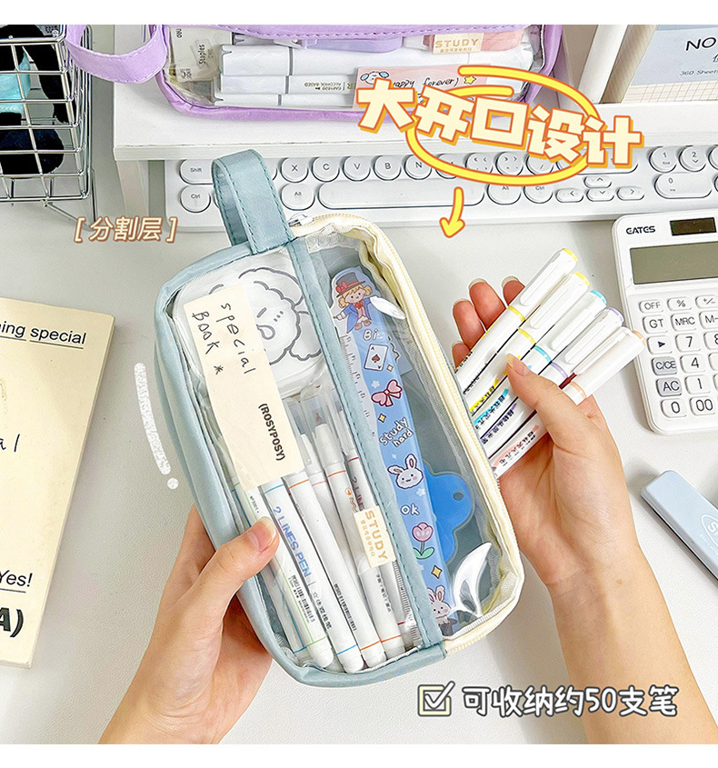 일본 대용량 연필 케이스 중학생 단순 투명 고 가치 문구 가방 초등 학생을위한 대형 오프닝 문구 케이스스토어 가기