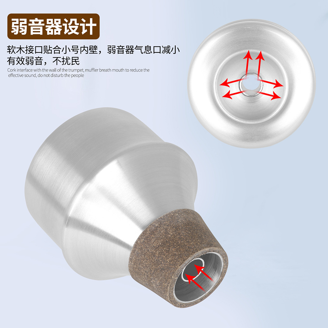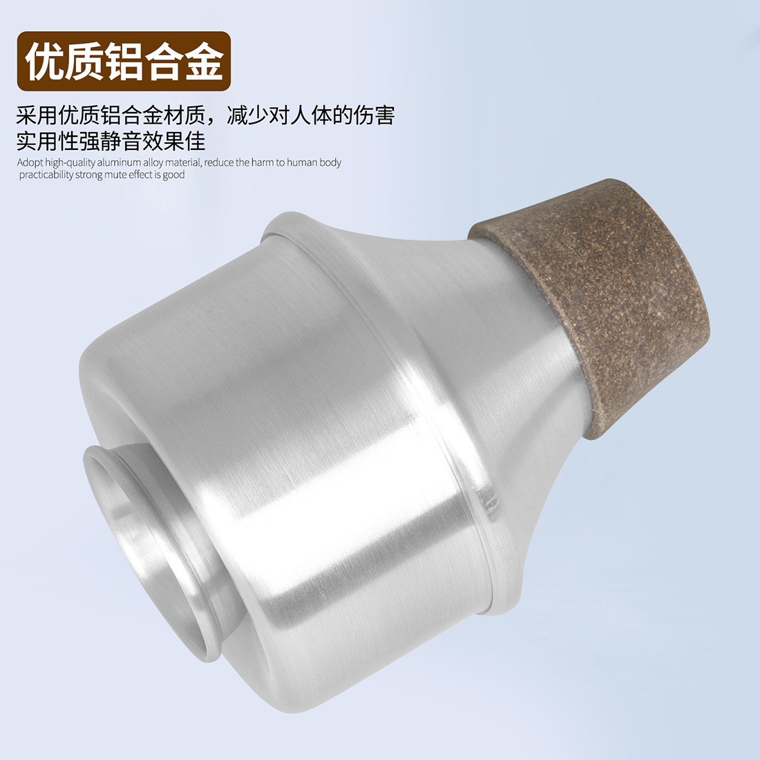 用途卖点:新款ND251铝合金小号哇哇弱音器,适用于小号,软木接口防潮防水,富有弹性,贴合小号内壁,清音减震,弱音器气息口减小,有效弱音,不扰民,采用铝合金材质,减少对人体的伤害,静音效果佳