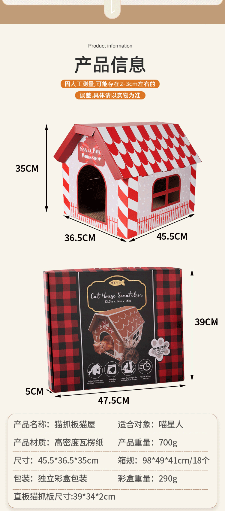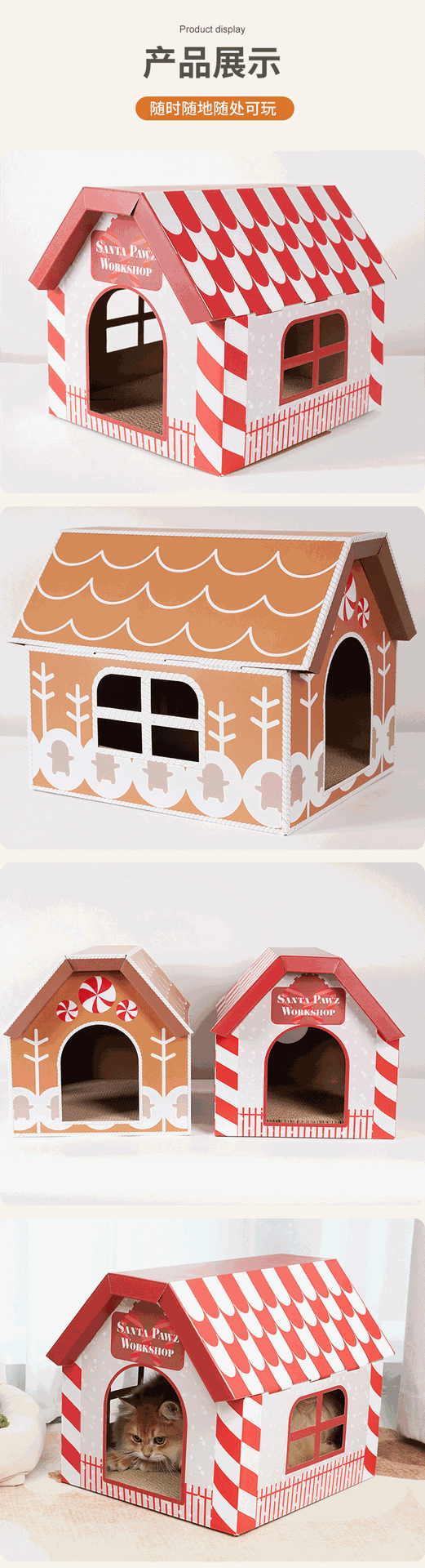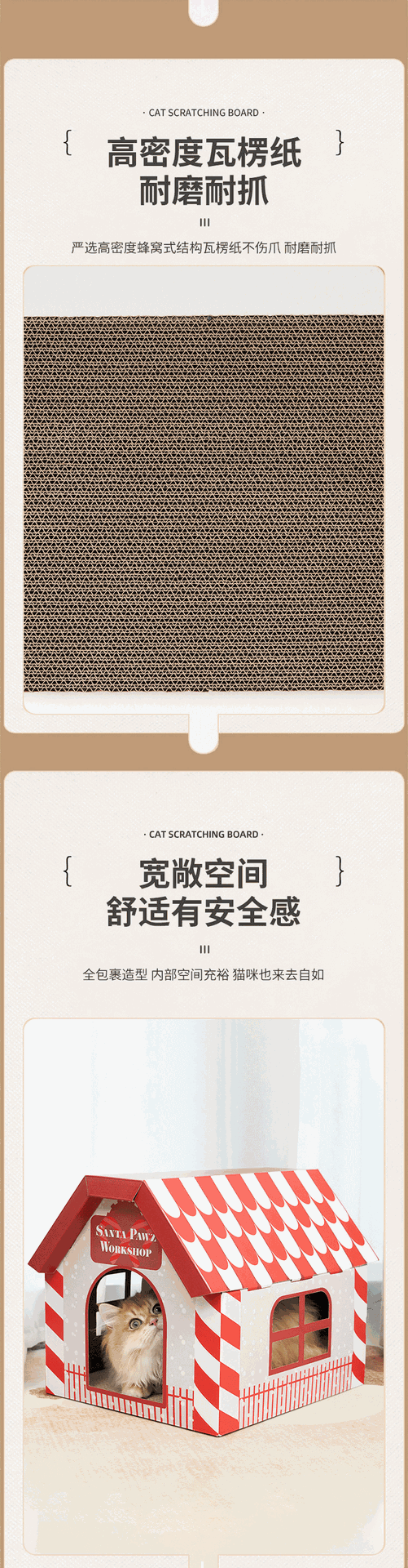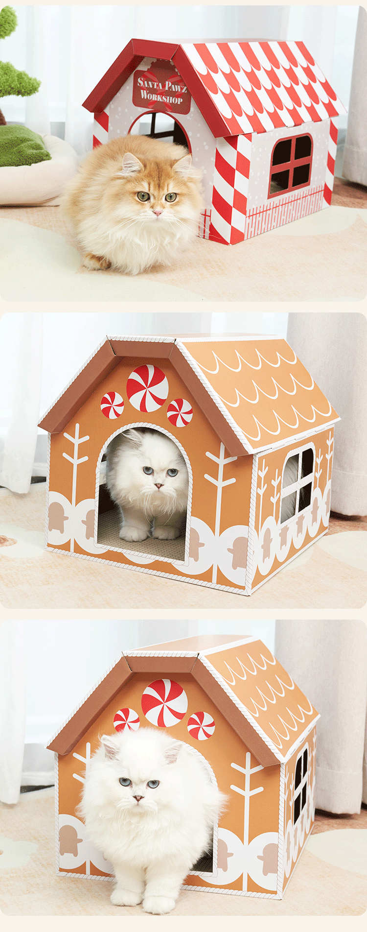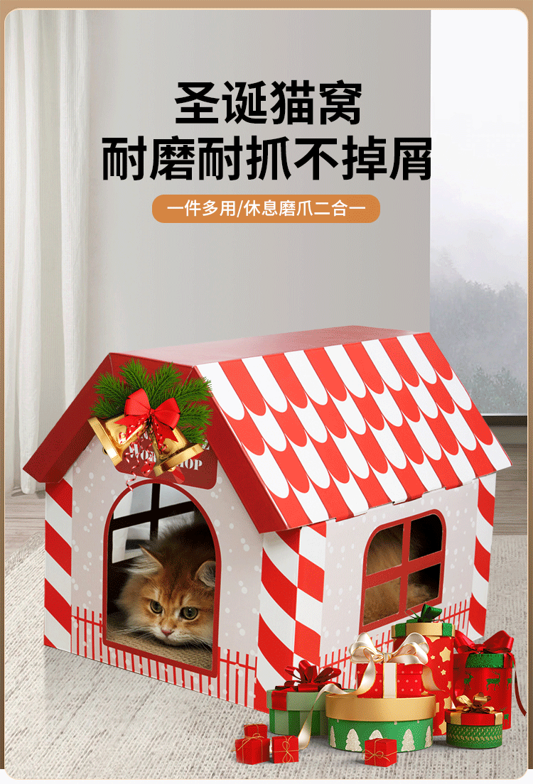 크리스마스 데이 고양이 둥지 암호화 된 골판지 마모 방지 스크랩 프리 고양이 스크래치 보드 다기능 애완 동물 둥지 대용량 개 둥지