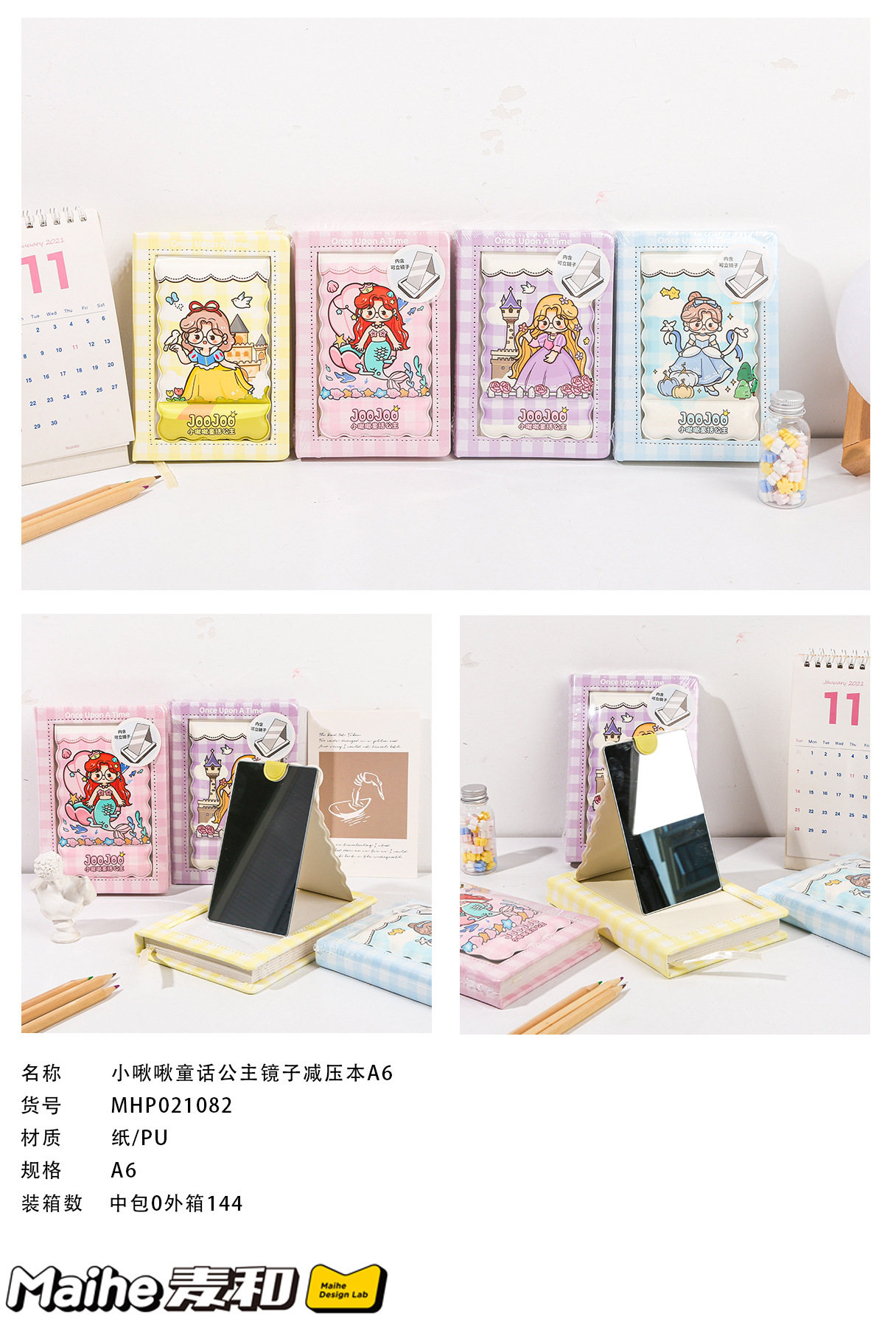 Maihe 문구 작은 치우 치우 동화 공주 거울 스트레스 릴리프 도서 A6 소녀 다기능 일기 만화 메모장