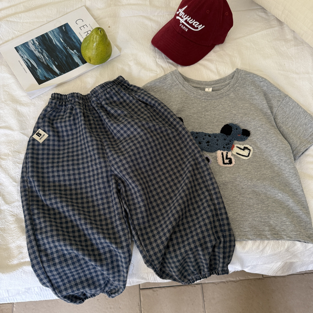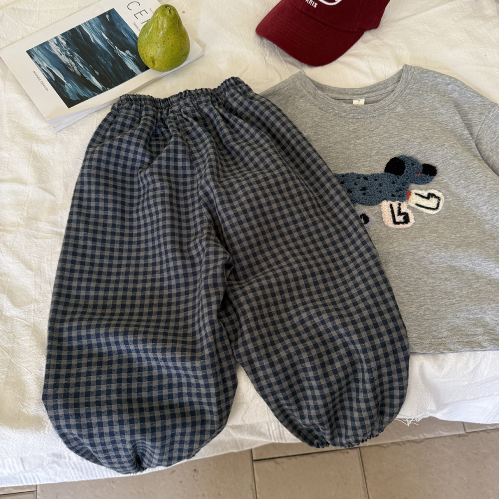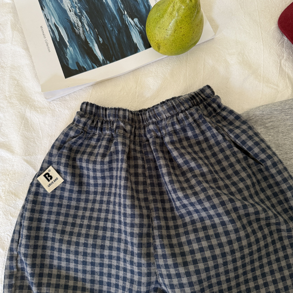 어린이 여름 모기 방지 바지 2025 새로운 소년 서양식 격자 무늬 바지 어린이 느슨한 얇은 틸트 바지 트렌디스토어 가기