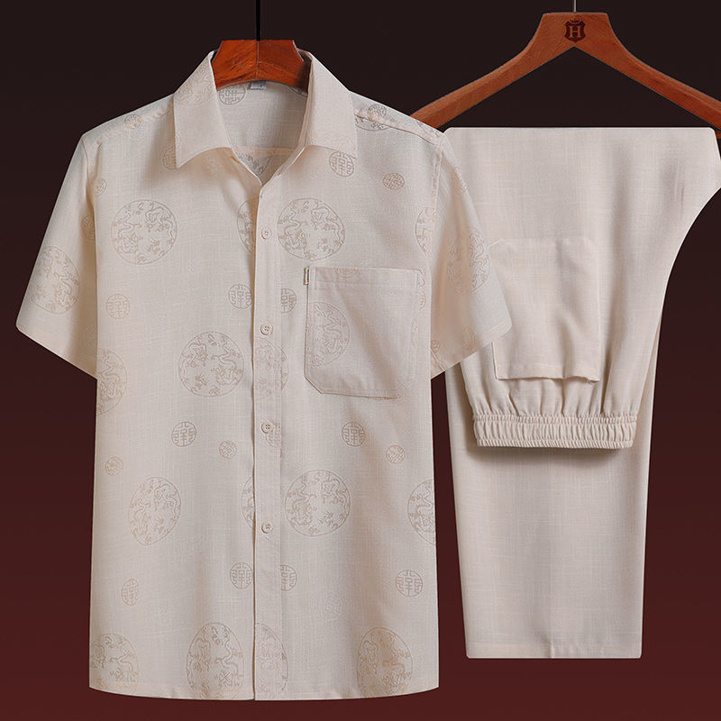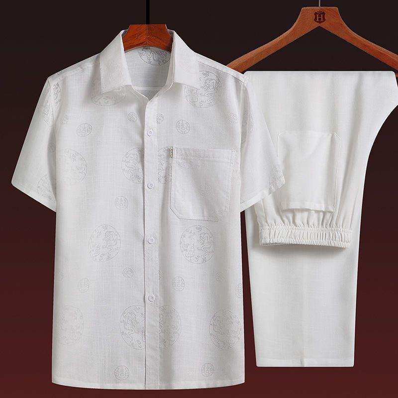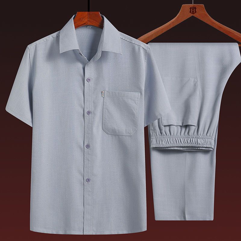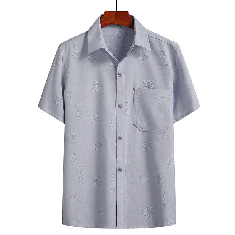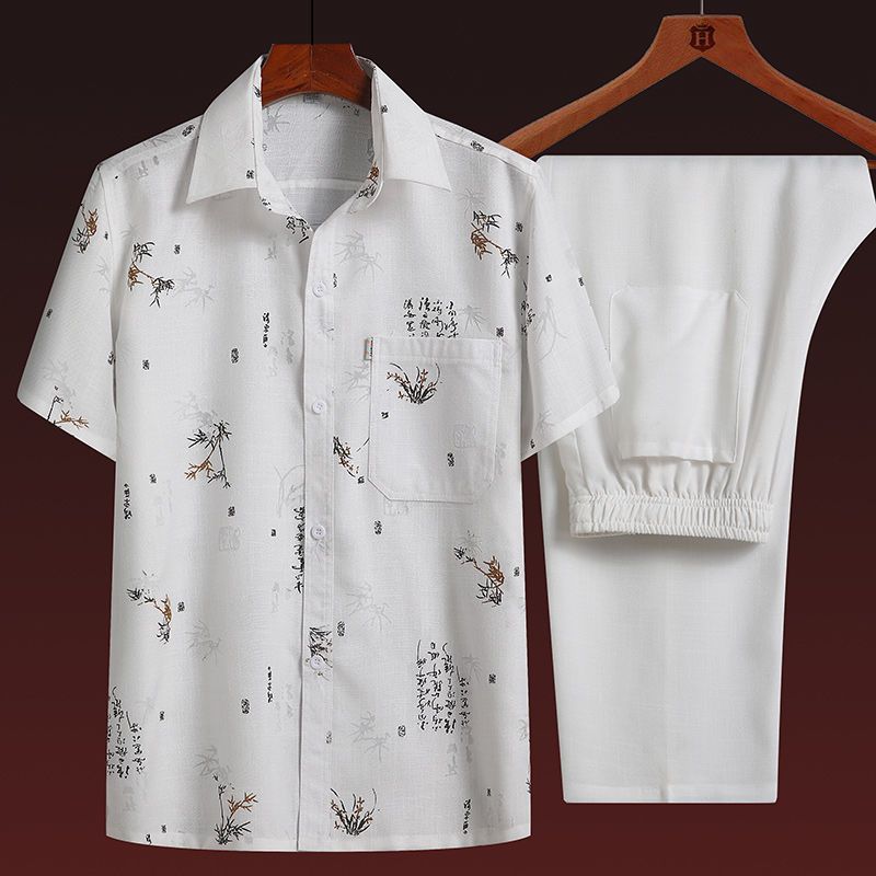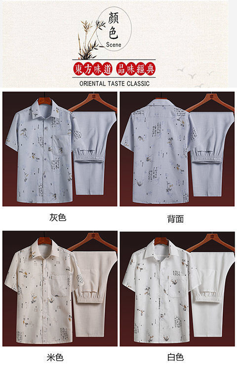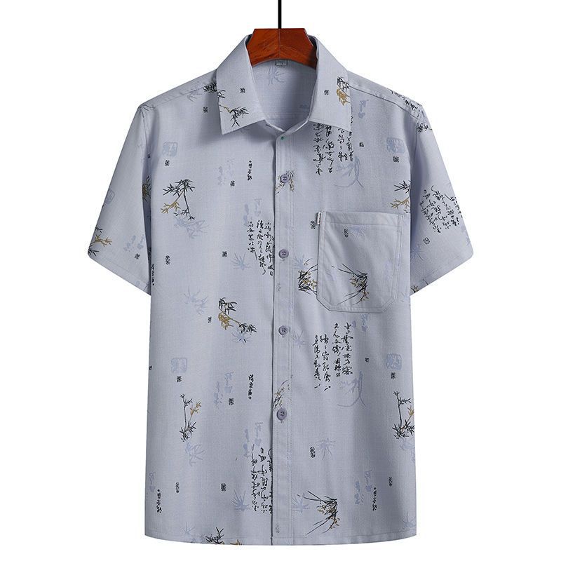 여름 반소매 중년 남성 반소매 중 · 노인 아빠의 여름 셔츠 할아버지의 옷 면 · 리넨스토어 가기