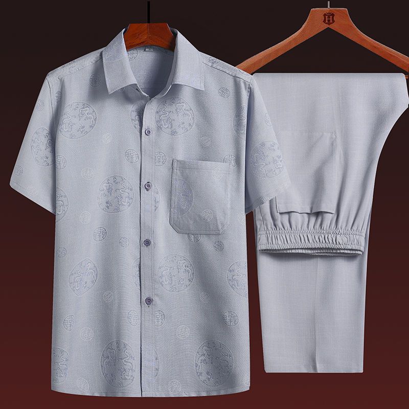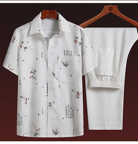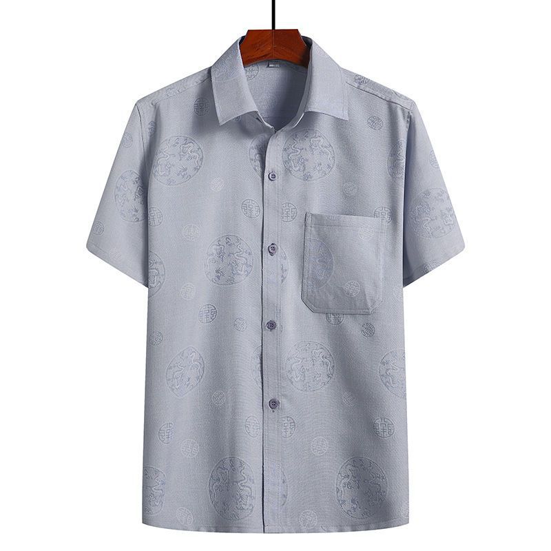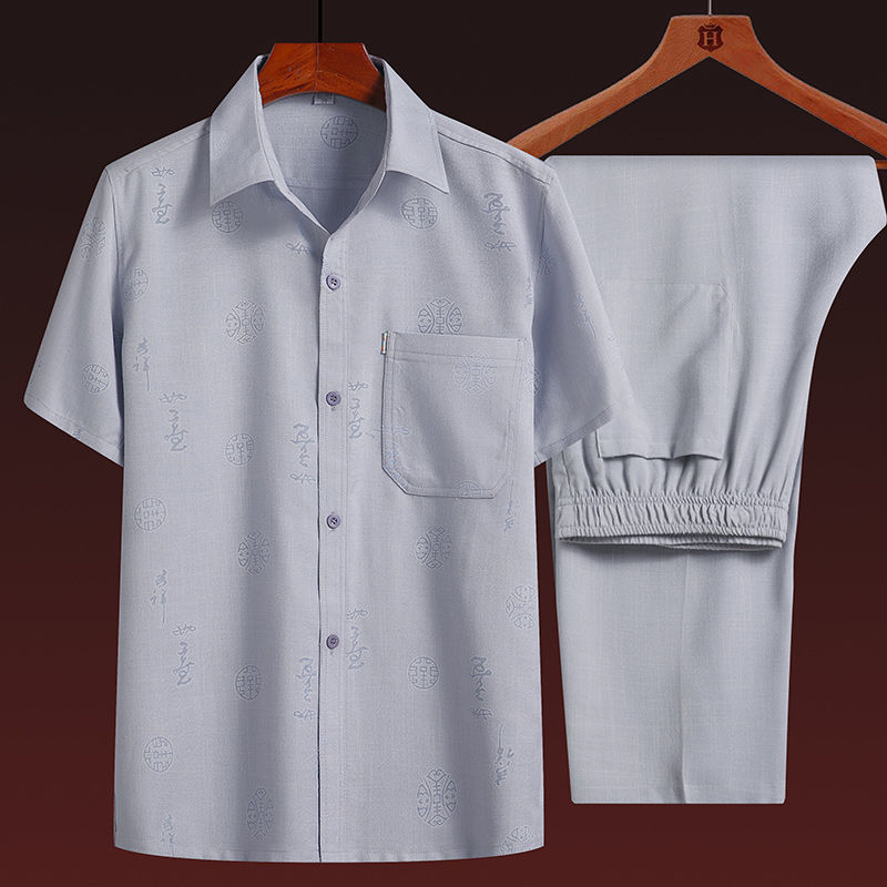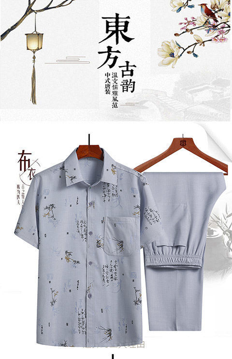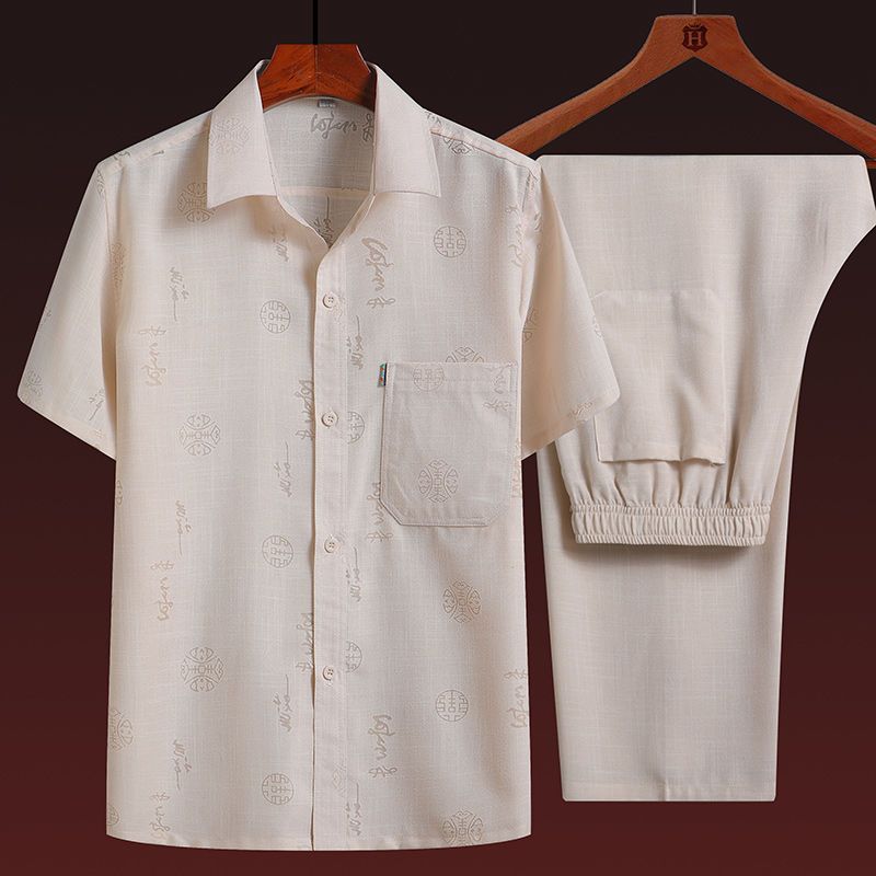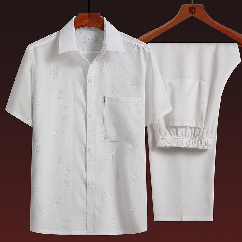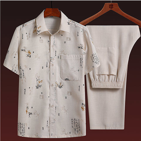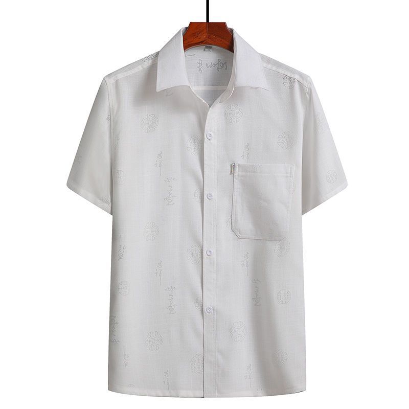 여름 반소매 중년 남성 반소매 중 · 노인 아빠의 여름 셔츠 할아버지의 옷 면 · 리넨스토어 가기