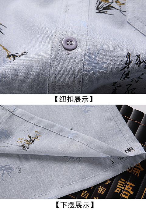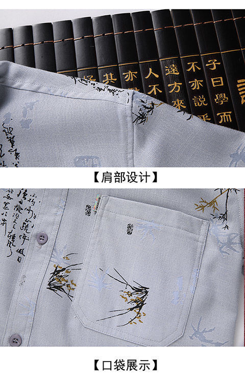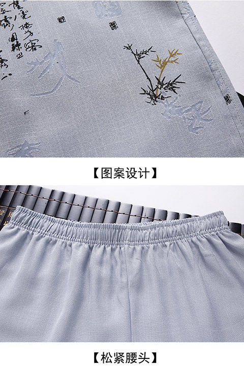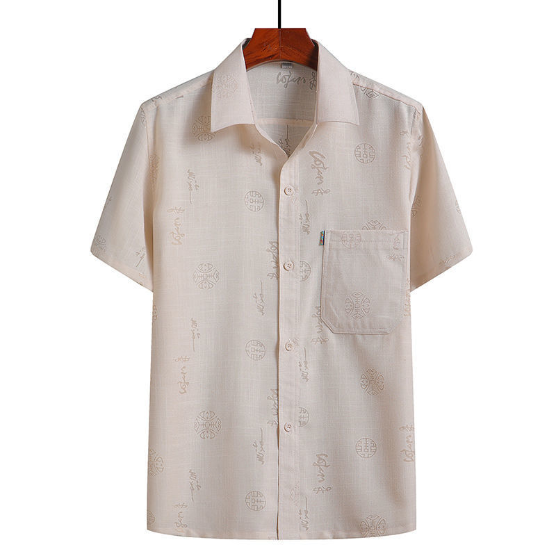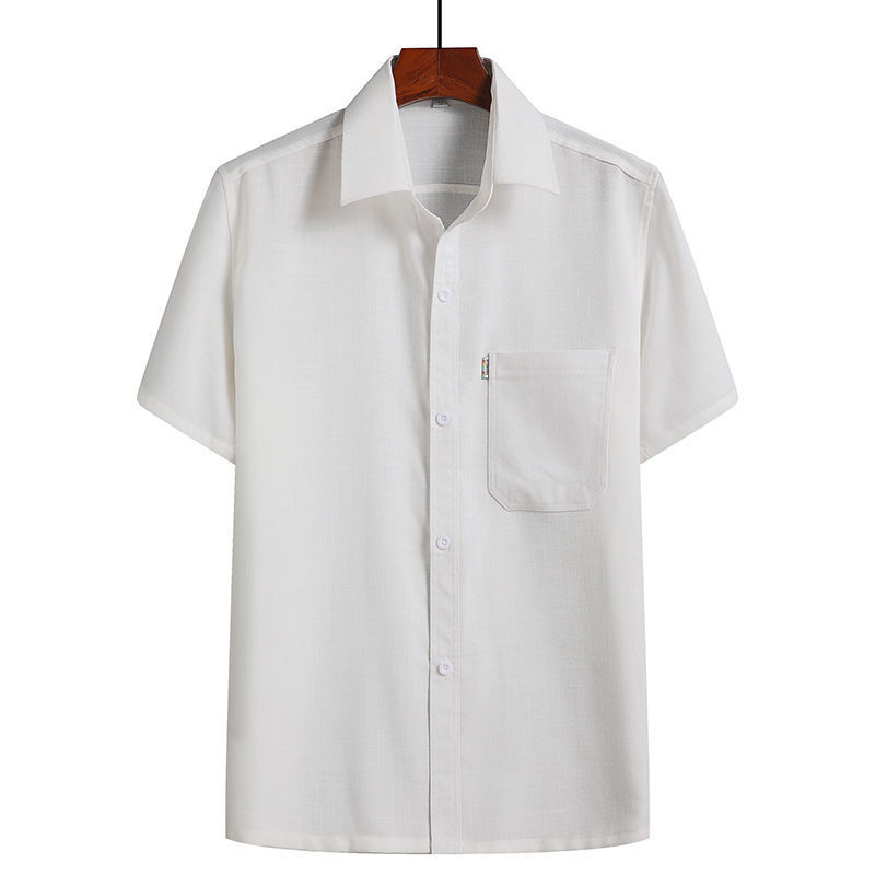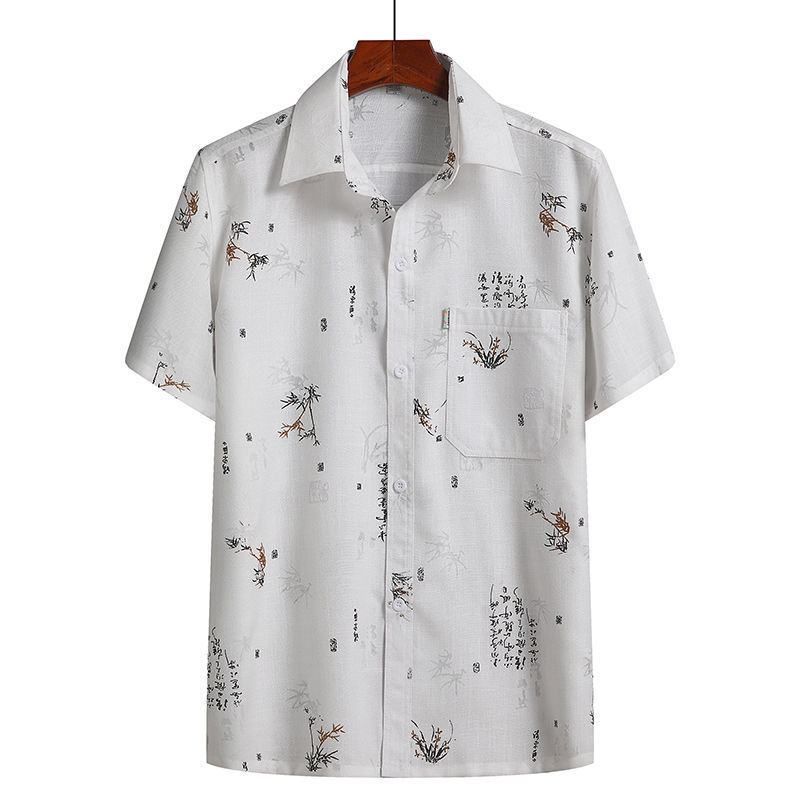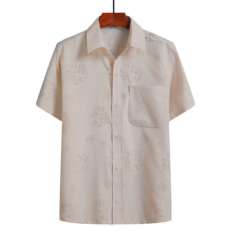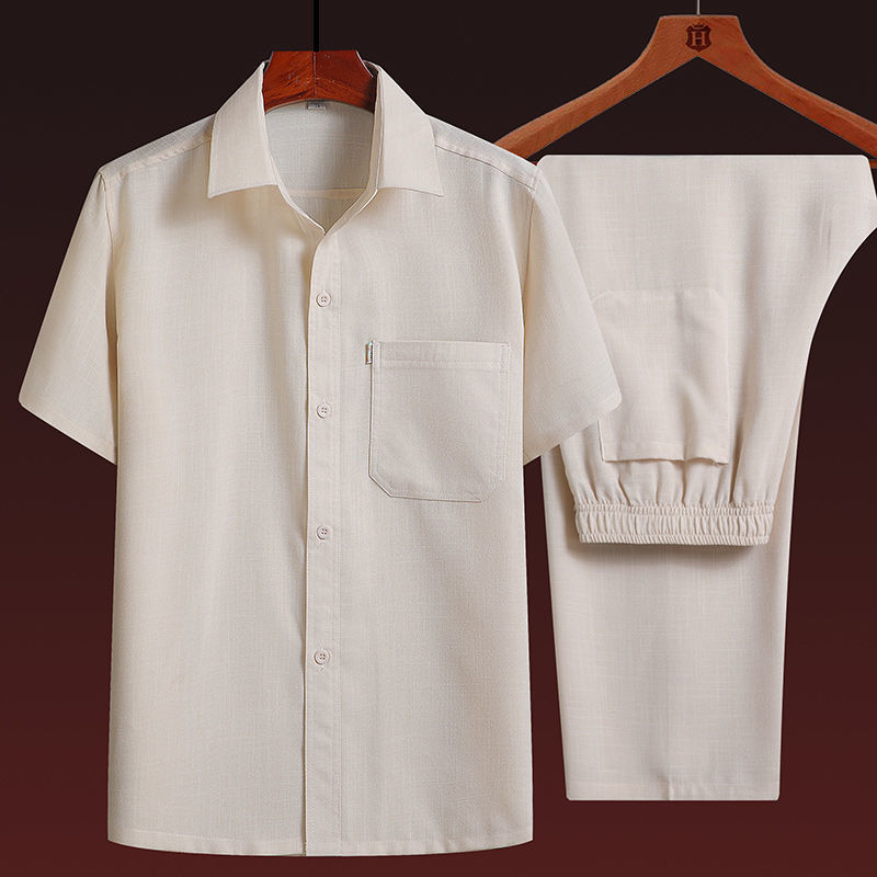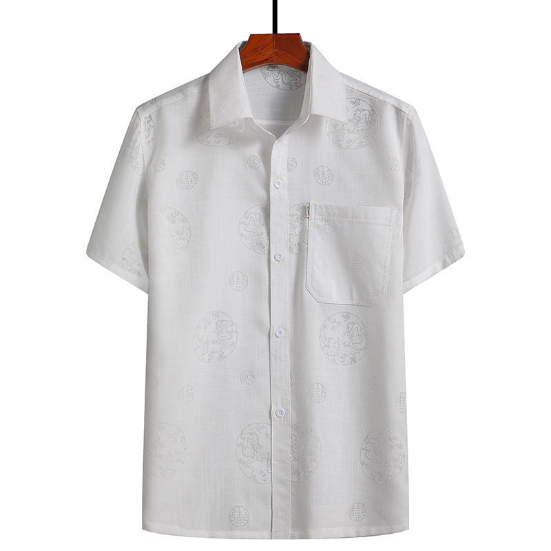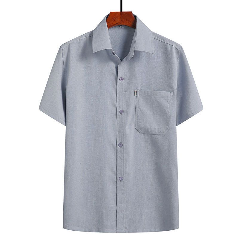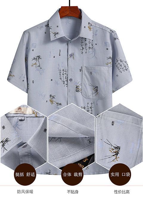 여름 반소매 중년 남성 반소매 중 · 노인 아빠의 여름 셔츠 할아버지의 옷 면 · 리넨