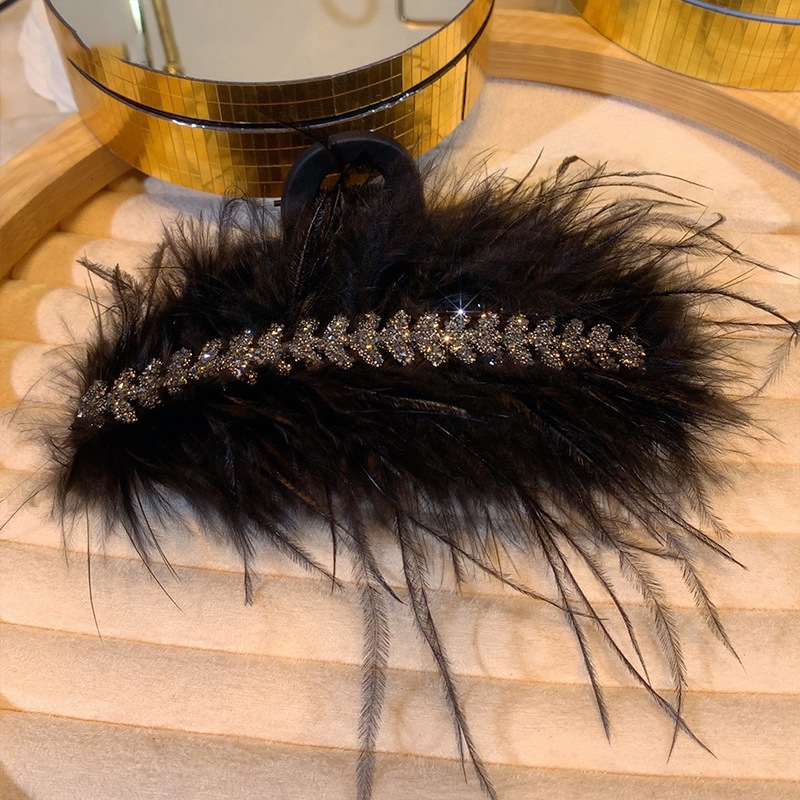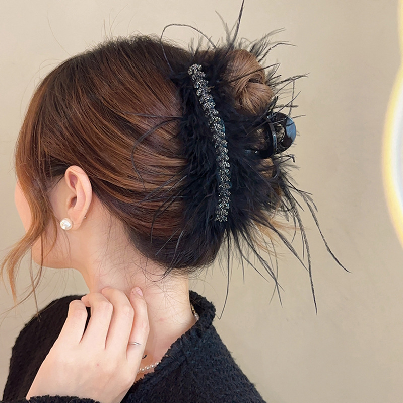 고급 깃털 밀 이삭 머리핀, 여성용 헤어핀, 뒷머리용 대형 상어 머리핀