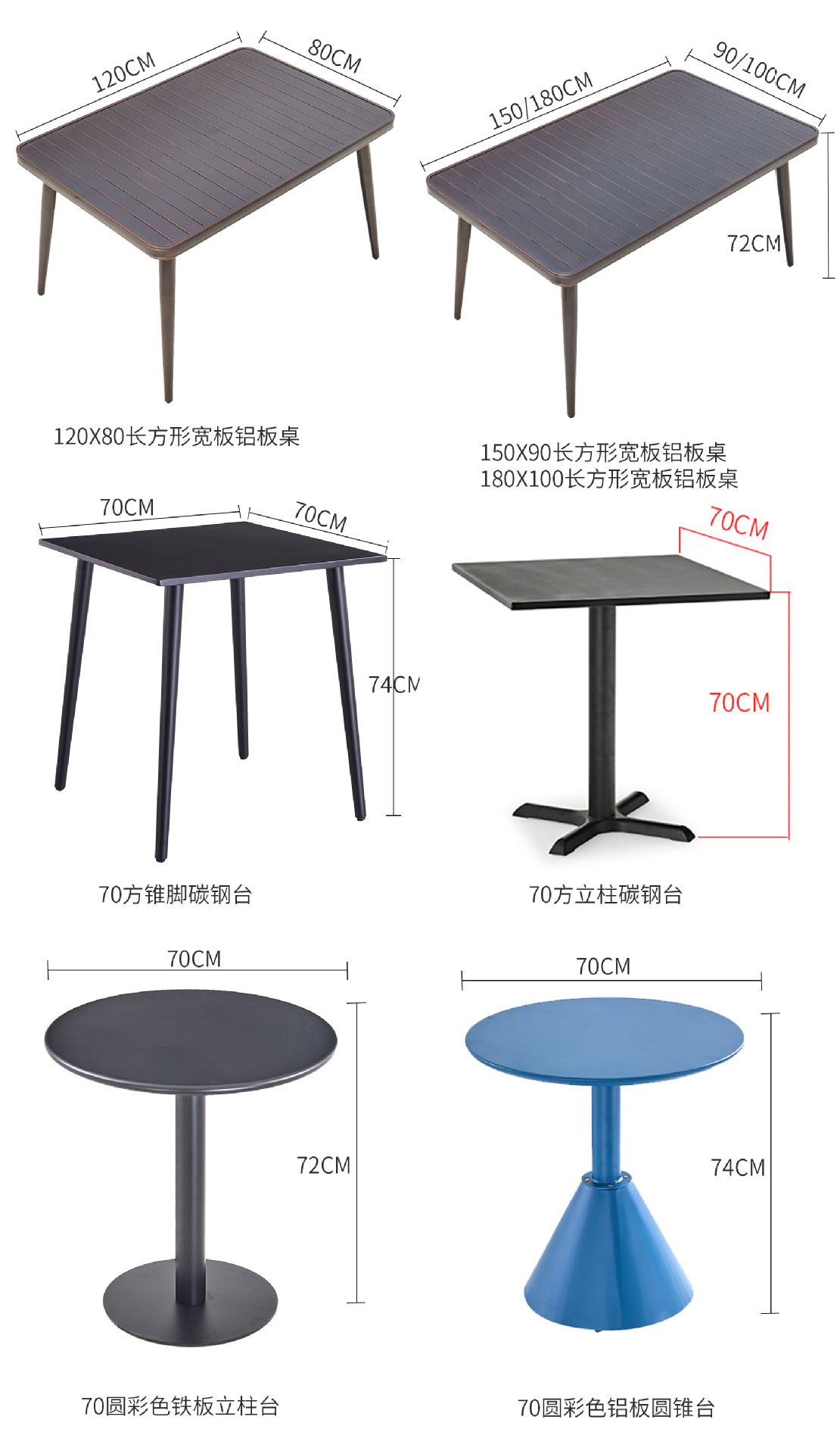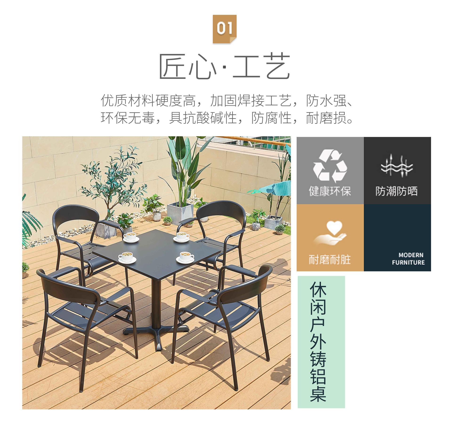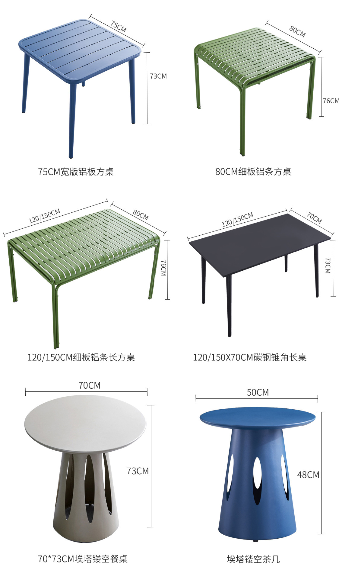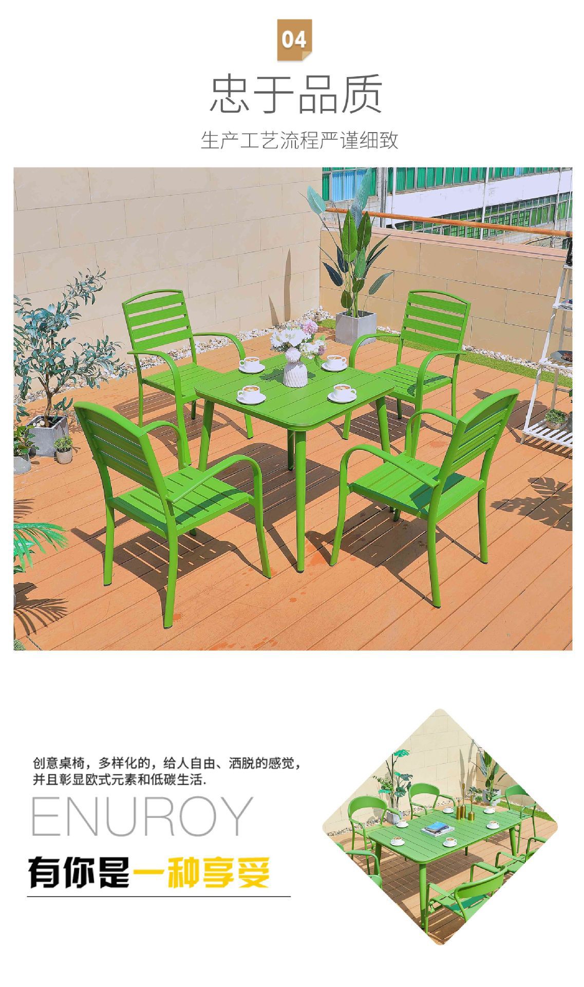 야외 알루미늄 플레이트 레저 테이블 및 의자 야외 발코니 가든 빌라 테라스 다채로운 테이블 및 의자 알루미늄 합금 테이블 및 의자
