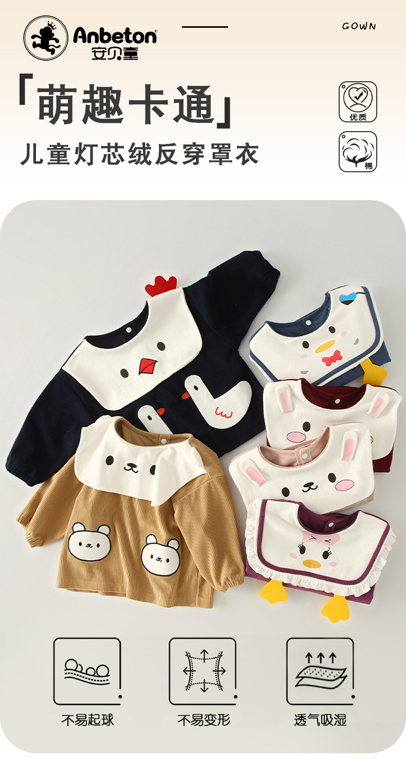 어린이 코듀로이 작업복 가을과 겨울 아기 소년과 소녀는 방수 더러운 안티 드레싱을 먹기 위해 외국 스타일의 귀여운 앞치마를 착용합니다.