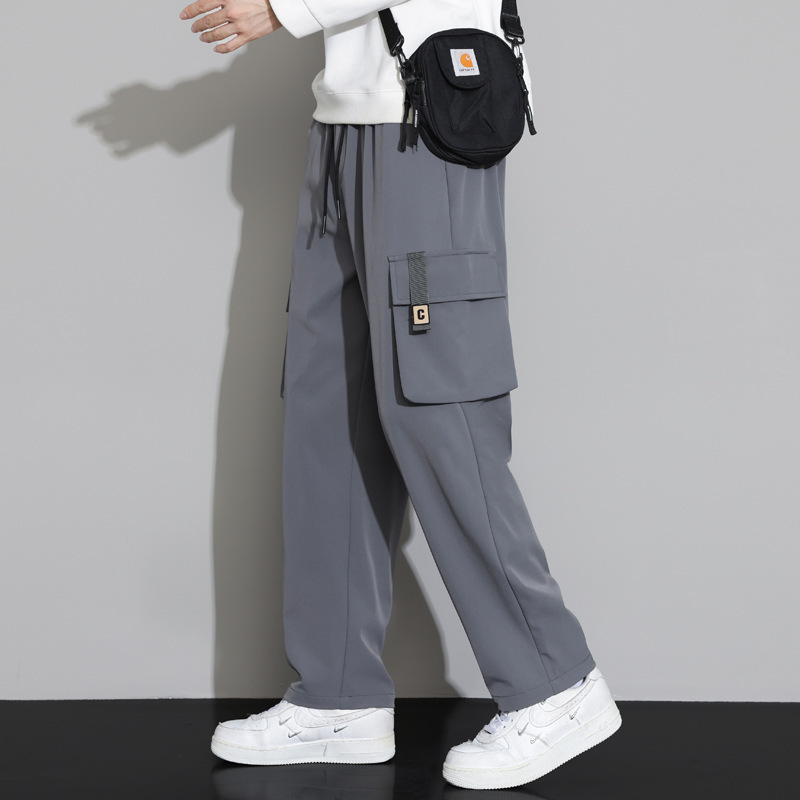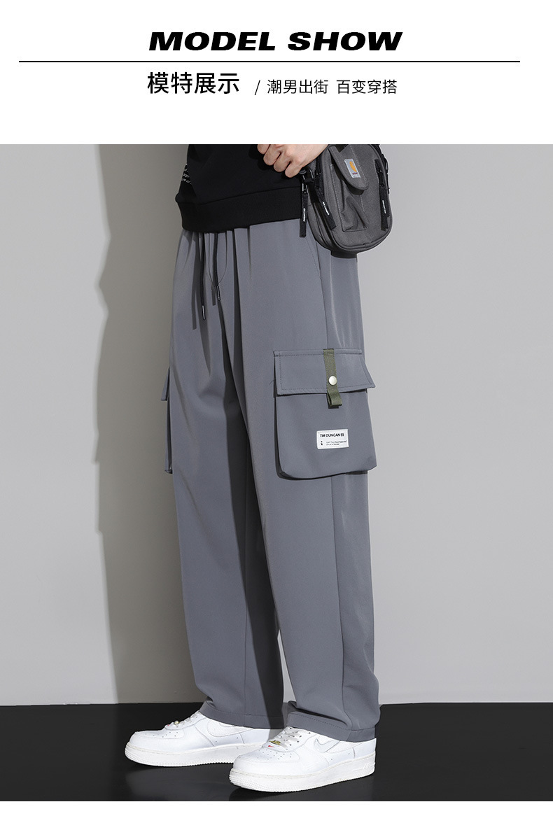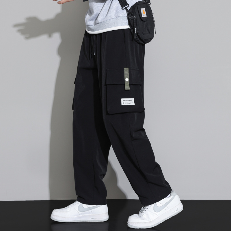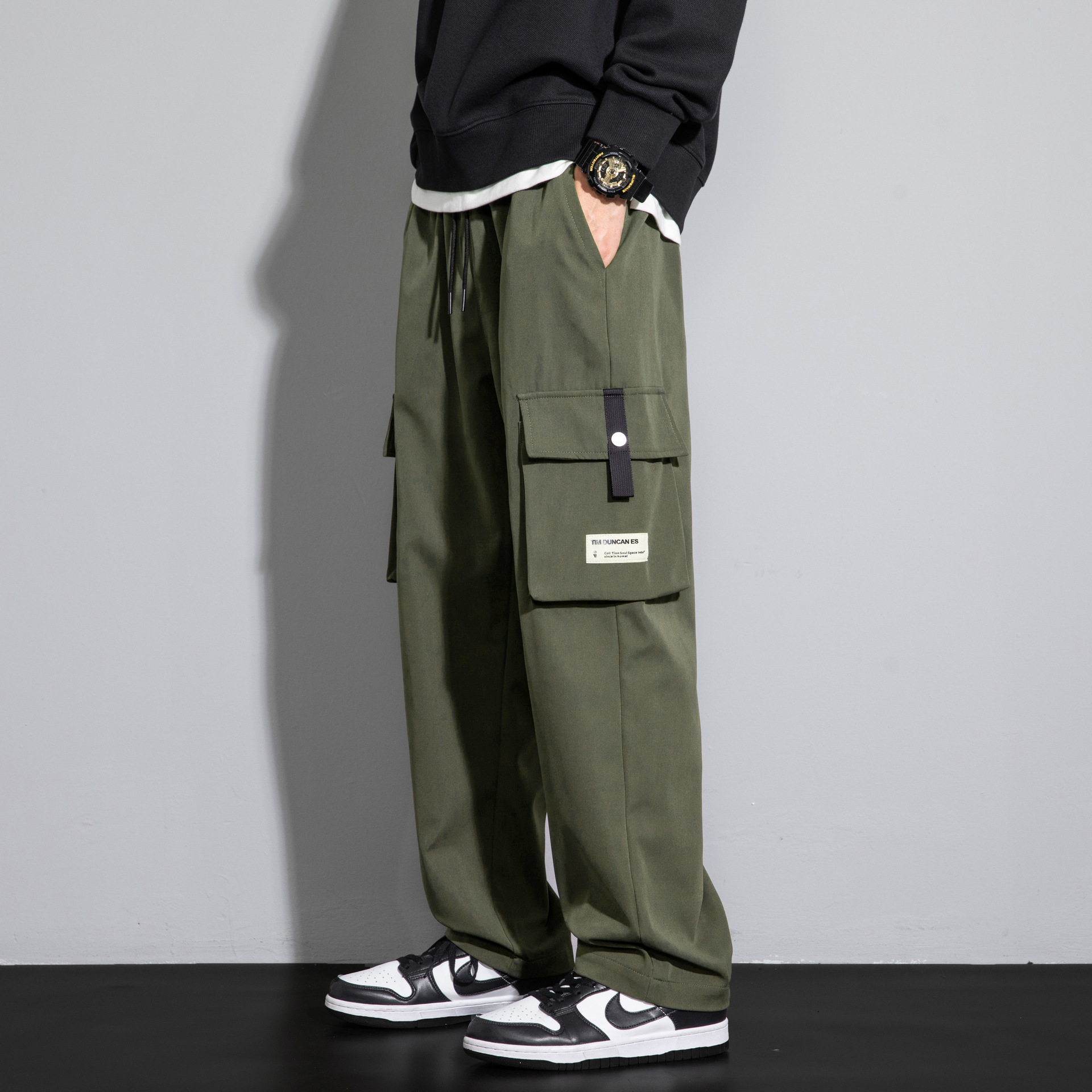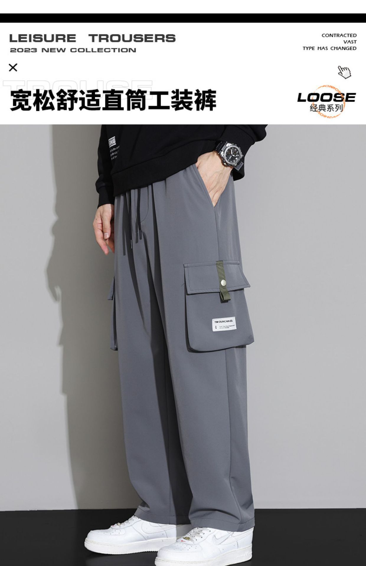 플러스 사이즈 블랙 코일 바지 남성용 봄과 가을 느슨한 스트레이트 튜브 플러스 사이즈 멀티 포켓 가을 캐주얼 긴 바지스토어 가기