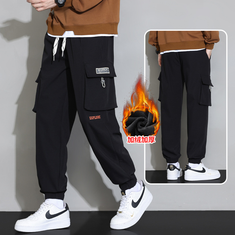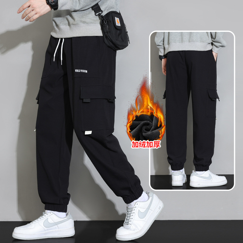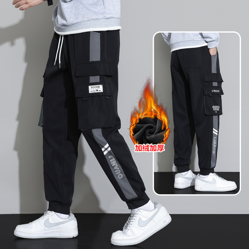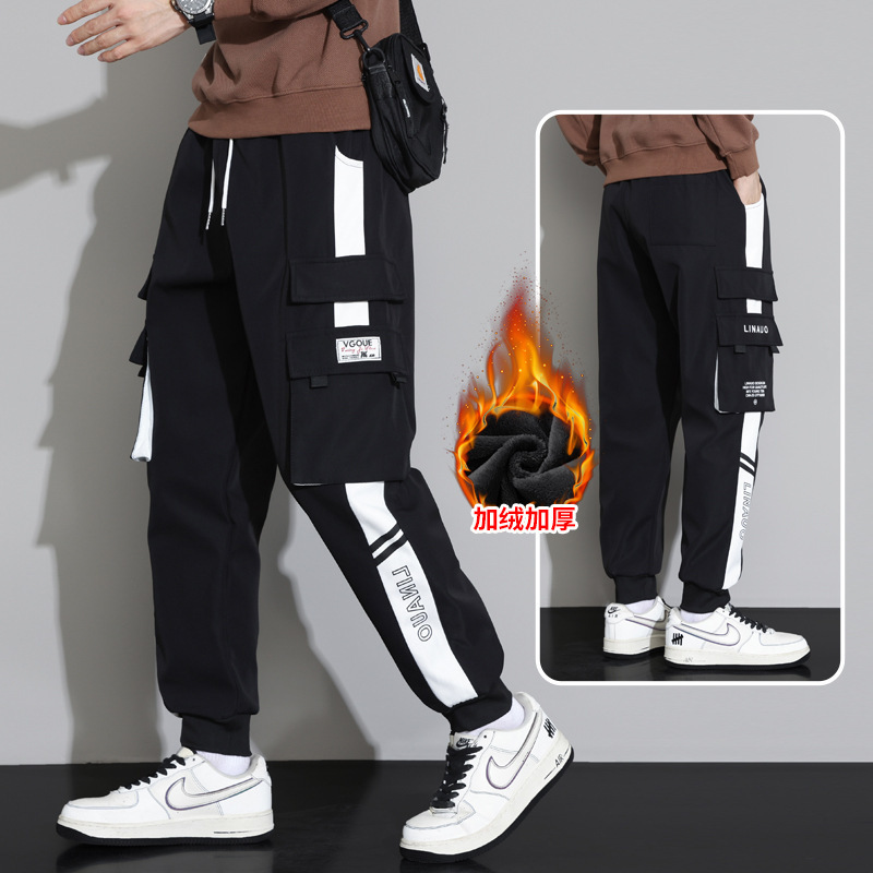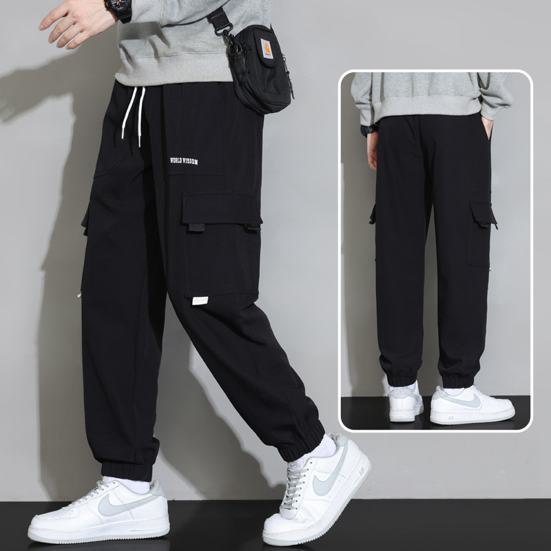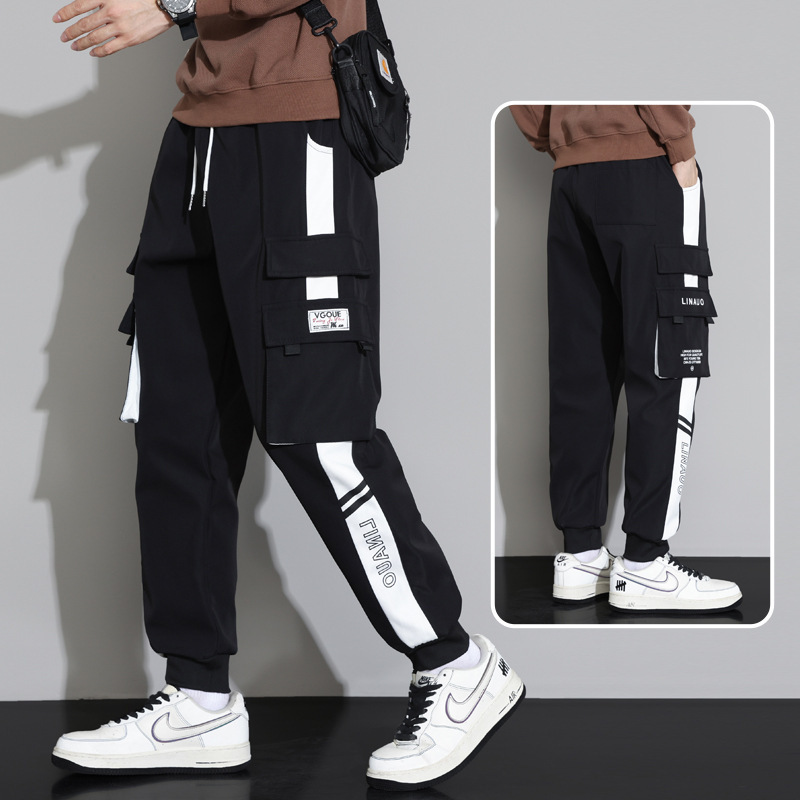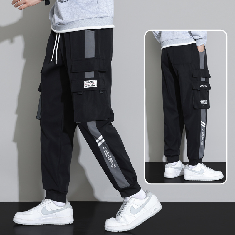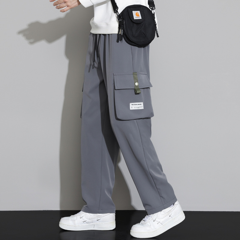 플러스 사이즈 블랙 코일 바지 남성용 봄과 가을 느슨한 스트레이트 튜브 플러스 사이즈 멀티 포켓 가을 캐주얼 긴 바지스토어 가기