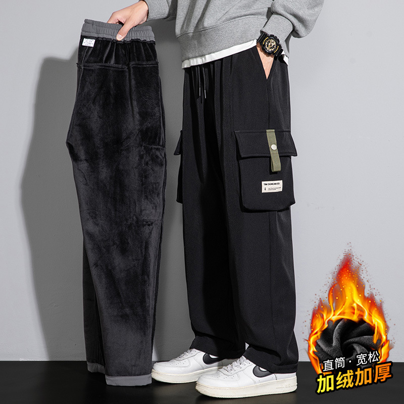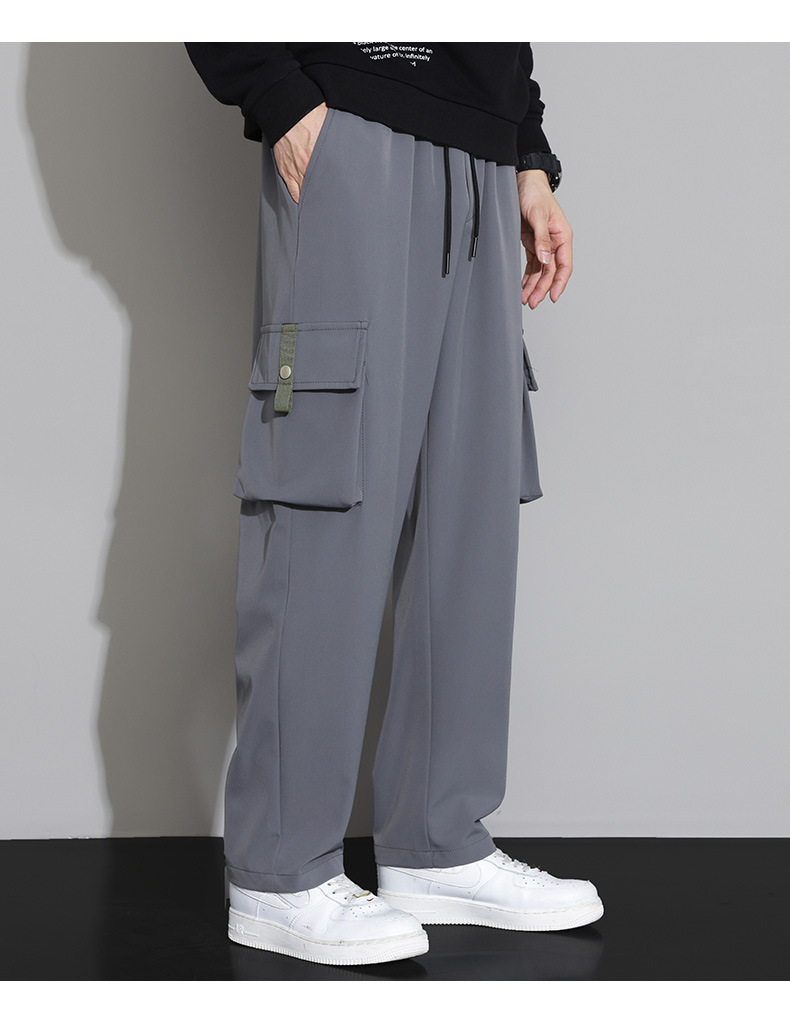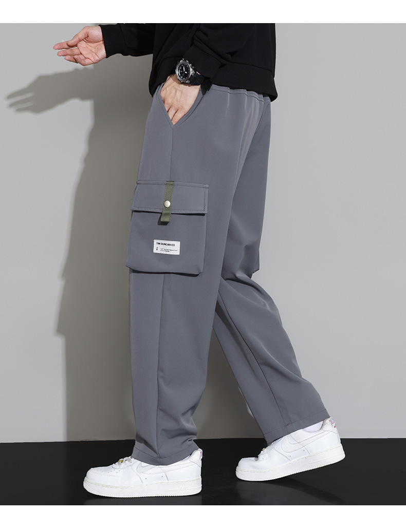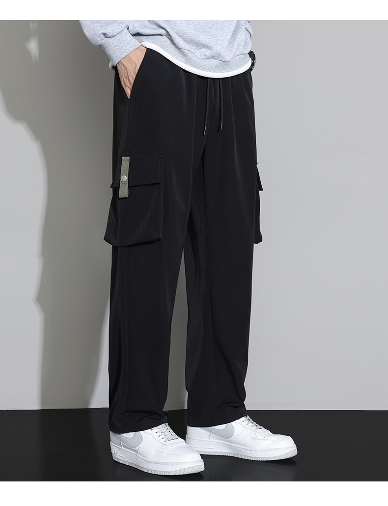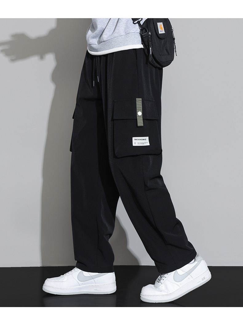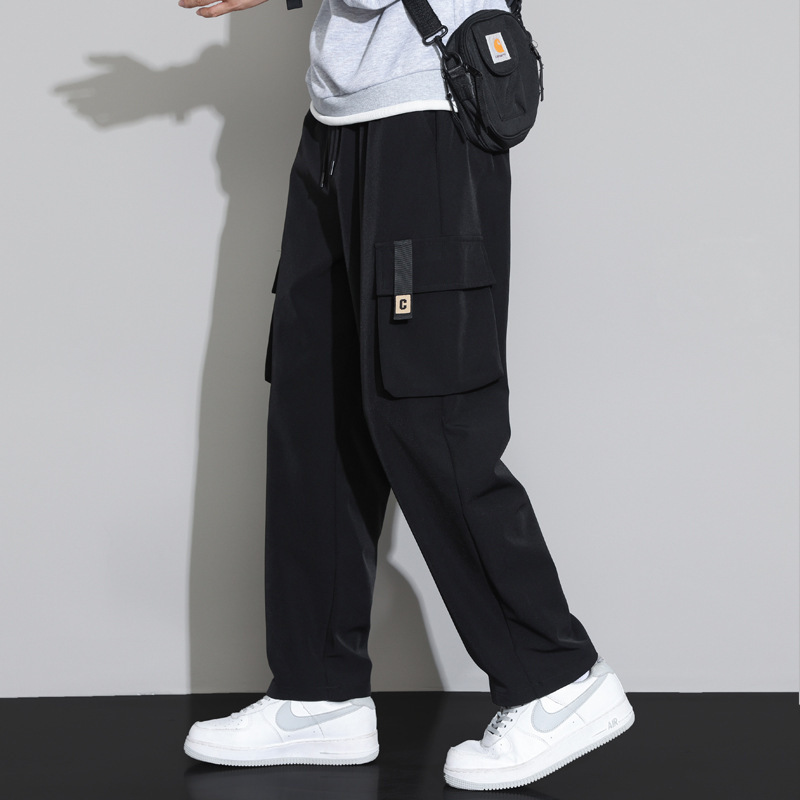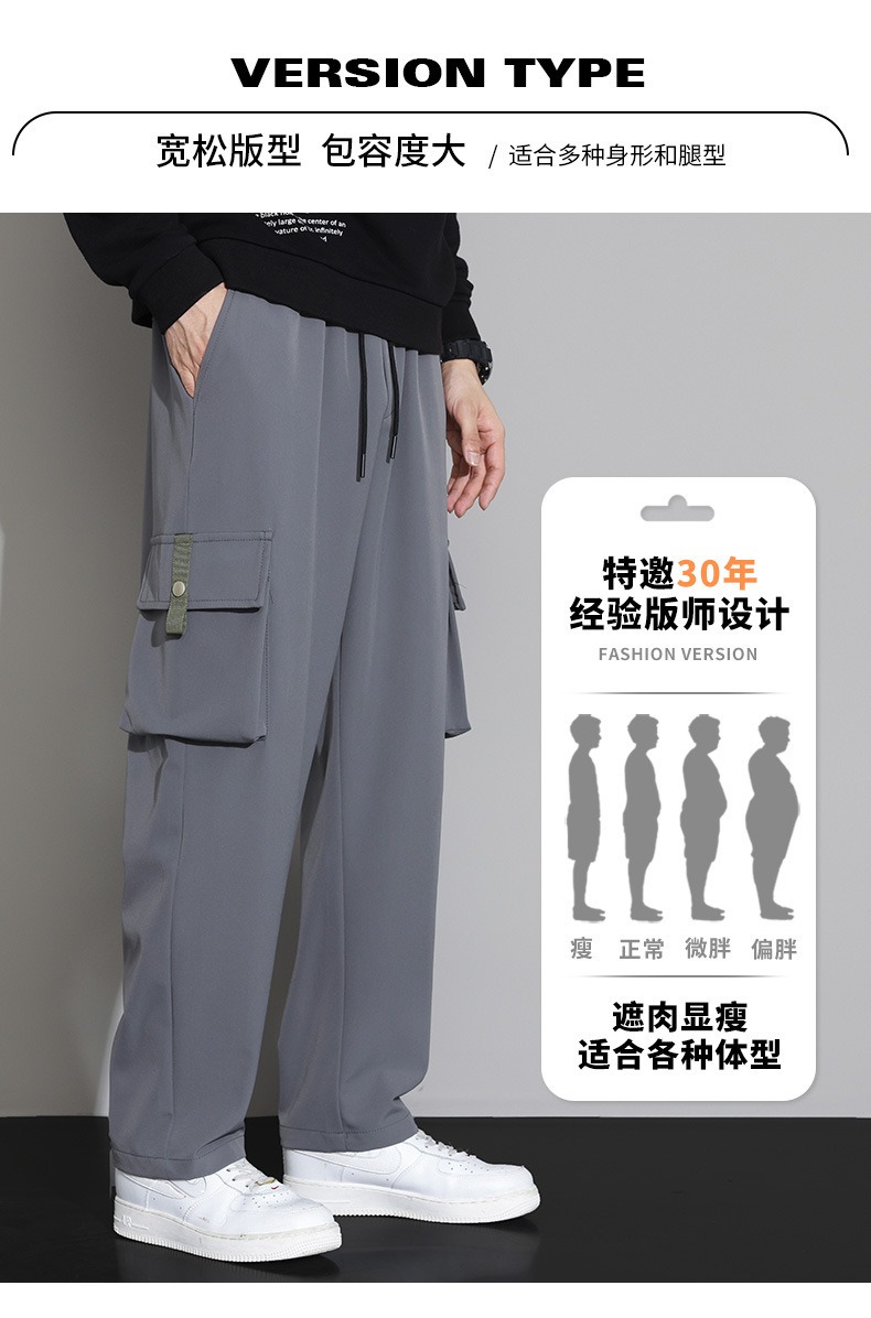 플러스 사이즈 블랙 코일 바지 남성용 봄과 가을 느슨한 스트레이트 튜브 플러스 사이즈 멀티 포켓 가을 캐주얼 긴 바지