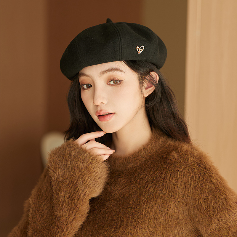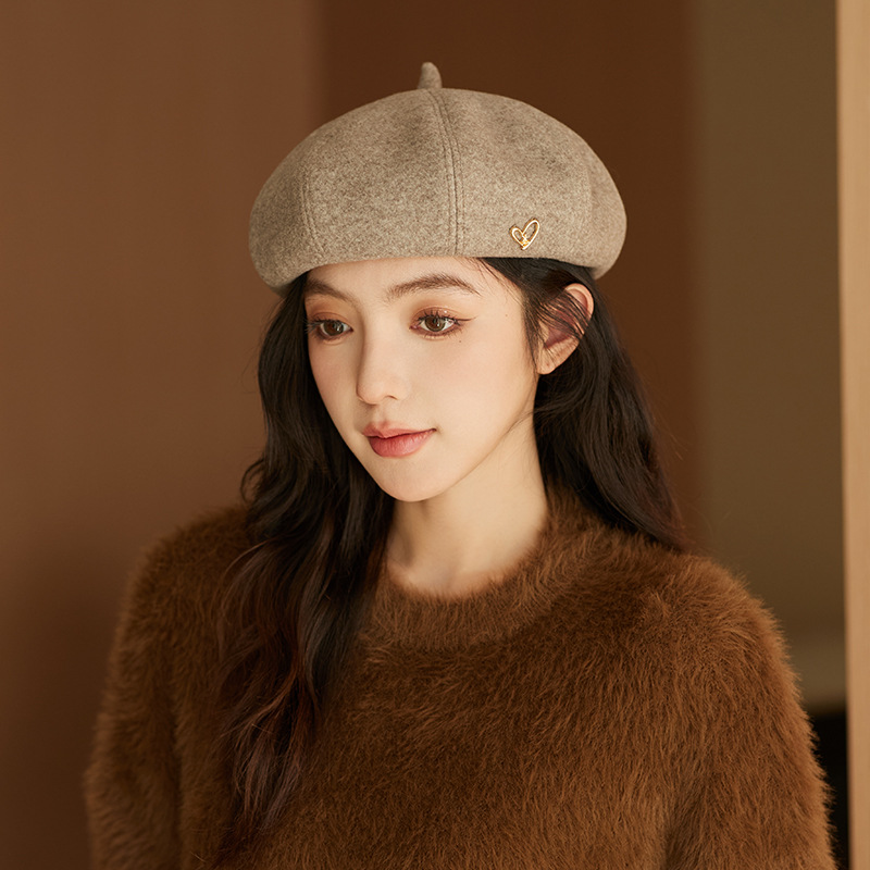 2024 새로운 양모 큰 머리 둘레 베레모 여성의 가을과 겨울 한국 스타일 그물 인기있는 얼굴 작은 따뜻한 화가 모자 조수