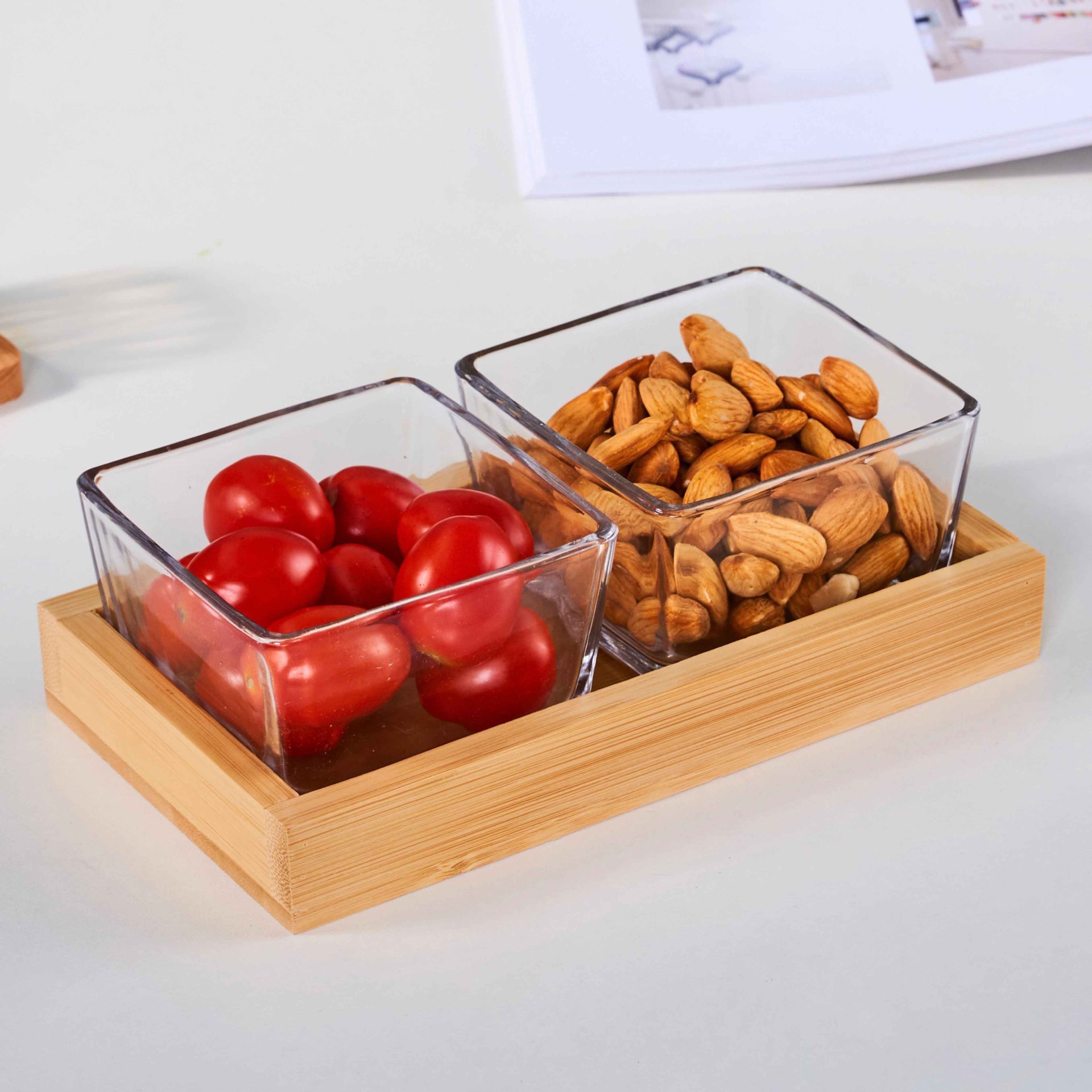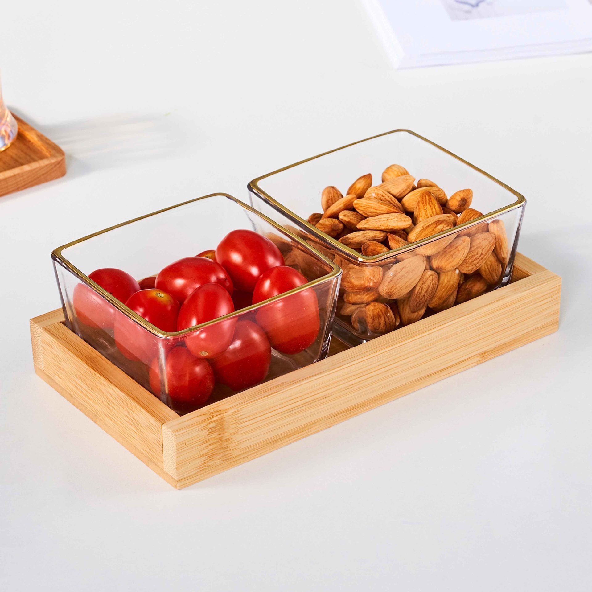 • 2칸 대나무 트레이 + 유리 그릇 [박스형]