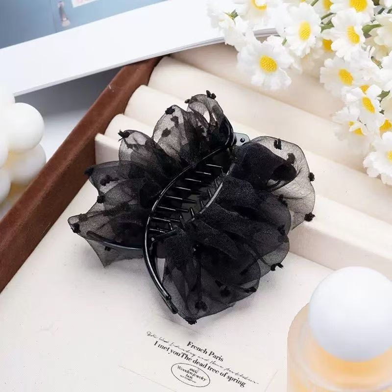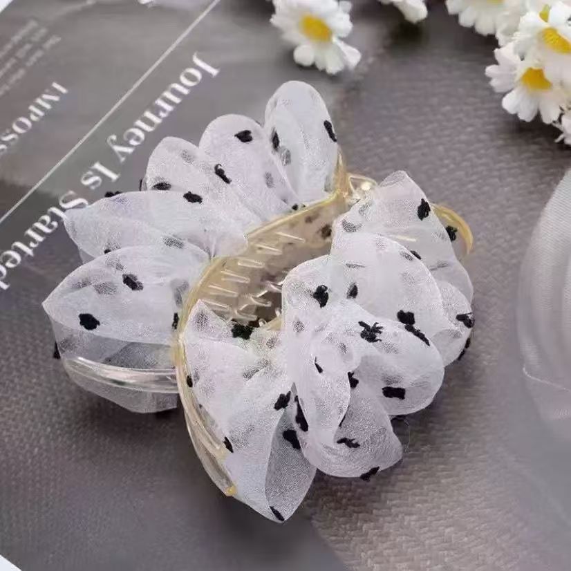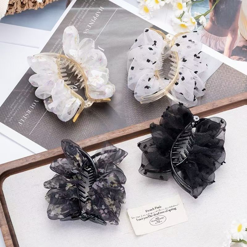프랑스 기질 버블 쉬폰 인쇄 잡아 클립 여성 큰 머리핀 머리 접시 머리 상어 클립 헤어 액세서리 도매