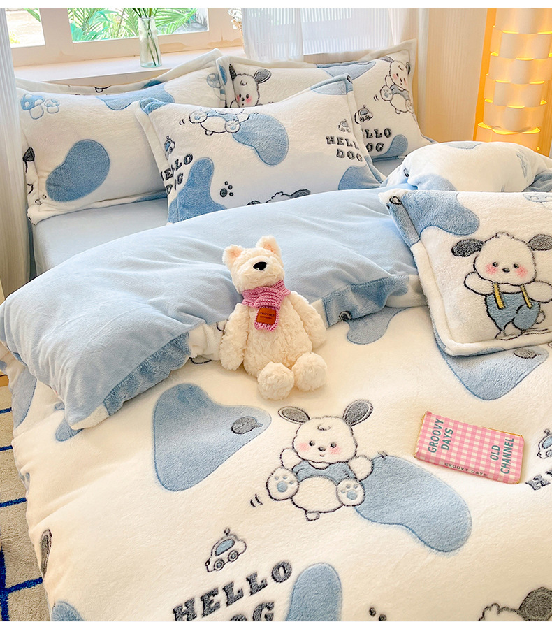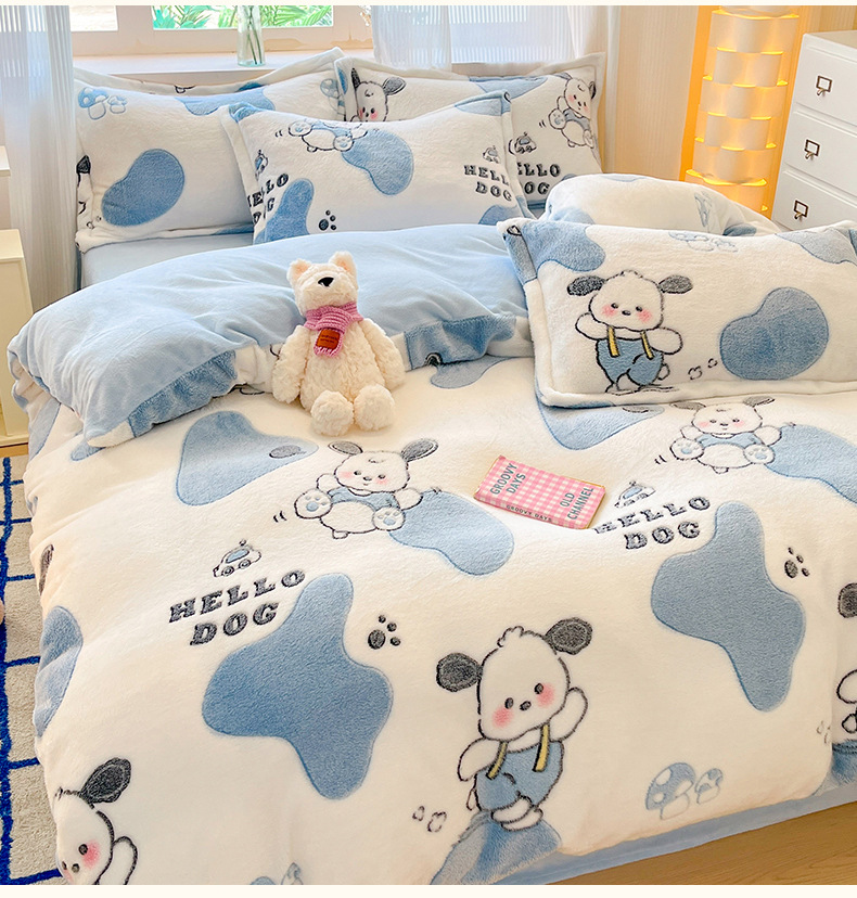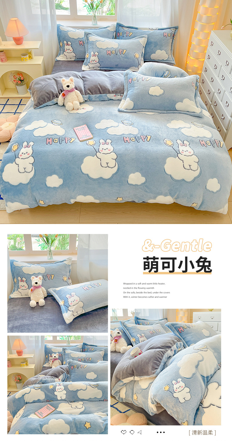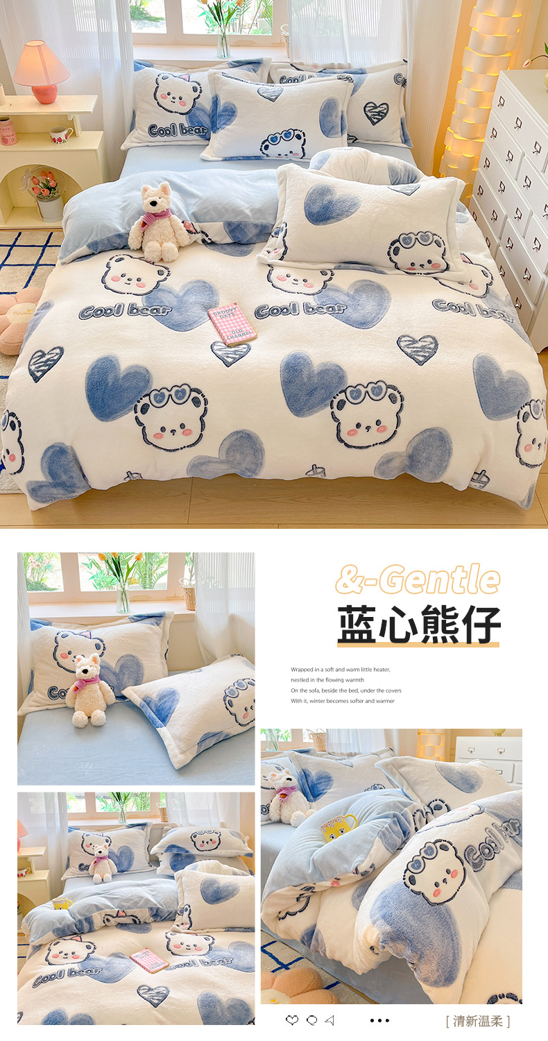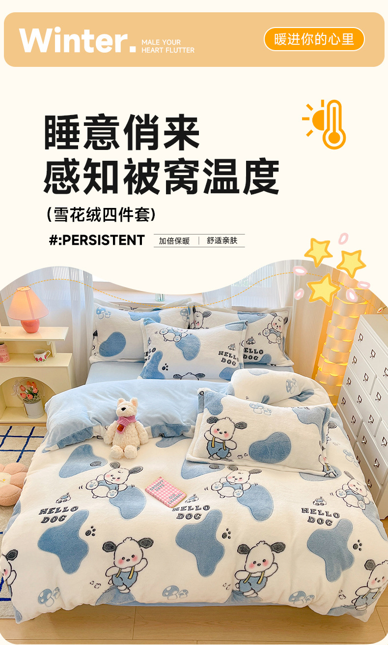 만화 눈송이 우유 벨벳 침구 4 피스 세트 가을, 겨울 어린이 두꺼운 산호 벨벳 이불 커버 침대 시트 3 피스 세트스토어 가기