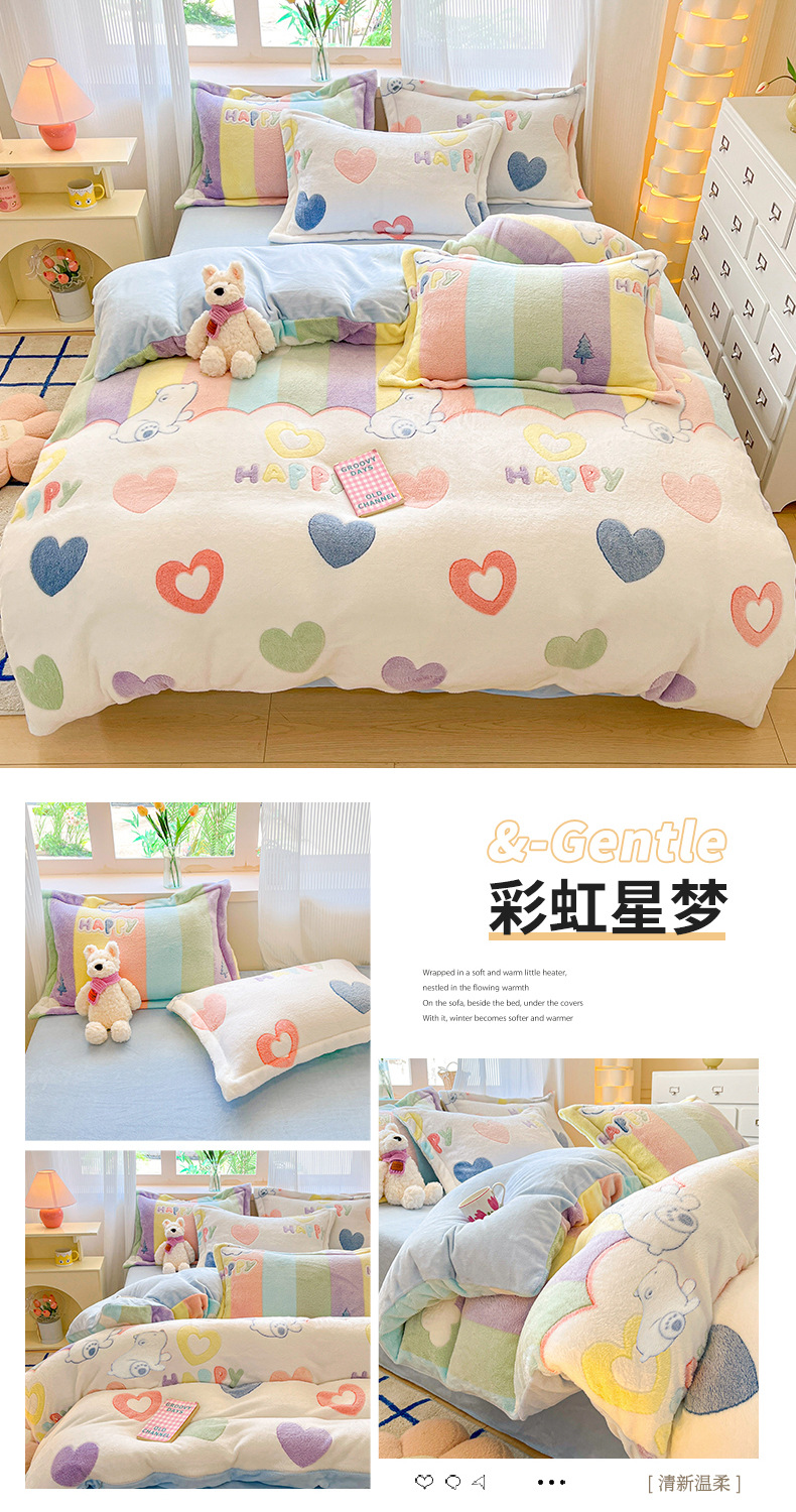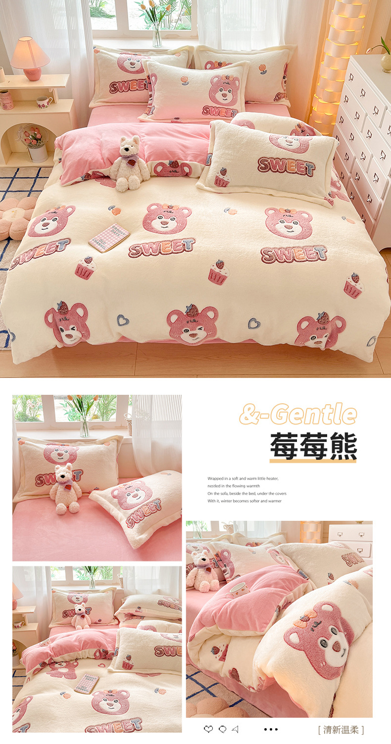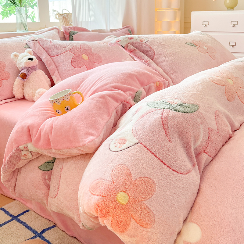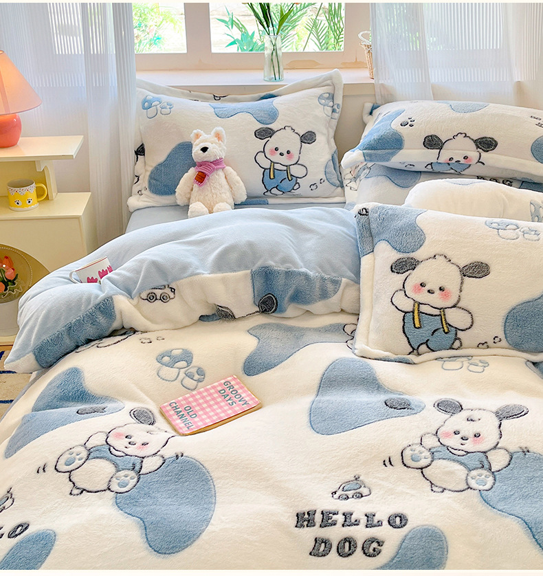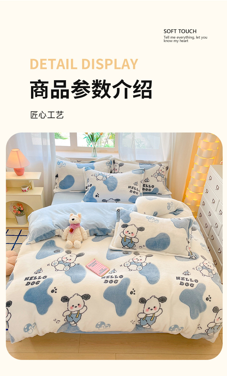 만화 눈송이 우유 벨벳 침구 4 피스 세트 가을, 겨울 어린이 두꺼운 산호 벨벳 이불 커버 침대 시트 3 피스 세트스토어 가기