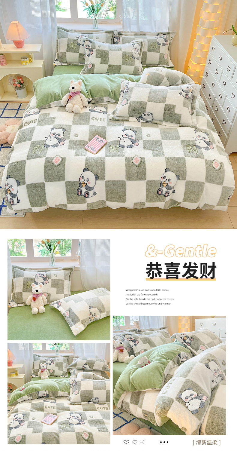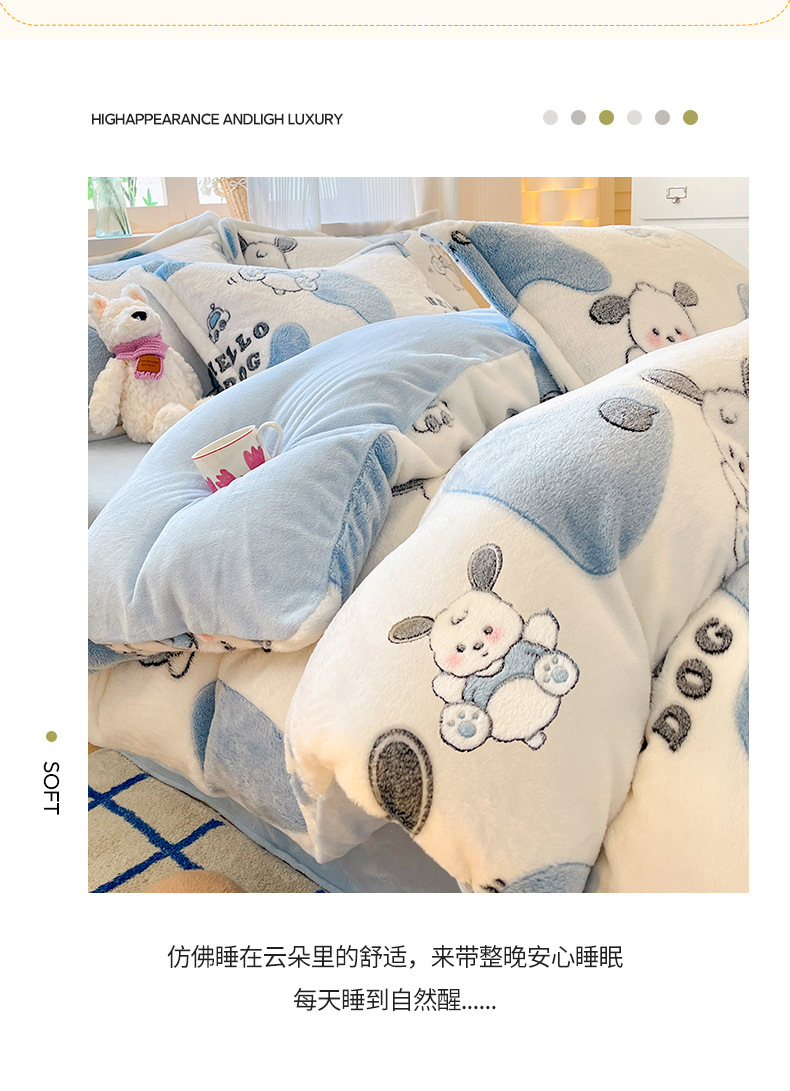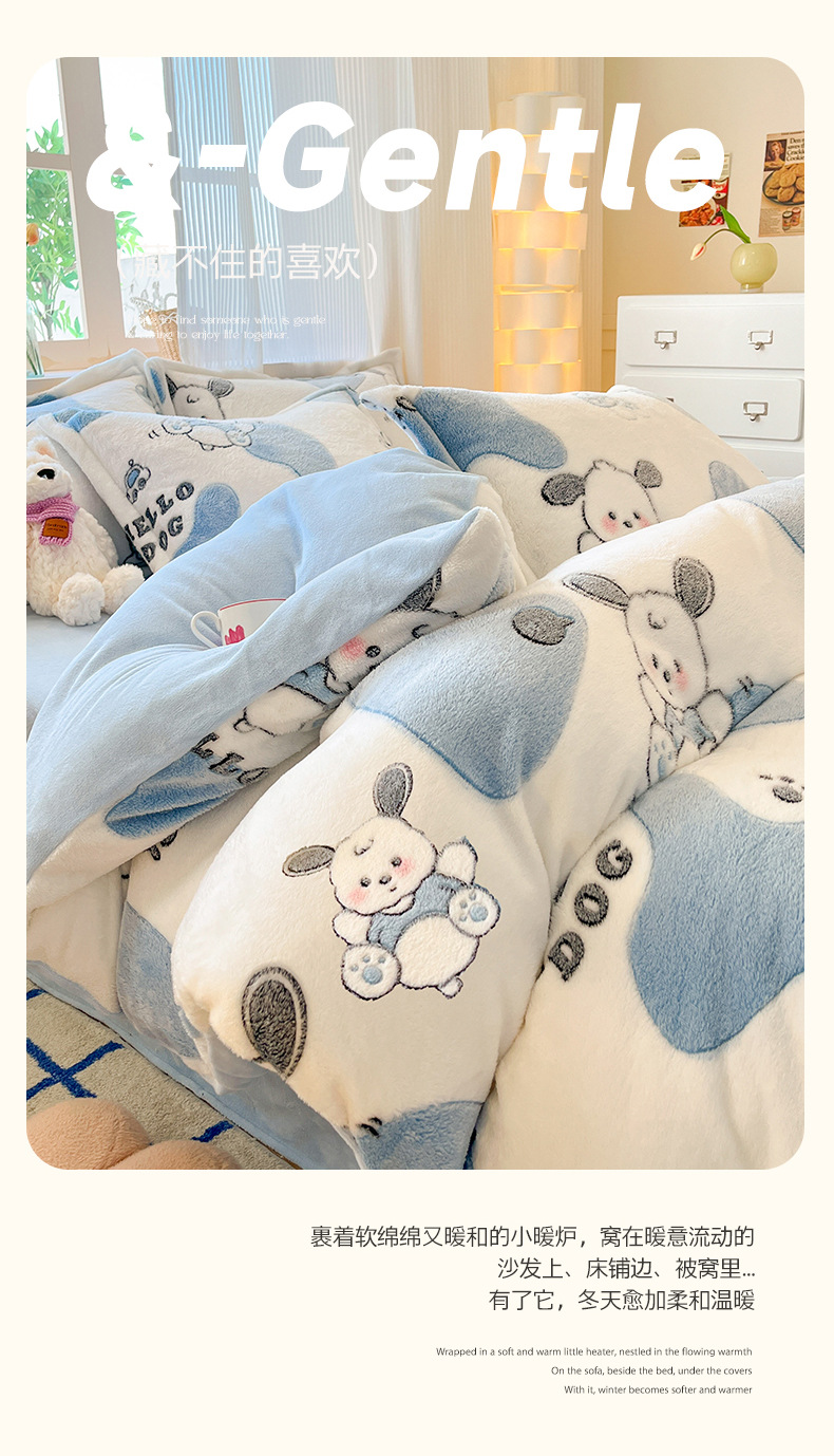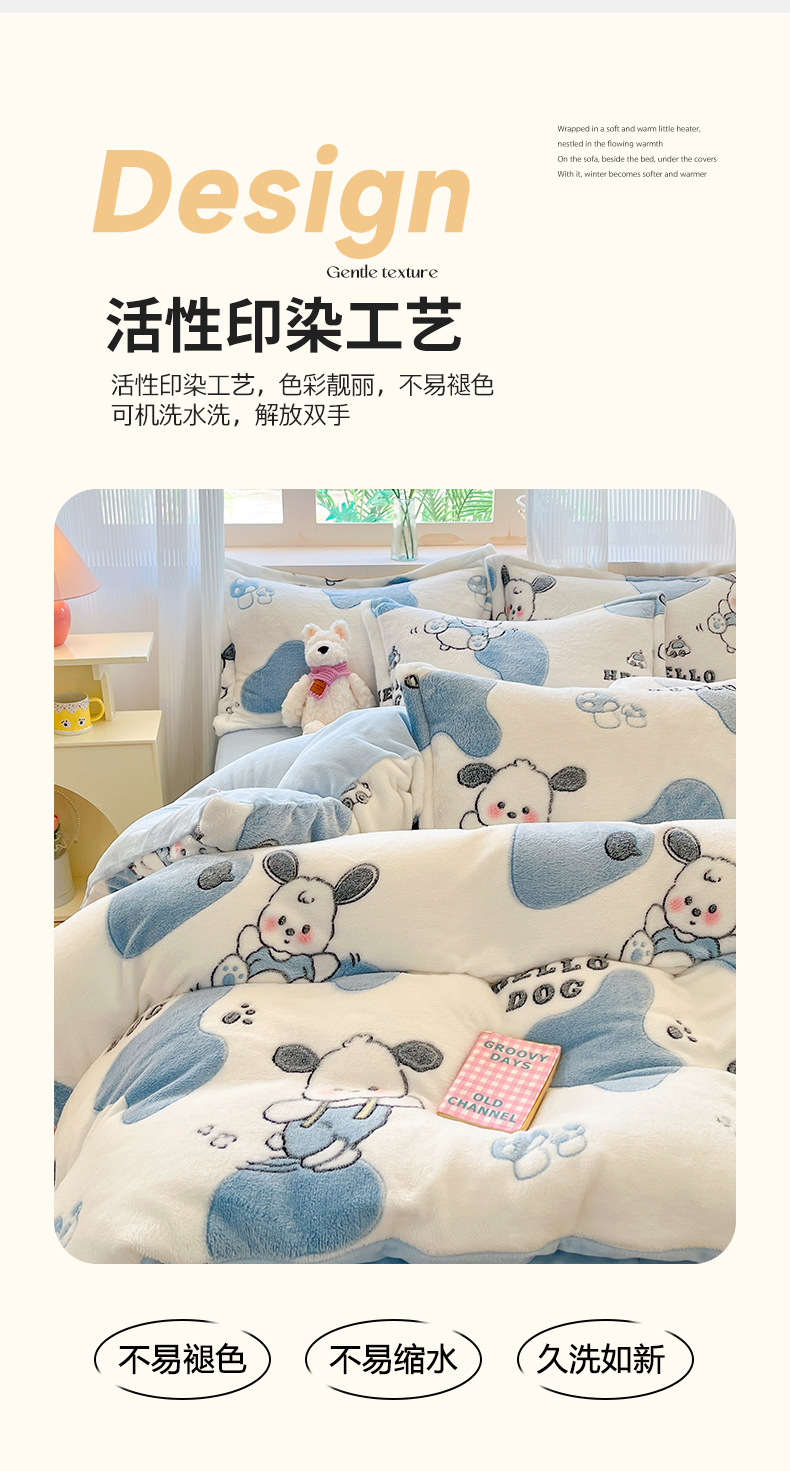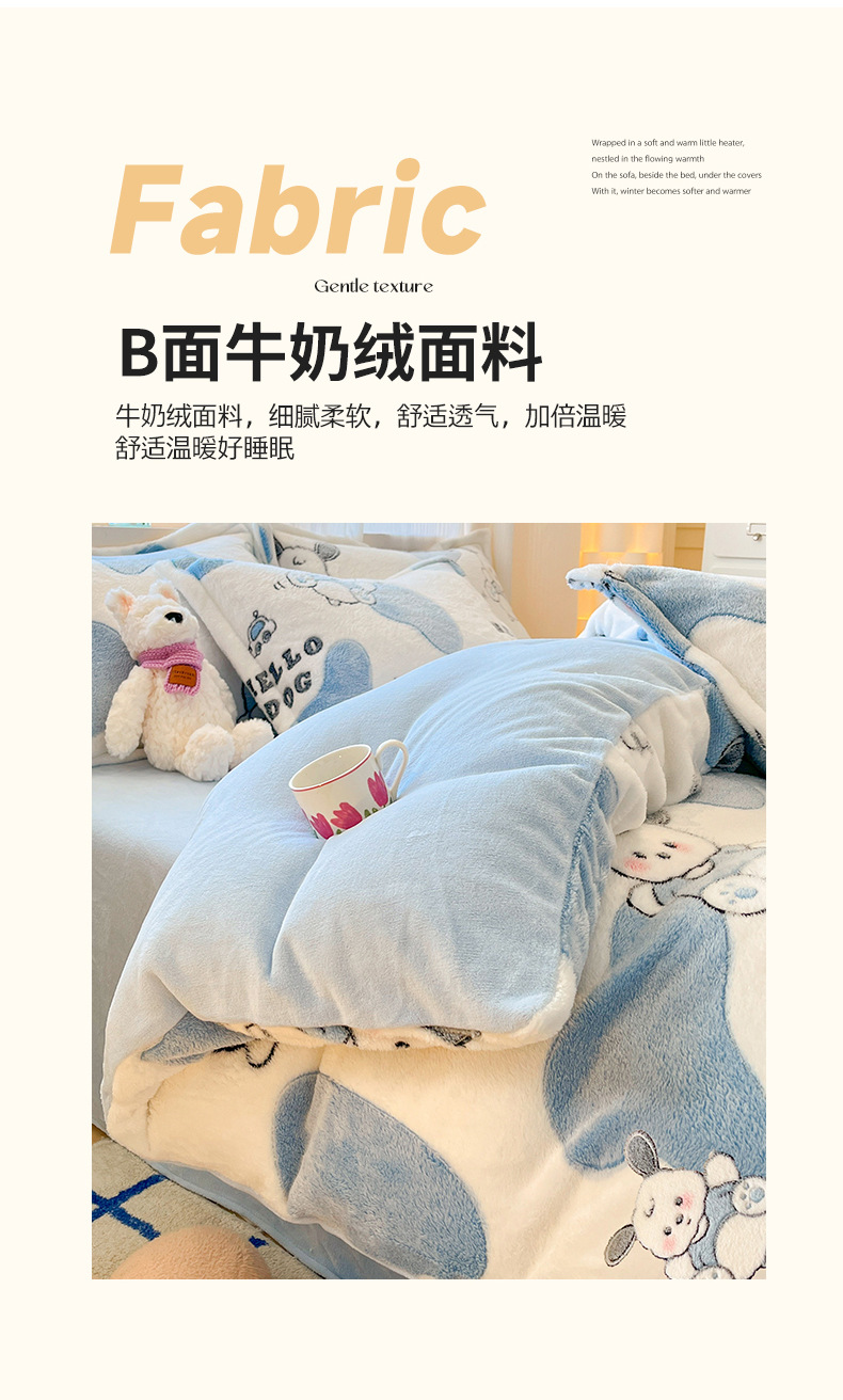 만화 눈송이 우유 벨벳 침구 4 피스 세트 가을, 겨울 어린이 두꺼운 산호 벨벳 이불 커버 침대 시트 3 피스 세트스토어 가기