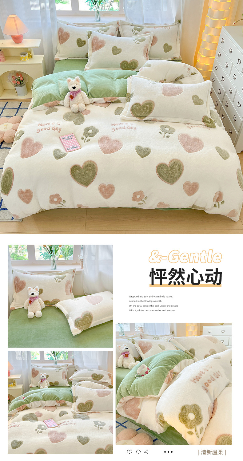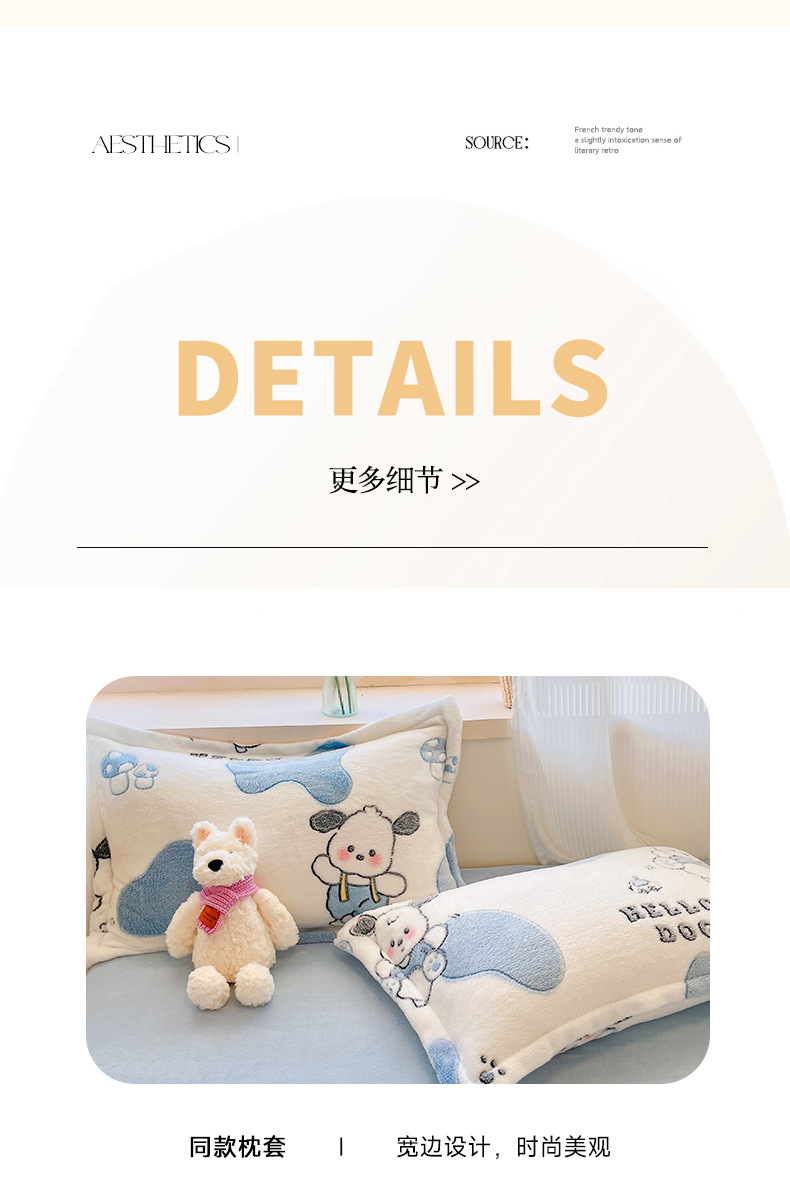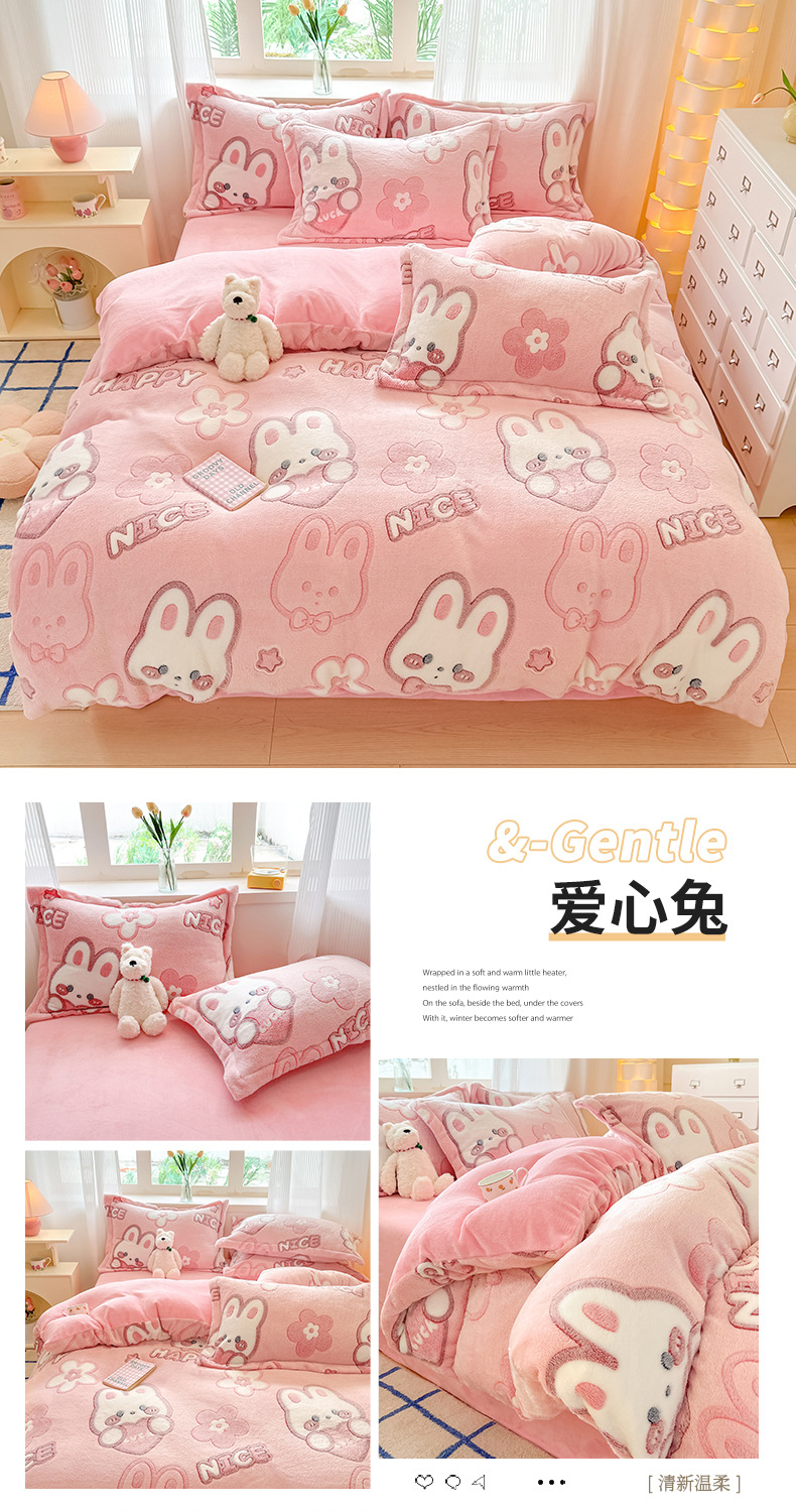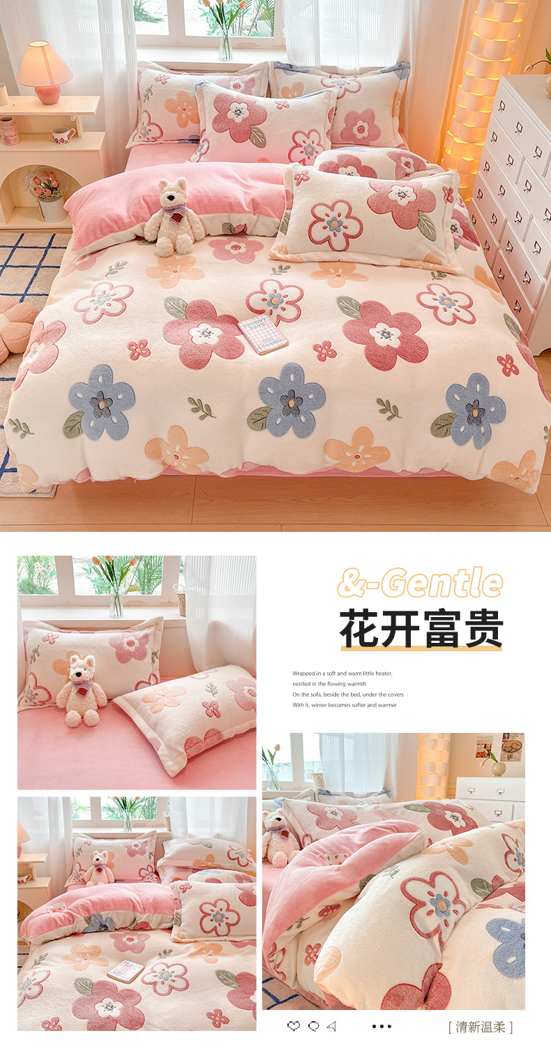 만화 눈송이 우유 벨벳 침구 4 피스 세트 가을, 겨울 어린이 두꺼운 산호 벨벳 이불 커버 침대 시트 3 피스 세트스토어 가기
