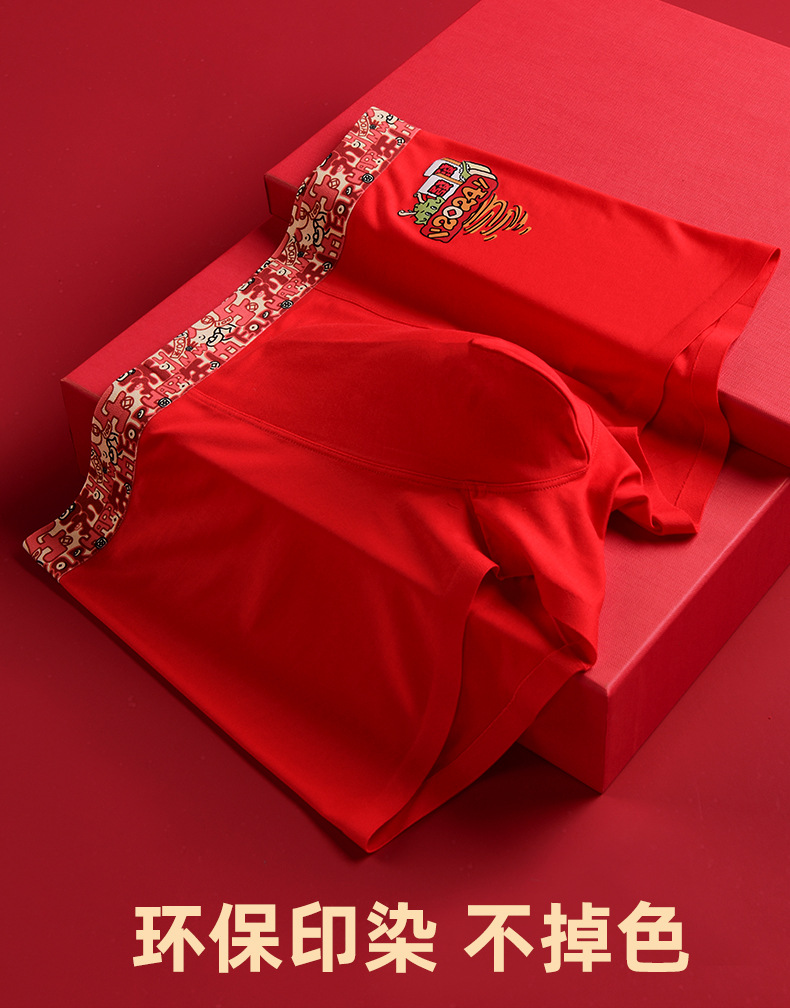 2024 년 드래곤 행운의 빨간 속옷 남자 결혼식 편안한 면 반바지 남자 복서 팬티 중산 도매스토어 가기