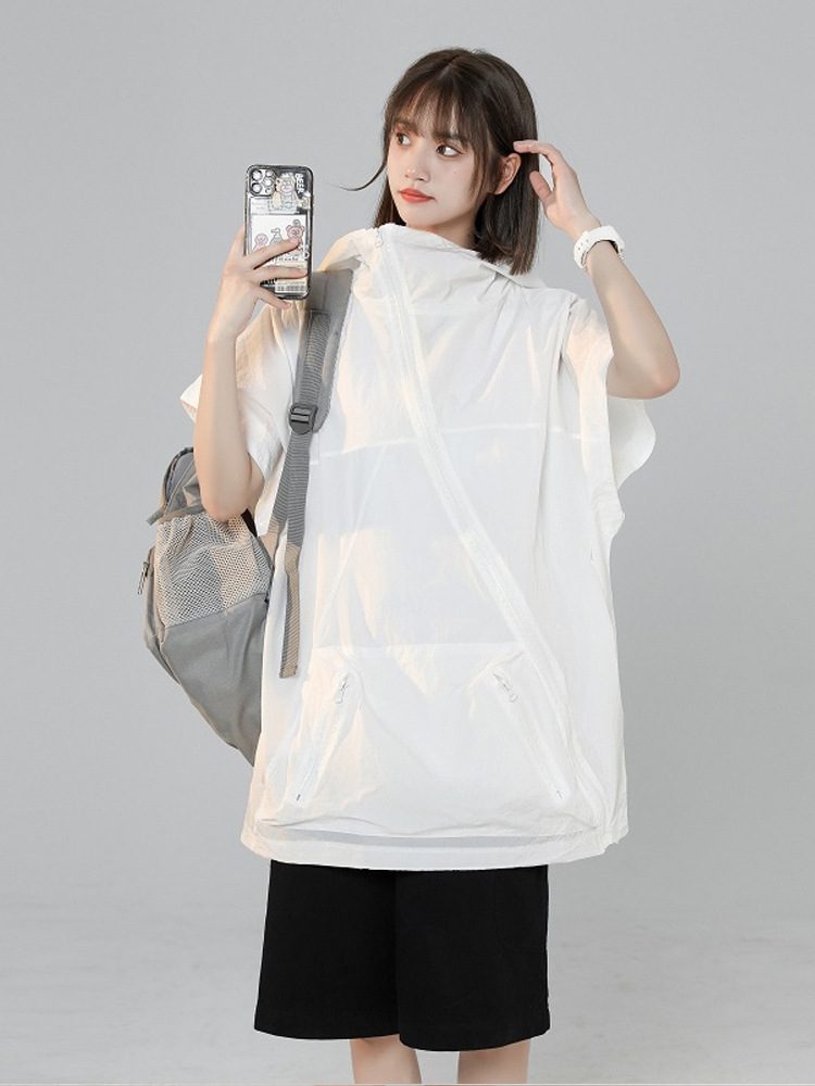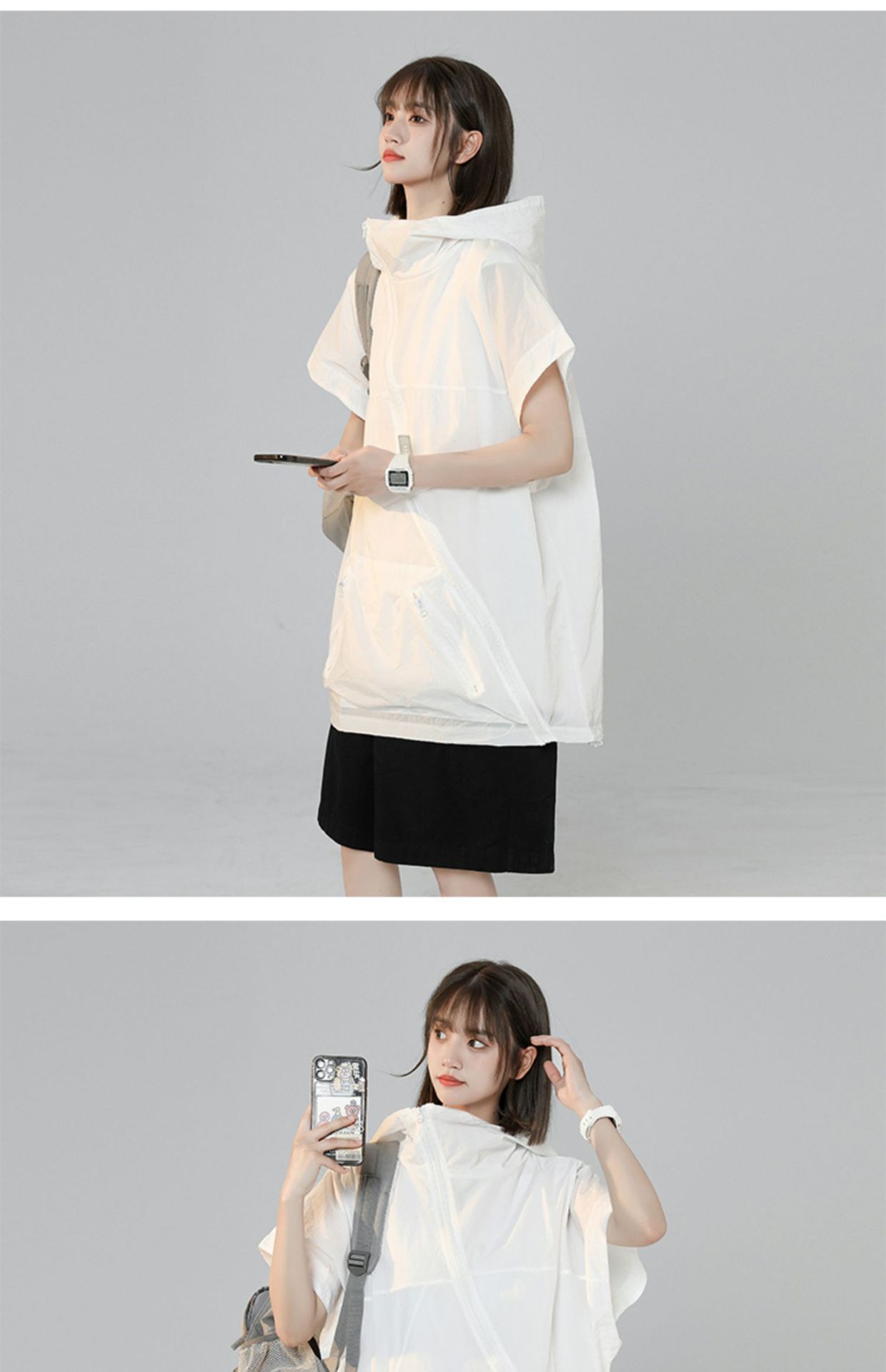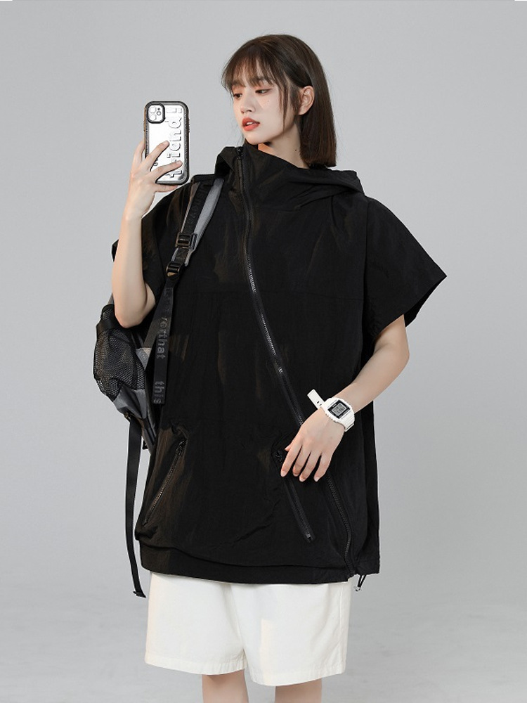 다크 야마모토 요지 블랙 워리어 민소매 재킷 조끼 여성용 멋진 하이 엔드 아이스 실크 후드 조끼