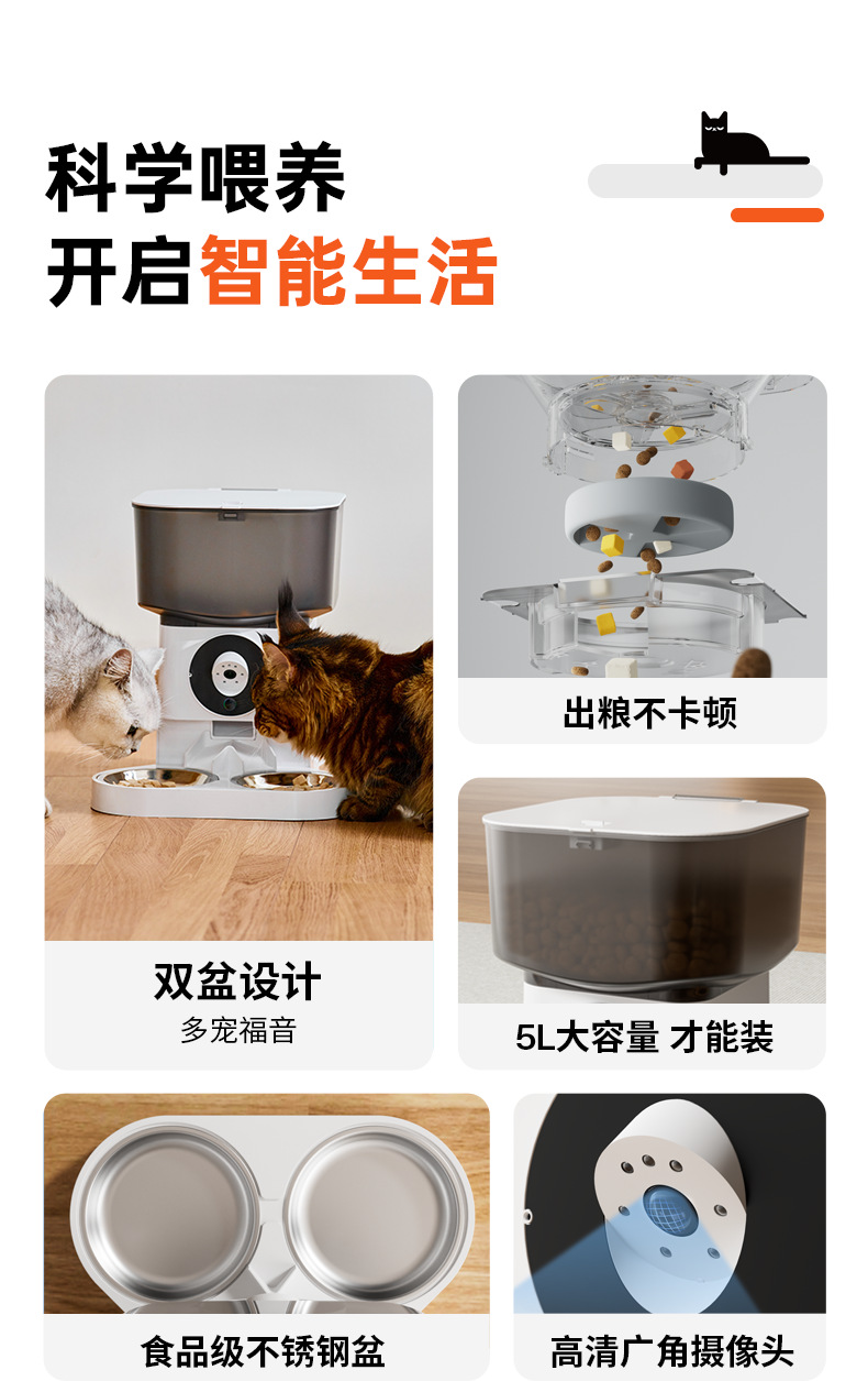 작은 짐승 기술 고양이 자동 피더 타이밍 양적 지능형 피더 애완 동물 먹이 분지 식수 통합