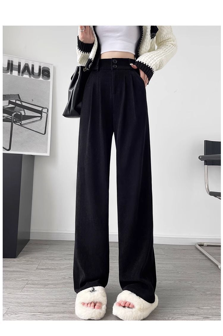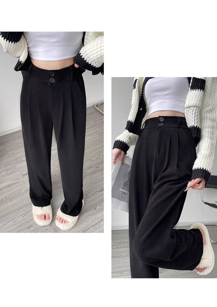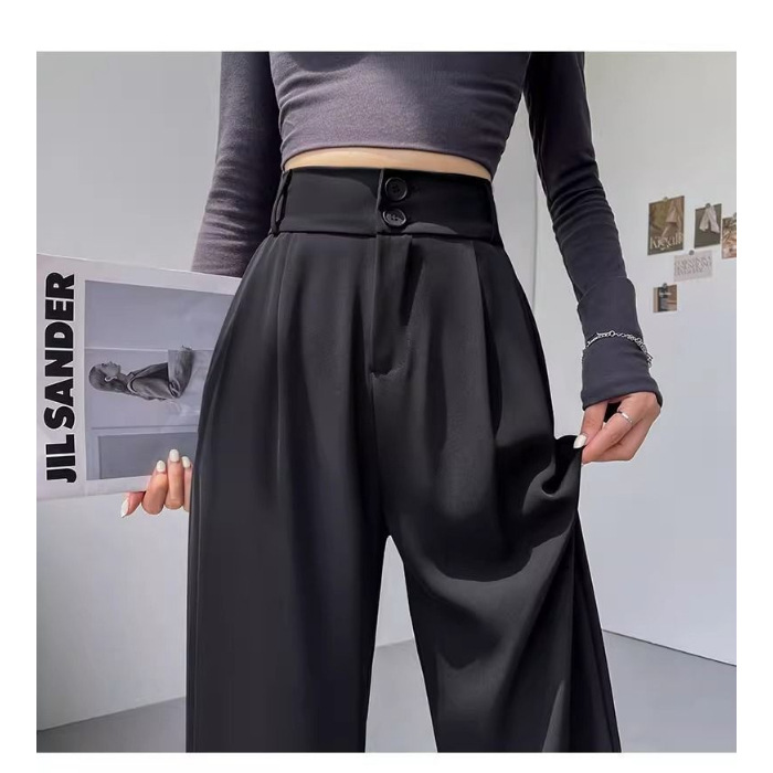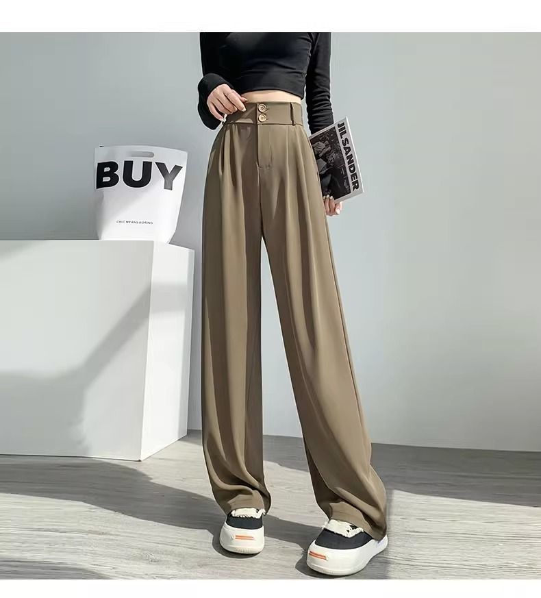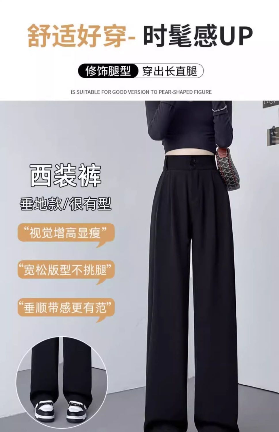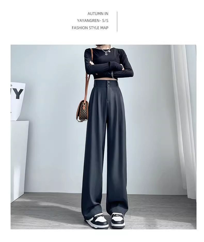 여성의 봄과 가을 2024 새로운 높은 허리 슬리밍 펜던트 스트레이트 캐주얼 느슨한 넓은 다리 바지